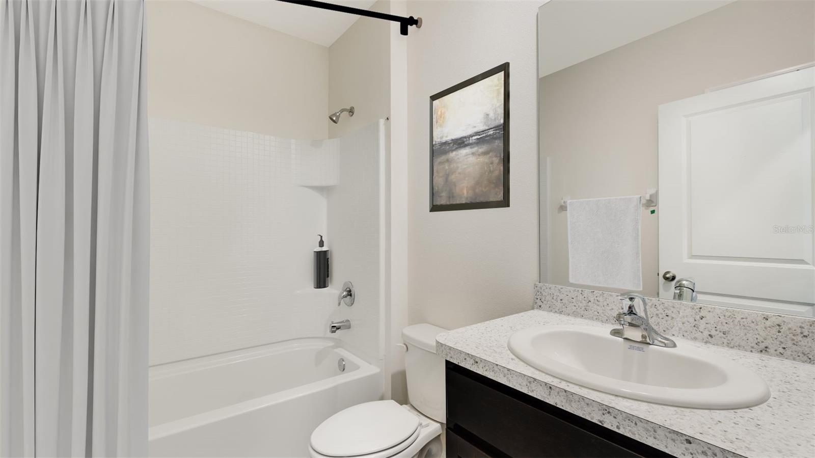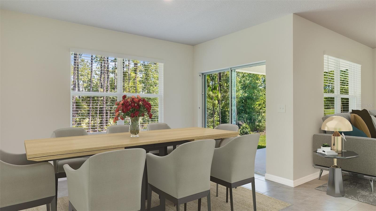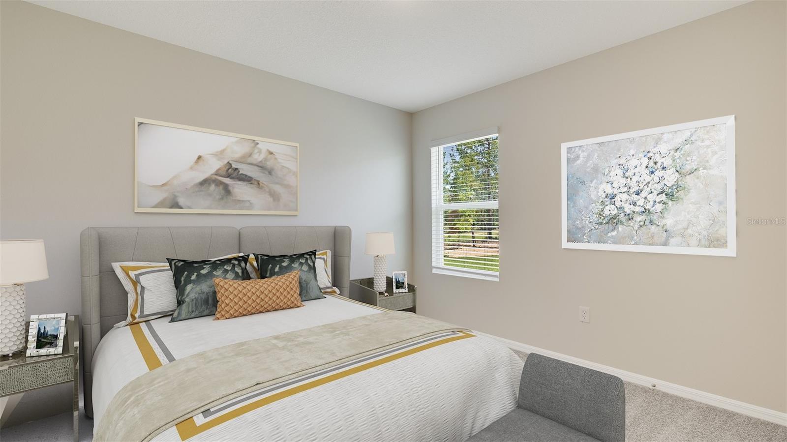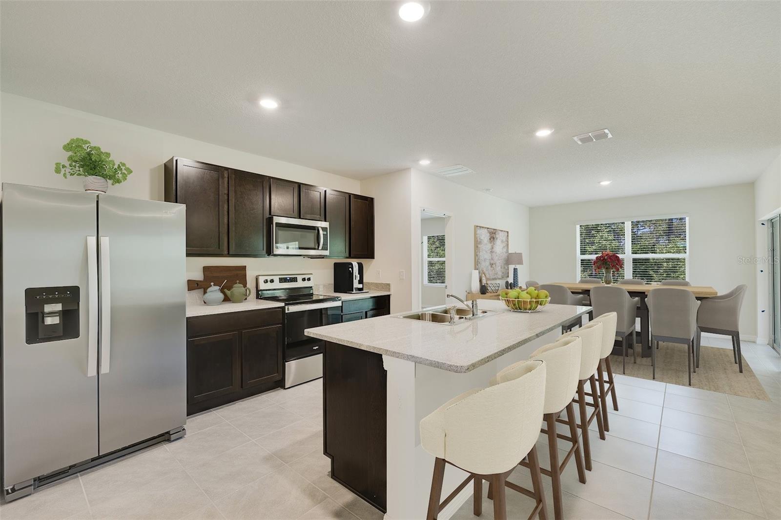 This all-concrete block constructed, one-story layout optimizes living space with an open concept kitchen overlooking the living area, dining room, and the outdoor covered lanai. The well-appointed kitchen comes with all appliances, including refrigerator, built-in dishwasher, electric range, and microwave. The Bedroom 1, located at the back of the home for privacy, includes Bathroom 1. Two additional bedrooms share the second bathroom. The third bedroom is located near the laundry room, which is equipped with included washer and dryer. Pictures, photographs, colors, features, and sizes are for illustration purposes only and will vary from the homes as built. Home and community information including pricing, included features, terms and availability. Future Amenity Center to include Clubhouse, Resort Pool, Splash Pad, Playground, Play Lawn, Dog Park and Cable.