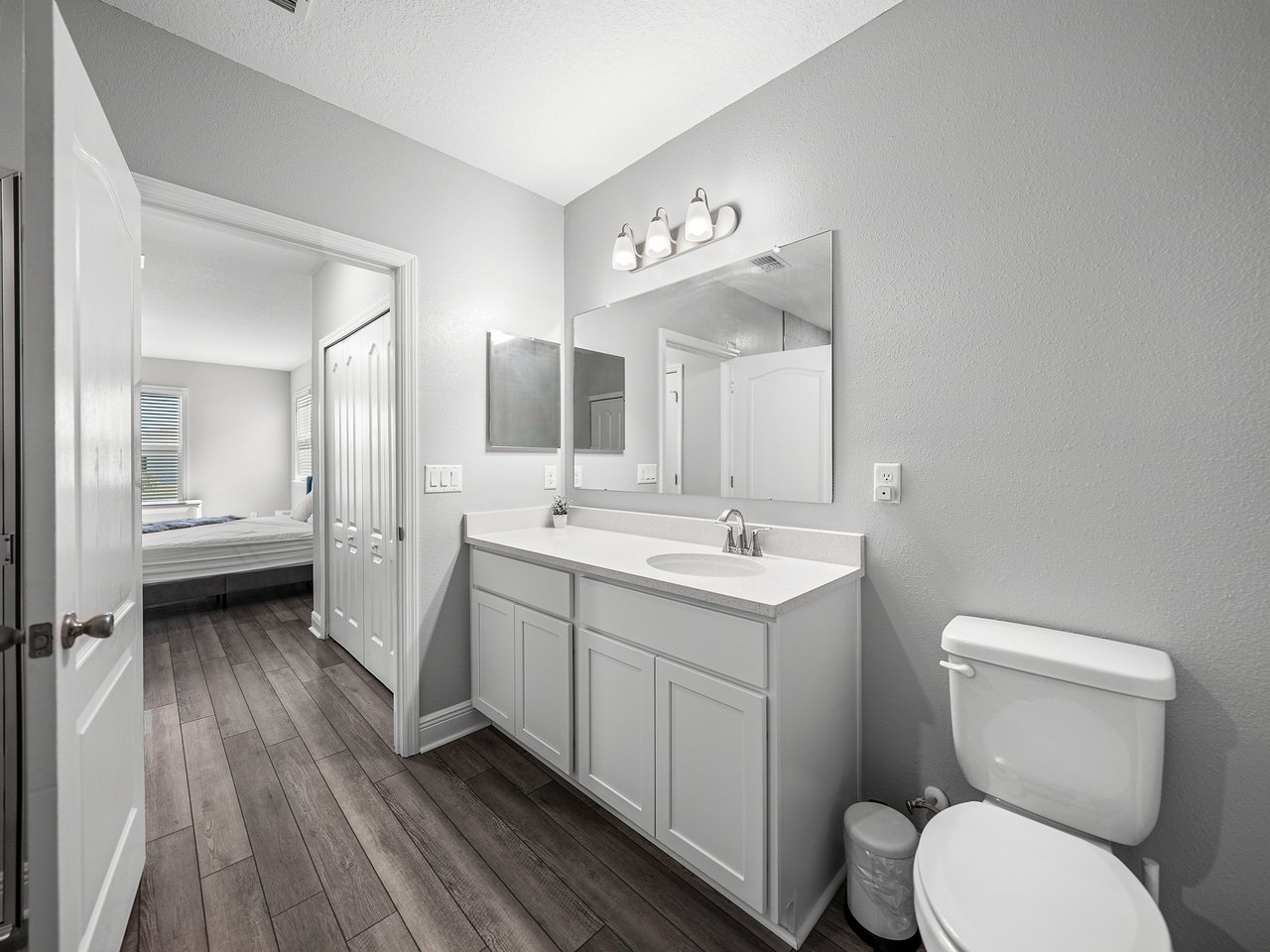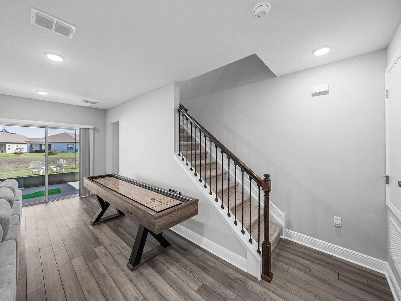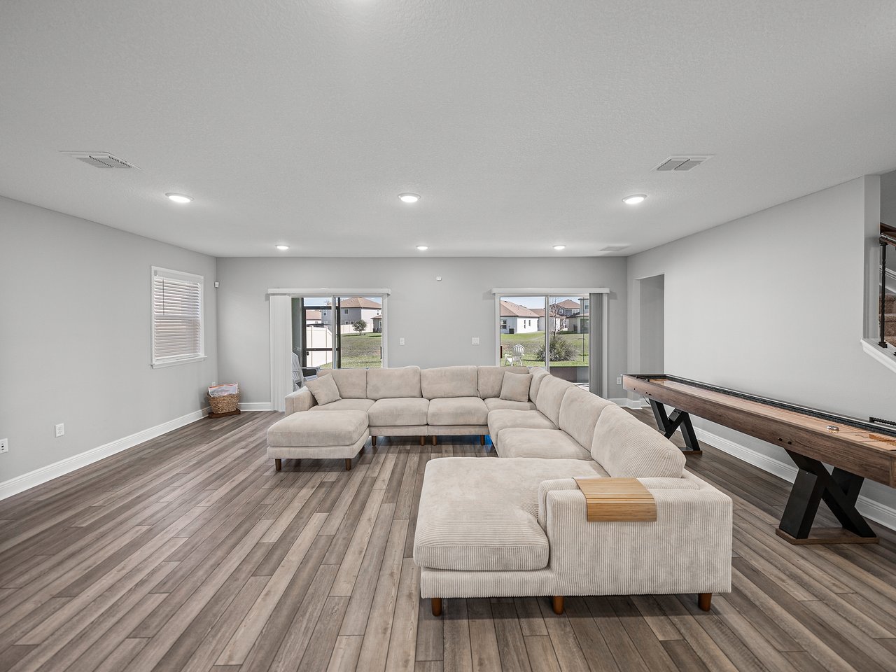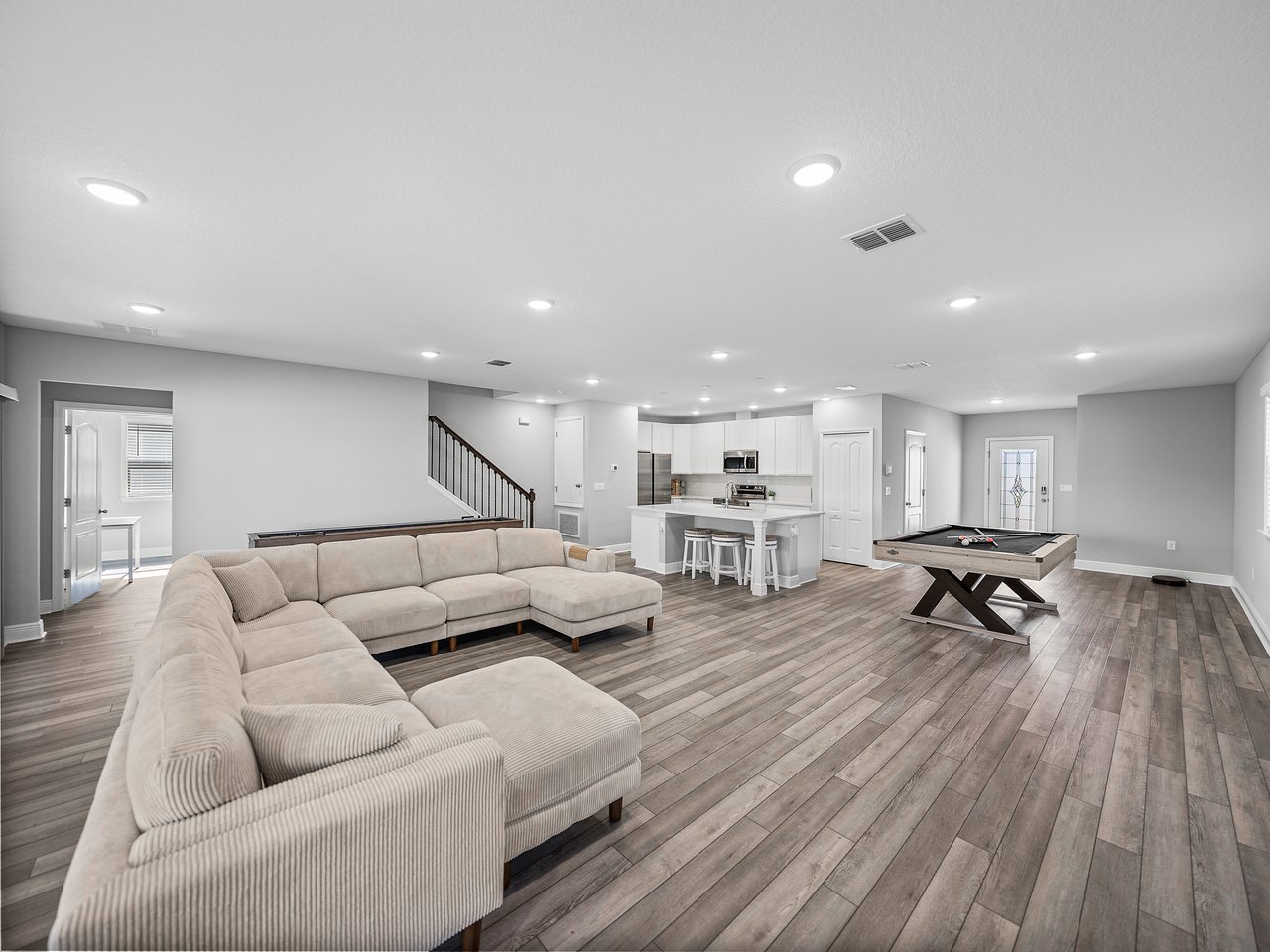 Your ticket to live in the area’s most desirable Lagoon community - Mirada - awaits within this expansive 2 story, 5 bedroom (2 en-suites!), 3.5 bath, 2 car garage home. Arrive to a stunning exterior with sidewalk-lined streets, stone accents, lush mature landscaping, and a covered front porch, perfect for a morning cup of coffee! Step inside this meticulously designed entertainer’s floor plan, where open spaces and natural light set the tone for effortless living. The main living areas are thoughtfully laid out, offering an airy, light-filled atmosphere that flows seamlessly from room to room with easy-to-maintain plank tile flooring. A chef-inspired kitchen is the heart of the home, with a large central island featuring breakfast bar seating, a beautifully decorative backsplash, sleek stainless steel appliances, and quartz countertops. Ample storage ensures everything has its place, making this kitchen as functional as it is stylish! For the ultimate in indoor-outdoor living, the living room opens effortlessly to the spacious screened porch via sliding glass doors, creating an ideal space for entertaining or simply enjoying the tranquil surroundings. The first floor also features a convenient half bathroom for guests, and a great-sized bedroom with a full ensuite bathroom, making it the ultimate private place for in-laws and other overnight guests. Upstairs, the massive 23x14 loft offers endless possibilities for a playroom, game room, media center, home office, and more! Accessed by double doors, an expansive owner’s retreat awaits offering plush carpeting, high ceilings, a large walk-in closet, and an ensuite bathroom with dual sinks and vanity seating, a walk-in shower, and a water closet. Three more generously sized bedrooms, a full guest bathroom with dual sinks and a tub/shower combo, and a 2nd floor laundry room complete the interior of this palatial 3,269 sq ft residence. Enjoy the peaceful outdoors, walk hand in hand down the sidewalk, or head down to the Mirada Lagoon where everyday feels like a vacation! This community features a 15-acre man-made lagoon with sandy beaches, kayaking, swimming, paddle boarding, a swim-up bar, and more. All just minutes from I-75 and a short drive to downtown San Antonio and Dade City. ULTRAFI internet and cable are included in the HOA fee. Call us today for your private showing and more information about this fantastic community!