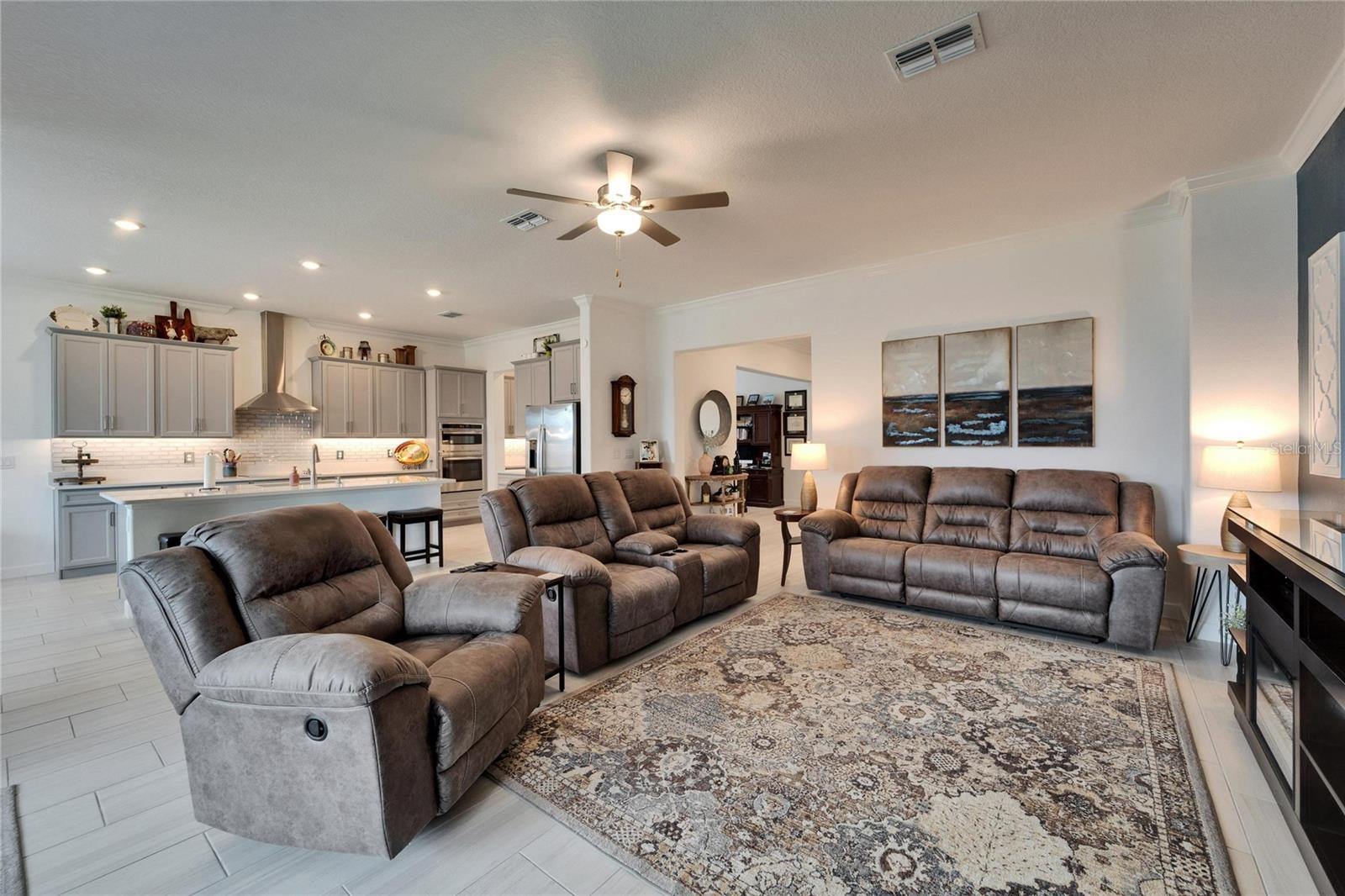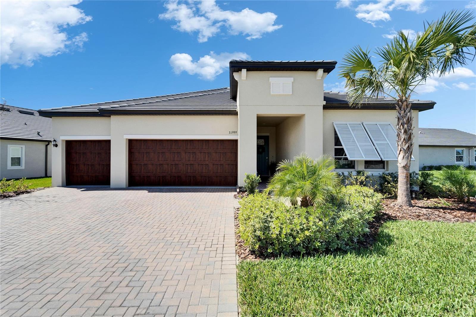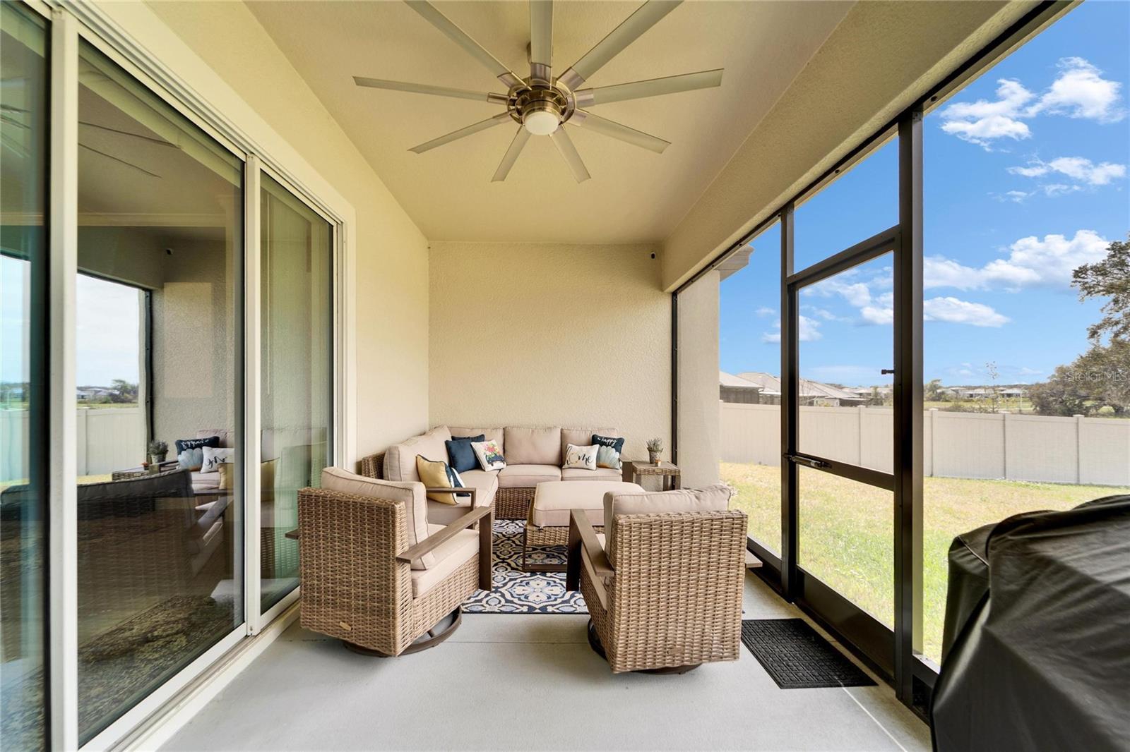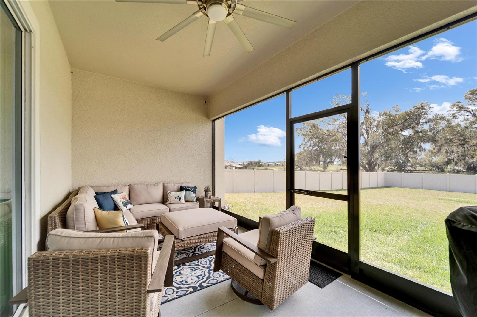 This exceptional home is nestled on an oversized lot on a Cul-de-Sac street! This beautifully designed 3-bedroom, 4-bathroom home offers the perfect blend of luxury, space, and privacy! In addition you have a flex space and upstairs storage space! The upstairs space can be finished into a huge loft with many potential functions! Each of the bedrooms have an ensuite bath, ensuring ultimate comfort and convenience for family and guests! The home boasts quartz countertops throughout, crown molding, luxury tile and 52" ceiling fans in every room, adding both elegance and functionality. The chef's kitchen features an additional butlers pantry, stylish tile backsplash, ample cabinet space, and a modern, open layout perfect for entertaining. Step outside to enjoy the oversized screened lanai, high-elevation lot that backs up to a conservation area providing tons of space and a tranquil, scenic backdrop. The fully fenced yard with double gates, paver driveway, and three-car garage add to the home's appeal, while the screened-in lanai offers the perfect space to unwind and take in the natural surroundings.