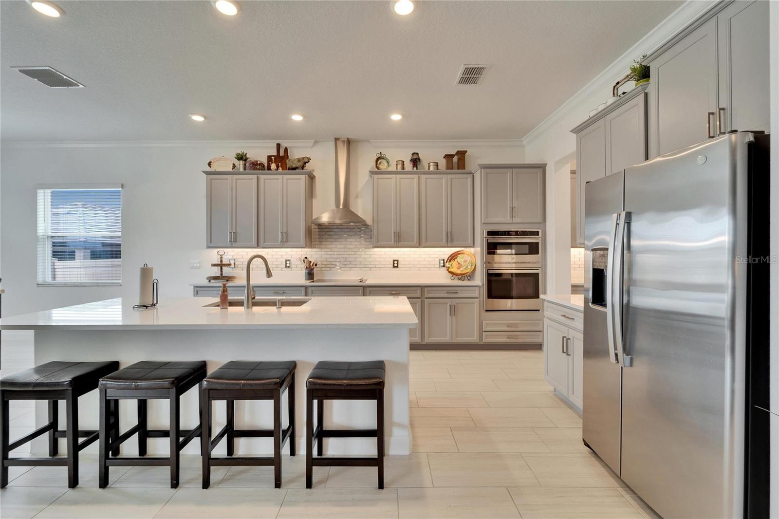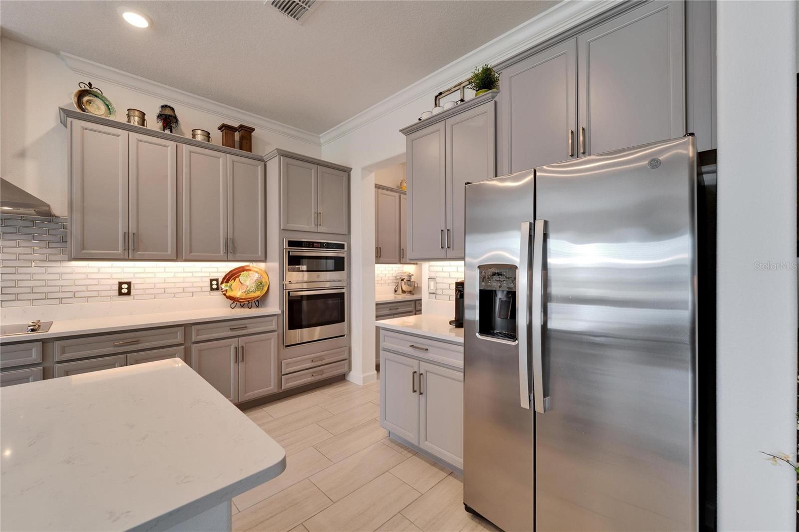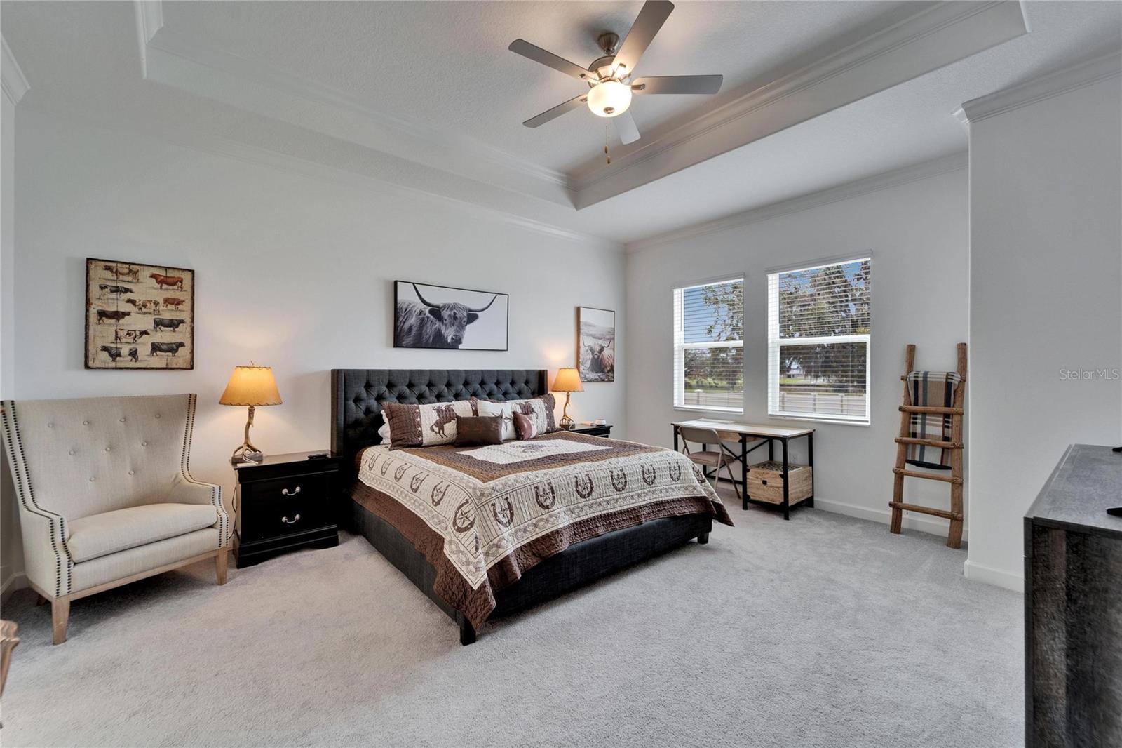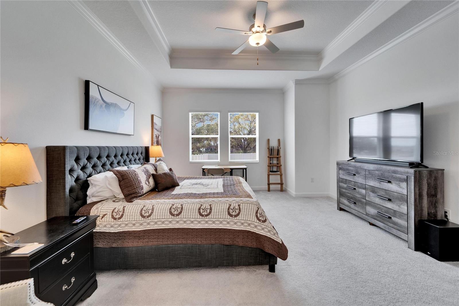 This exceptional home is nestled on an oversized lot on a Cul-de-Sac street! This beautifully designed 3-bedroom, 4-bathroom home offers the perfect blend of luxury, space, and privacy! In addition you have a flex space and upstairs storage space! The upstairs space can be finished into a huge loft with many potential functions! Each of the bedrooms have an ensuite bath, ensuring ultimate comfort and convenience for family and guests! The home boasts quartz countertops throughout, crown molding, luxury tile and 52" ceiling fans in every room, adding both elegance and functionality. The chef's kitchen features an additional butlers pantry, stylish tile backsplash, ample cabinet space, and a modern, open layout perfect for entertaining. Step outside to enjoy the oversized screened lanai, high-elevation lot that backs up to a conservation area providing tons of space and a tranquil, scenic backdrop. The fully fenced yard with double gates, paver driveway, and three-car garage add to the home's appeal, while the screened-in lanai offers the perfect space to unwind and take in the natural surroundings.