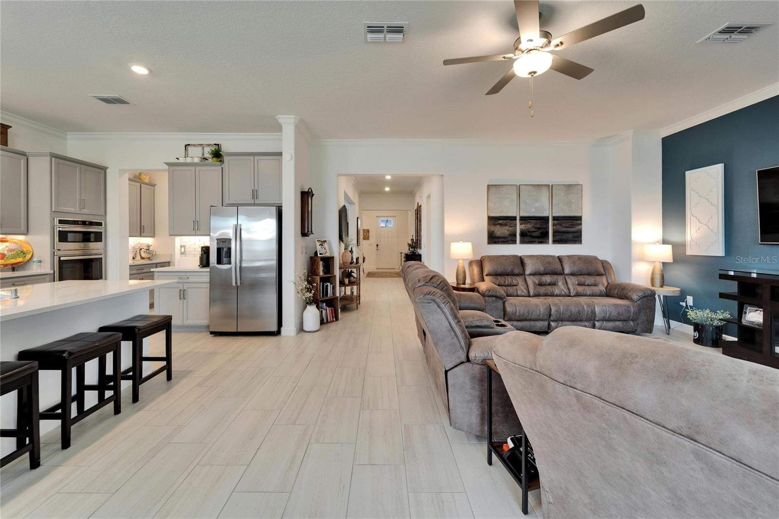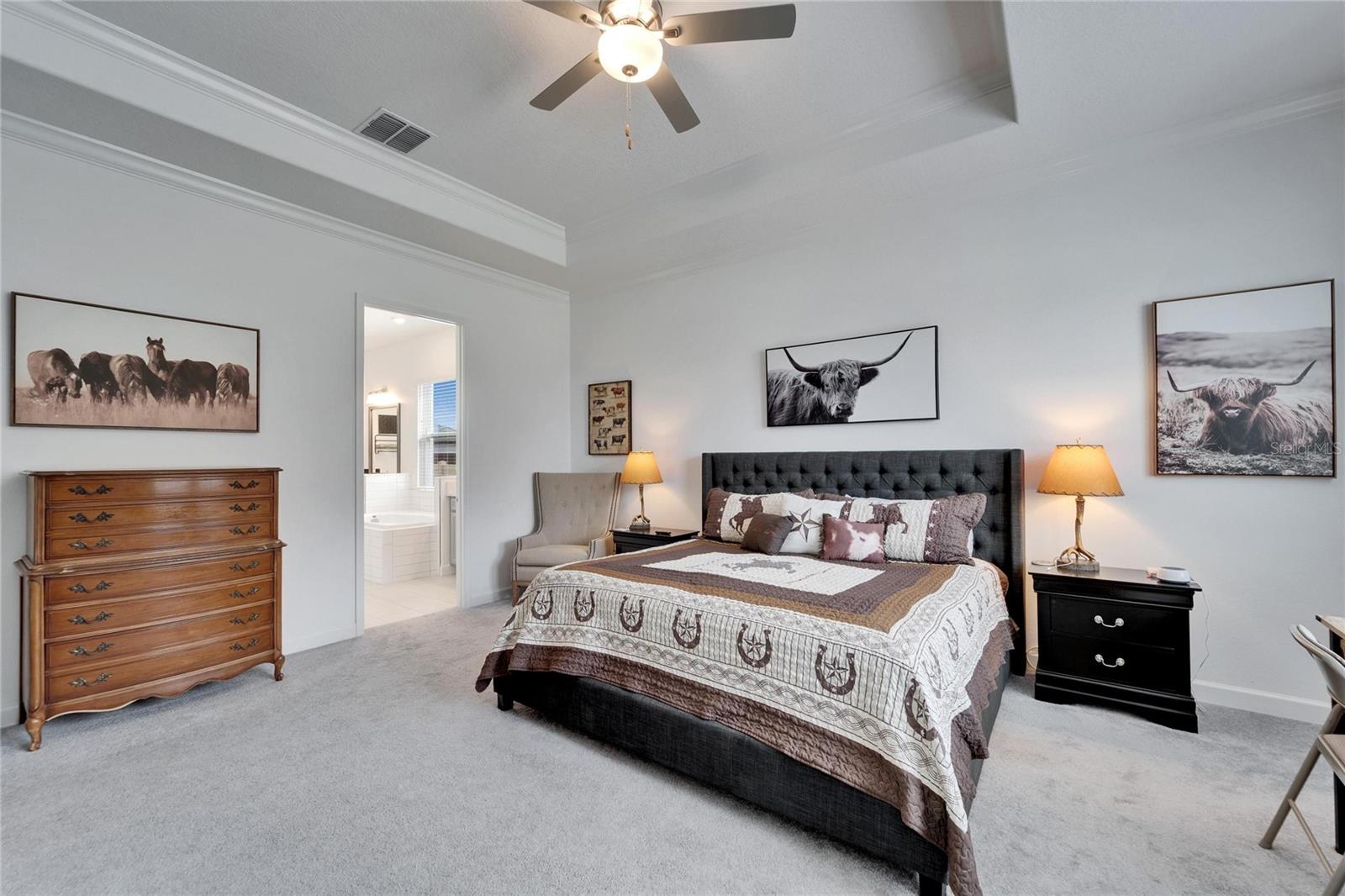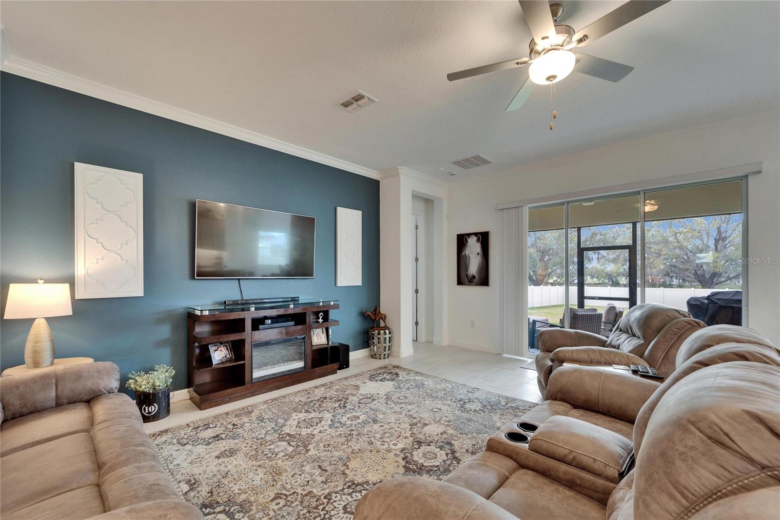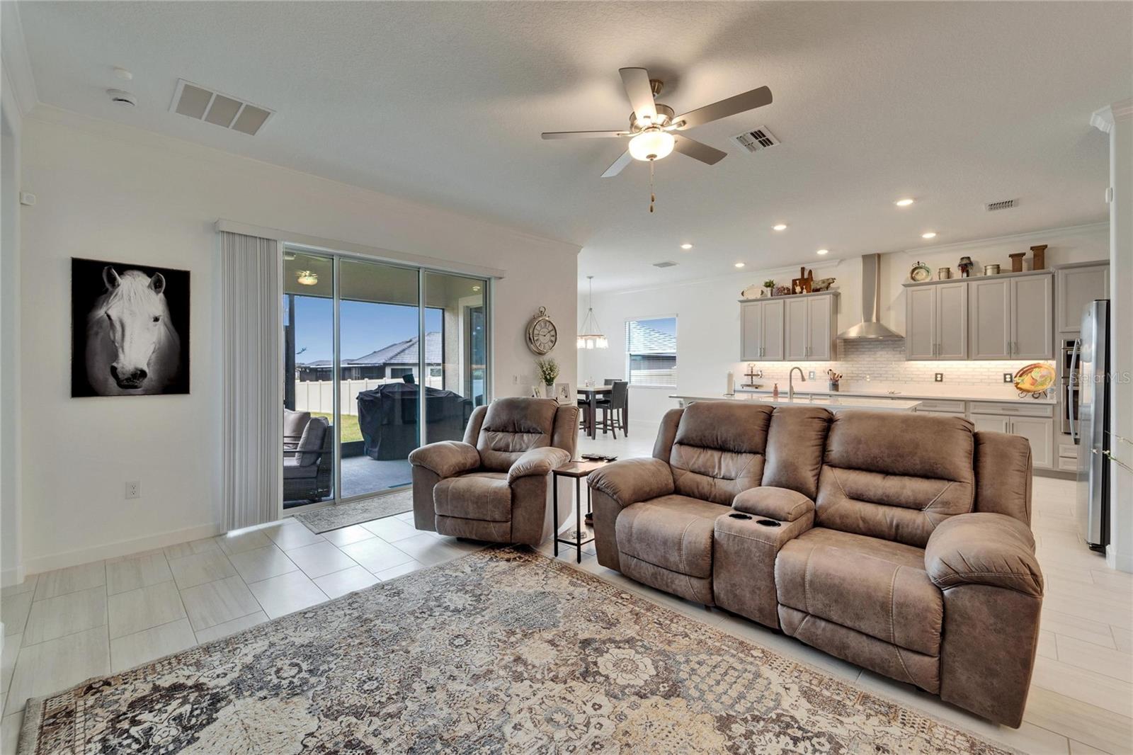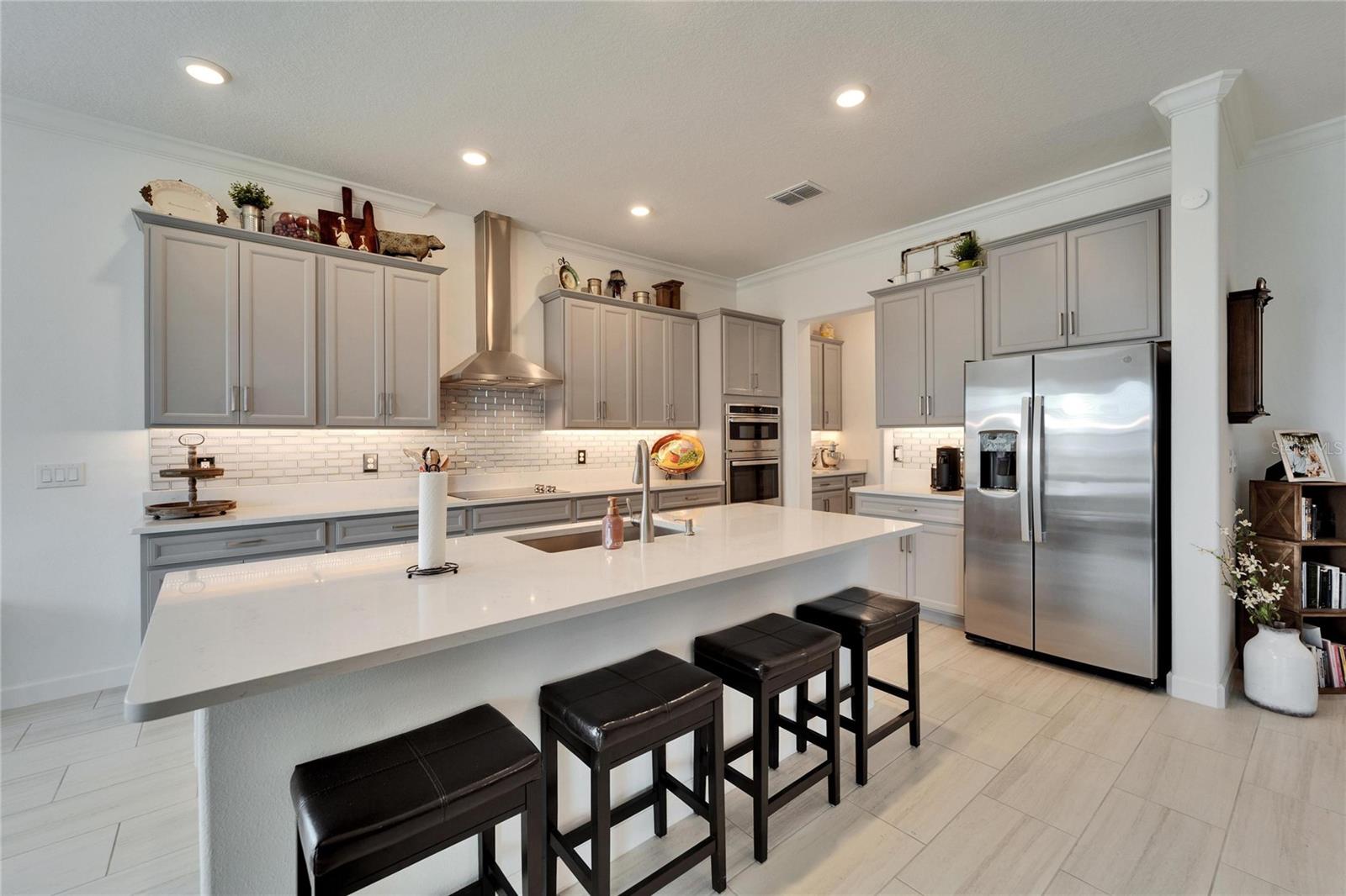 This exceptional home is nestled on an oversized lot on a Cul-de-Sac street! This beautifully designed 3-bedroom, 4-bathroom home offers the perfect blend of luxury, space, and privacy! In addition you have a flex space and upstairs storage space! The upstairs space can be finished into a huge loft with many potential functions! Each of the bedrooms have an ensuite bath, ensuring ultimate comfort and convenience for family and guests! The home boasts quartz countertops throughout, crown molding, luxury tile and 52" ceiling fans in every room, adding both elegance and functionality. The chef's kitchen features an additional butlers pantry, stylish tile backsplash, ample cabinet space, and a modern, open layout perfect for entertaining. Step outside to enjoy the oversized screened lanai, high-elevation lot that backs up to a conservation area providing tons of space and a tranquil, scenic backdrop. The fully fenced yard with double gates, paver driveway, and three-car garage add to the home's appeal, while the screened-in lanai offers the perfect space to unwind and take in the natural surroundings.