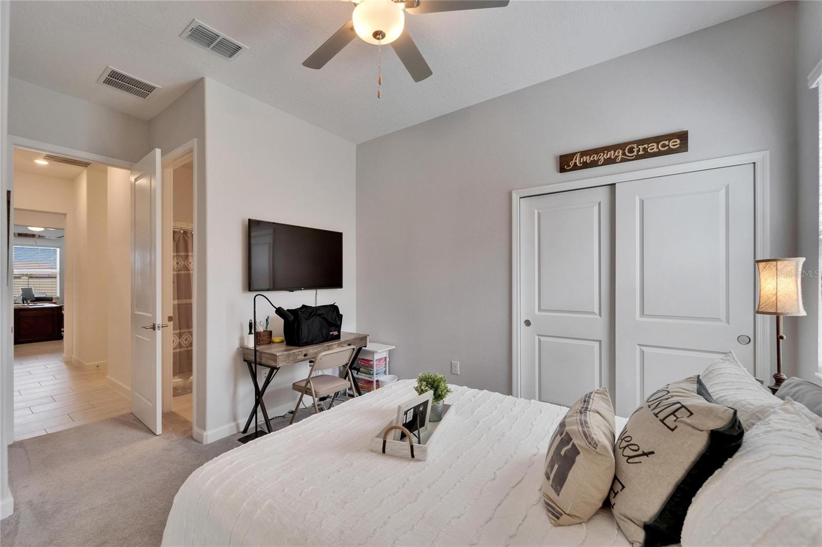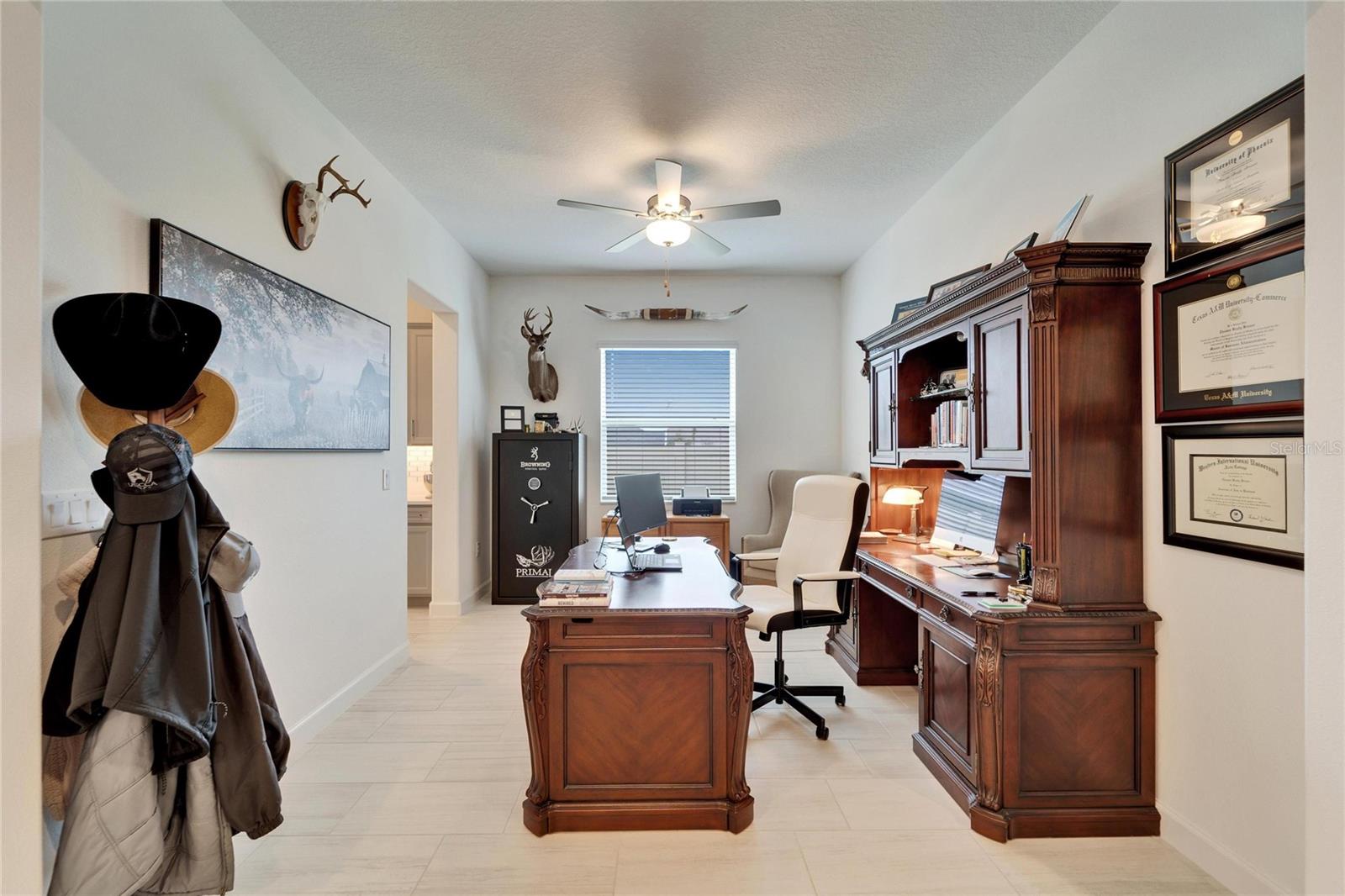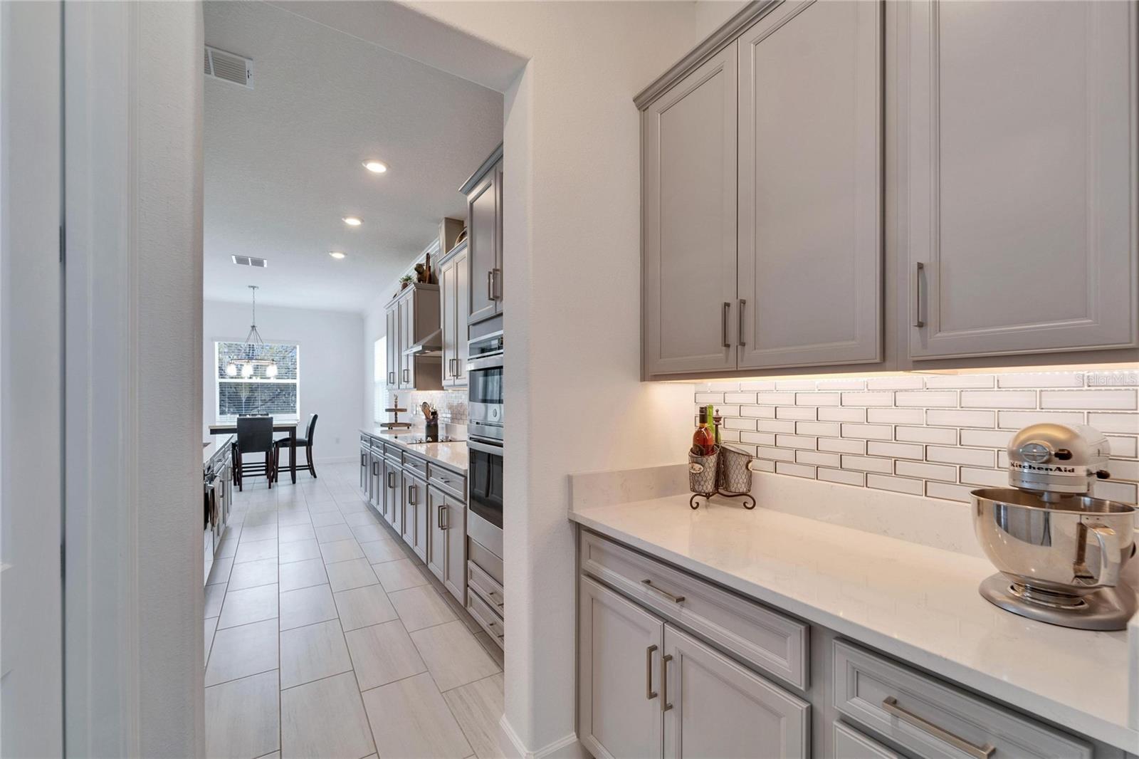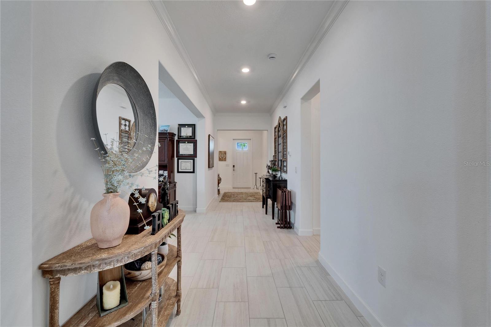 This exceptional home is nestled on an oversized lot on a Cul-de-Sac street! This beautifully designed 3-bedroom, 4-bathroom home offers the perfect blend of luxury, space, and privacy! In addition you have a flex space and upstairs storage space! The upstairs space can be finished into a huge loft with many potential functions! Each of the bedrooms have an ensuite bath, ensuring ultimate comfort and convenience for family and guests! The home boasts quartz countertops throughout, crown molding, luxury tile and 52" ceiling fans in every room, adding both elegance and functionality. The chef's kitchen features an additional butlers pantry, stylish tile backsplash, ample cabinet space, and a modern, open layout perfect for entertaining. Step outside to enjoy the oversized screened lanai, high-elevation lot that backs up to a conservation area providing tons of space and a tranquil, scenic backdrop. The fully fenced yard with double gates, paver driveway, and three-car garage add to the home's appeal, while the screened-in lanai offers the perfect space to unwind and take in the natural surroundings.