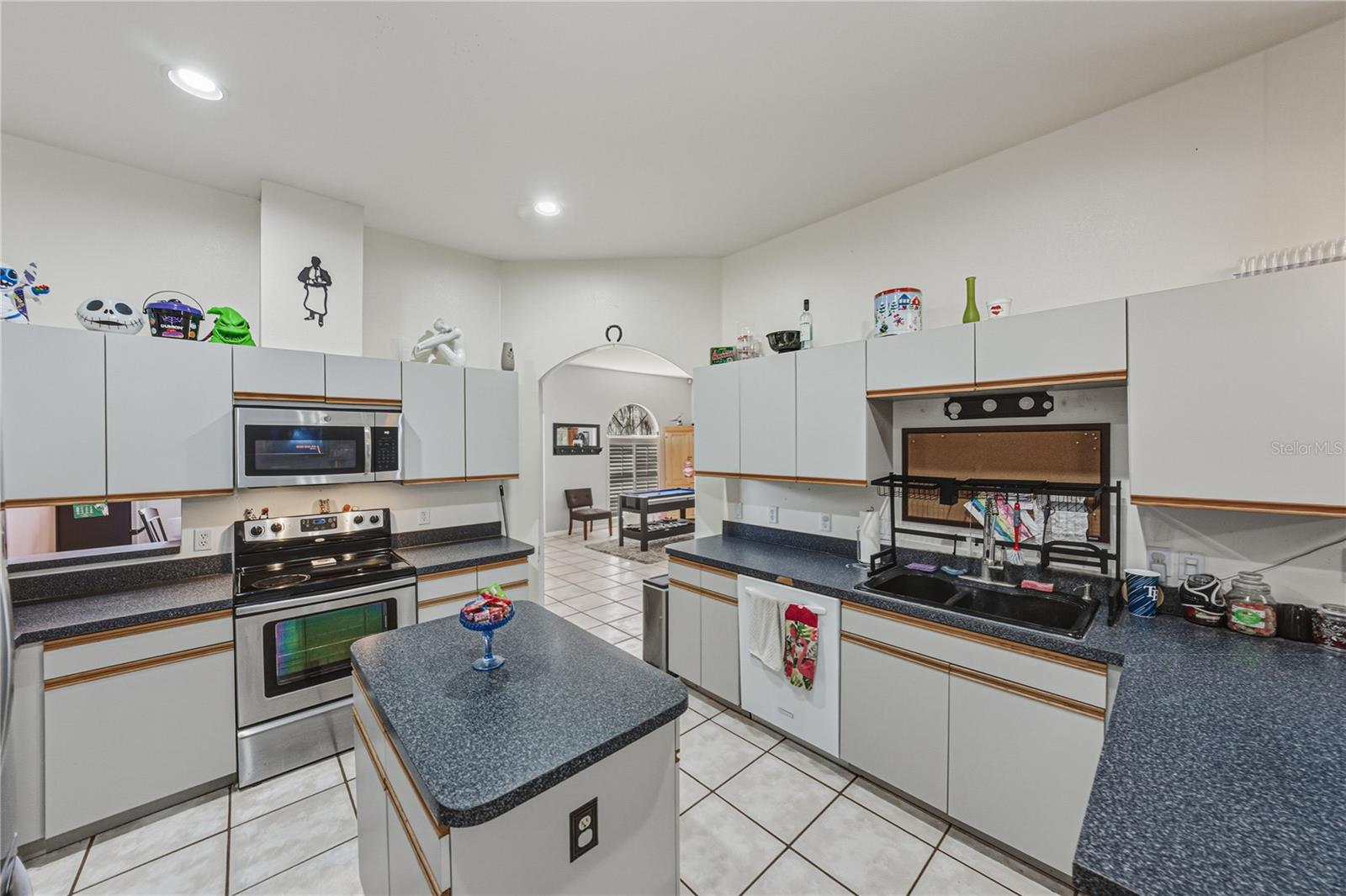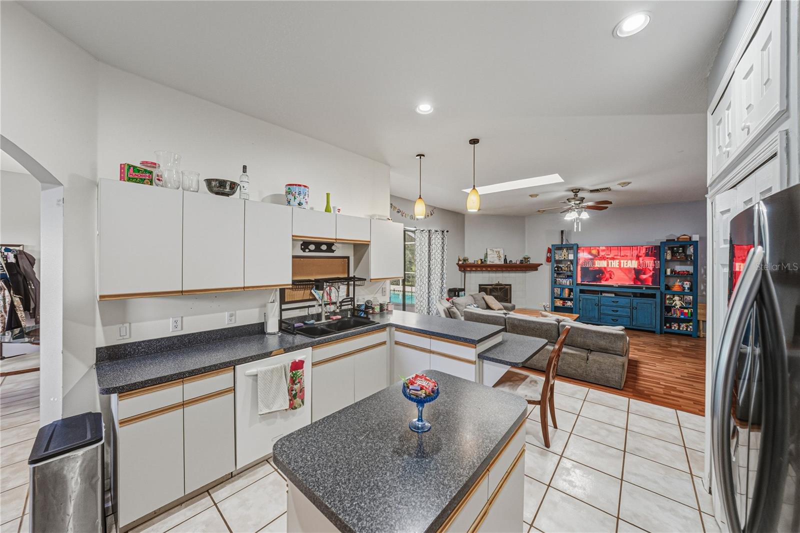 Poolside living truly shines in this 5 bedroom, 3 bath, 2 car garage pool home, set on nearly 1/2 an acre, with a layout built for flexibility and entertaining. Resting within the centrally located community of Cypress Estates in Land O Lakes, the residence pairs a low HOA fee with an established neighborhood feel and a peaceful cul-de-sac setting. A covered entryway accented by pillars, mature landscaping, and an oversized driveway creates a warm arrival and offers plenty of room for multigenerational living and guest parking. Inside, a flexible triple split floor plan unfolds with the screened pool and expansive pool deck serving as the natural focal point of the home. Nearly every main living space opens toward the pool, creating a seamless indoor-outdoor flow that works just as well for everyday living as it does for hosting. The layout includes two separate living areas, a formal dining room, and a spacious central kitchen that keeps everyone connected. Near the front of the home, the formal dining room and oversized living room form an inviting entertaining zone, complete with sliding doors to the pool and easy access to the kitchen. The kitchen offers a central island, pantry storage, a four piece appliance package, breakfast bar seating at the peninsula, a pass-through to the dining room, and open sightlines into the generous family room. The family room continues the poolside theme with laminate flooring, a ceiling fan, recessed triple sliding doors, and a wood-burning fireplace with a wooden mantle that adds warmth and character. Privately positioned, the primary suite is split from the secondary bedrooms and features direct pool access, two walk-in closets, and an ensuite bath with a jetted tub, walk-in shower, water closet, and dual sinks. Four additional bedrooms are thoughtfully divided between opposite wings of the home, each with built-in closets, no carpet, and full bathrooms conveniently located between them. A dedicated storage room provides access to the oversized side-facing garage, while two storage sheds offer even more space for tools, hobbies, or outdoor gear. Out back, the freshly screened pool enclosure and expansive deck overlook a private wooded backdrop, making evenings outdoors feel relaxed and effortless. This is a home designed around how people actually live, gather, and unwind. Give us a call today to experience this Cypress Estates home for yourself and see how well poolside living fits your lifestyle.