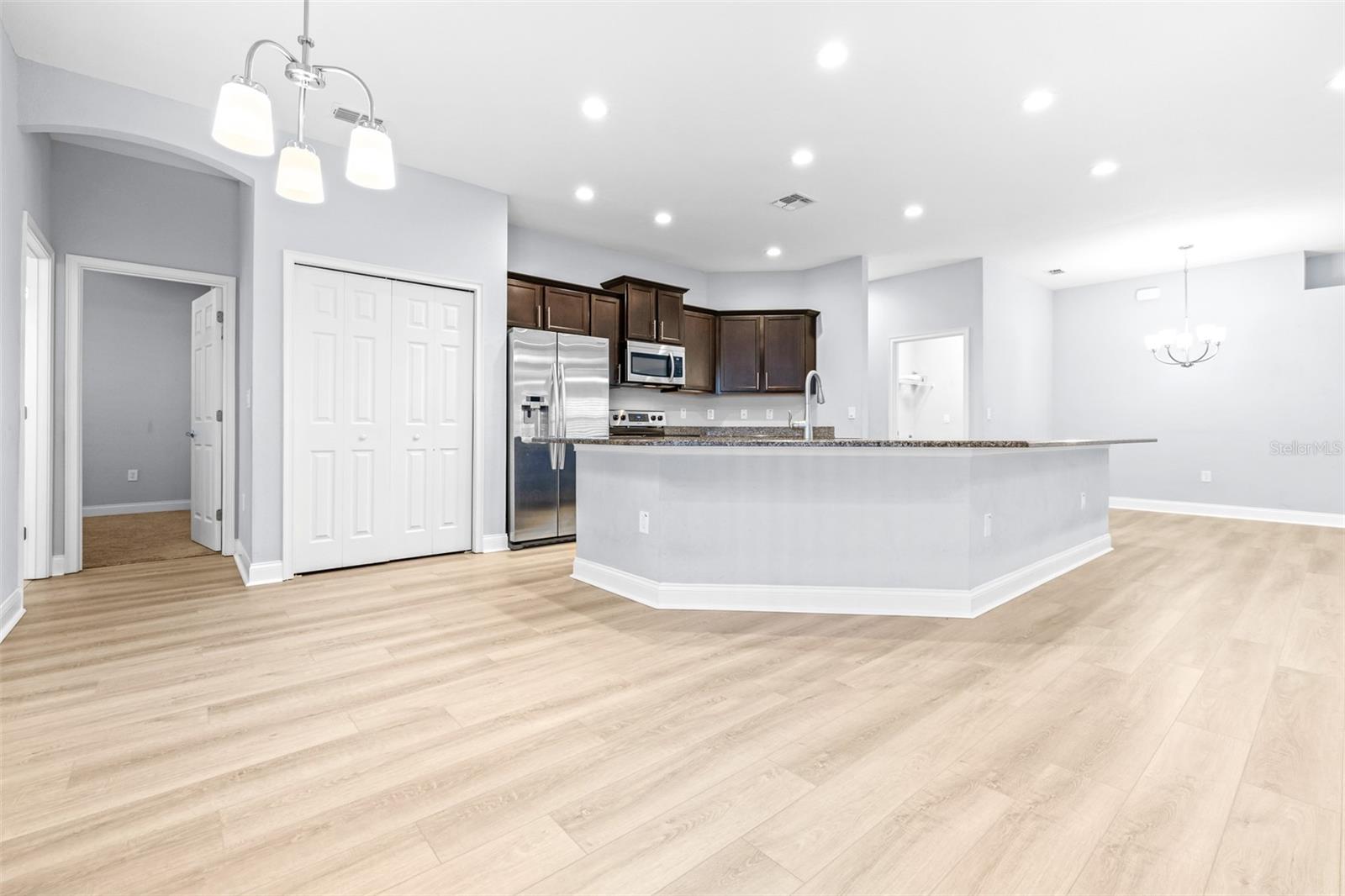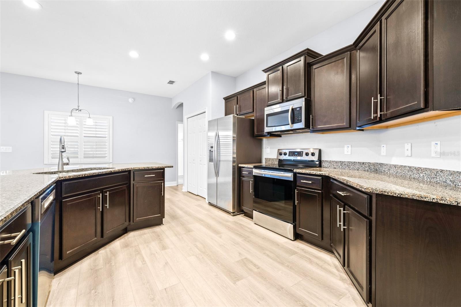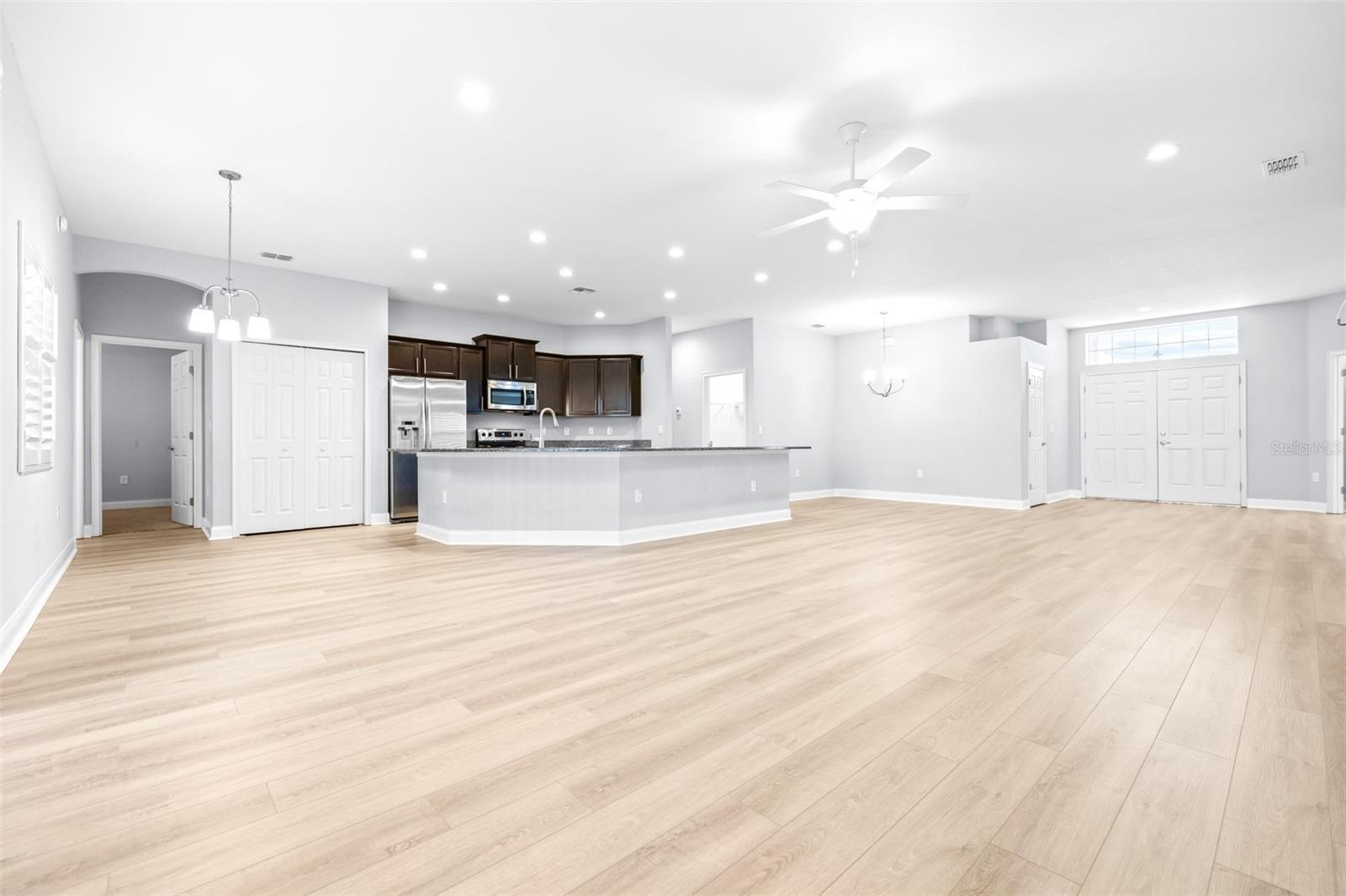 Price Reduction!! Welcome to your new home! Nestled in the highly desirable gated community of Lakeside Preserve in South Lakeland, this 5-bedroom, 3-bathroom home offers a perfect blend of modern design and comfort. This home is situated on a quiet residential cul-de-sac with low HOA and is located just moments away from shopping and local restaurants. The expansive 3-car garage boasts an additional 4ft extension for ample parking! With meticulously designed upgrades throughout, this home embodies both elegance and functionality, making it the perfect sanctuary for a growing family. As you step inside, you are greeted with a beautiful open concept and stunning expansive kitchen with a counter-height bar, versatile dining room and dining cafe. This home also features a den and a fully-open living area including a spacious gathering room. The split floor plan layout offers privacy for the owner's suite. Throughout the home you will notice the 9' ceilings, plantation shutters and brand-new luxury vinyl plank flooring. You will truly fall in love with the gorgeous SALTWATER pool overlooking the water behind the home! Don't miss the opportunity to make this house your home. Schedule a private showing today and experience the perfect blend of style, comfort, and convenience!