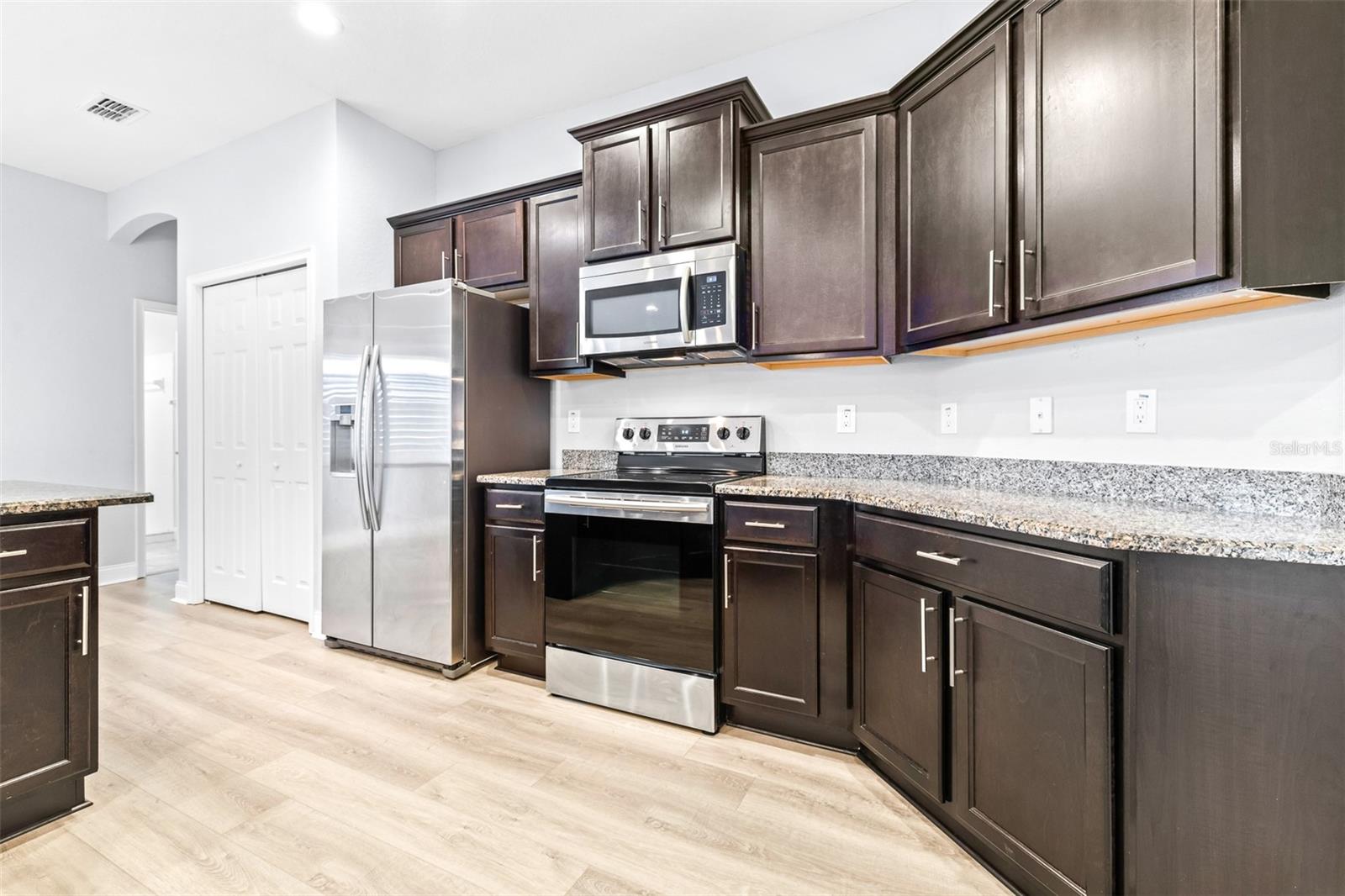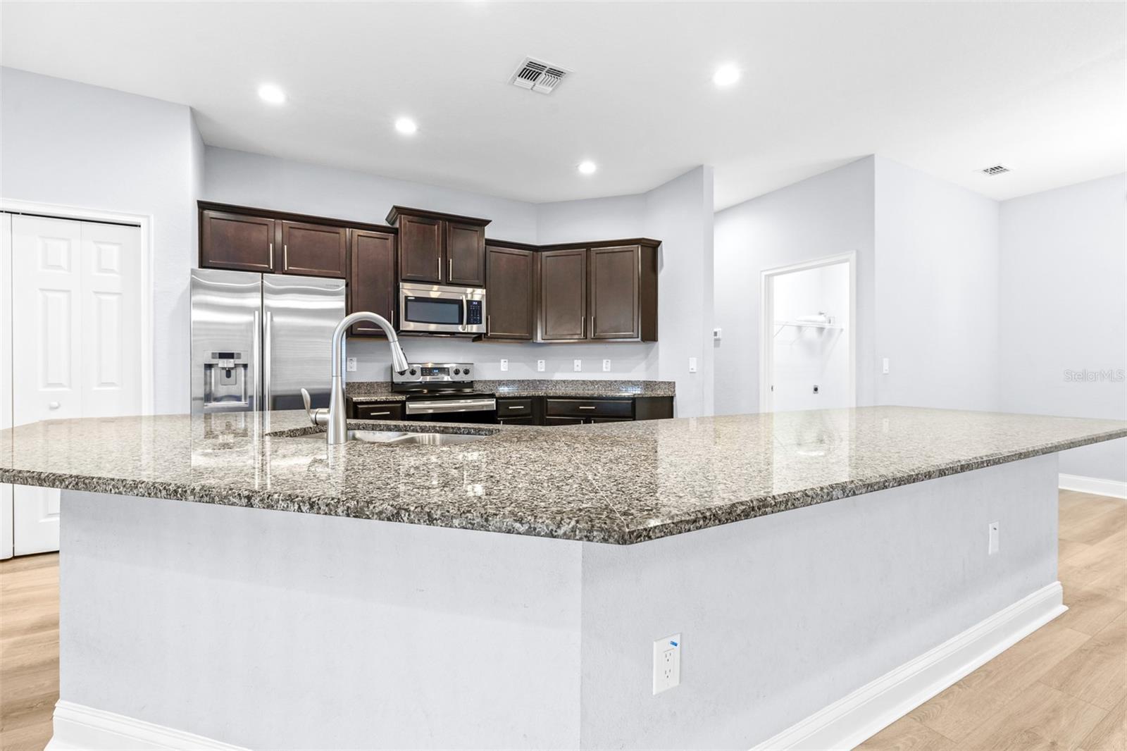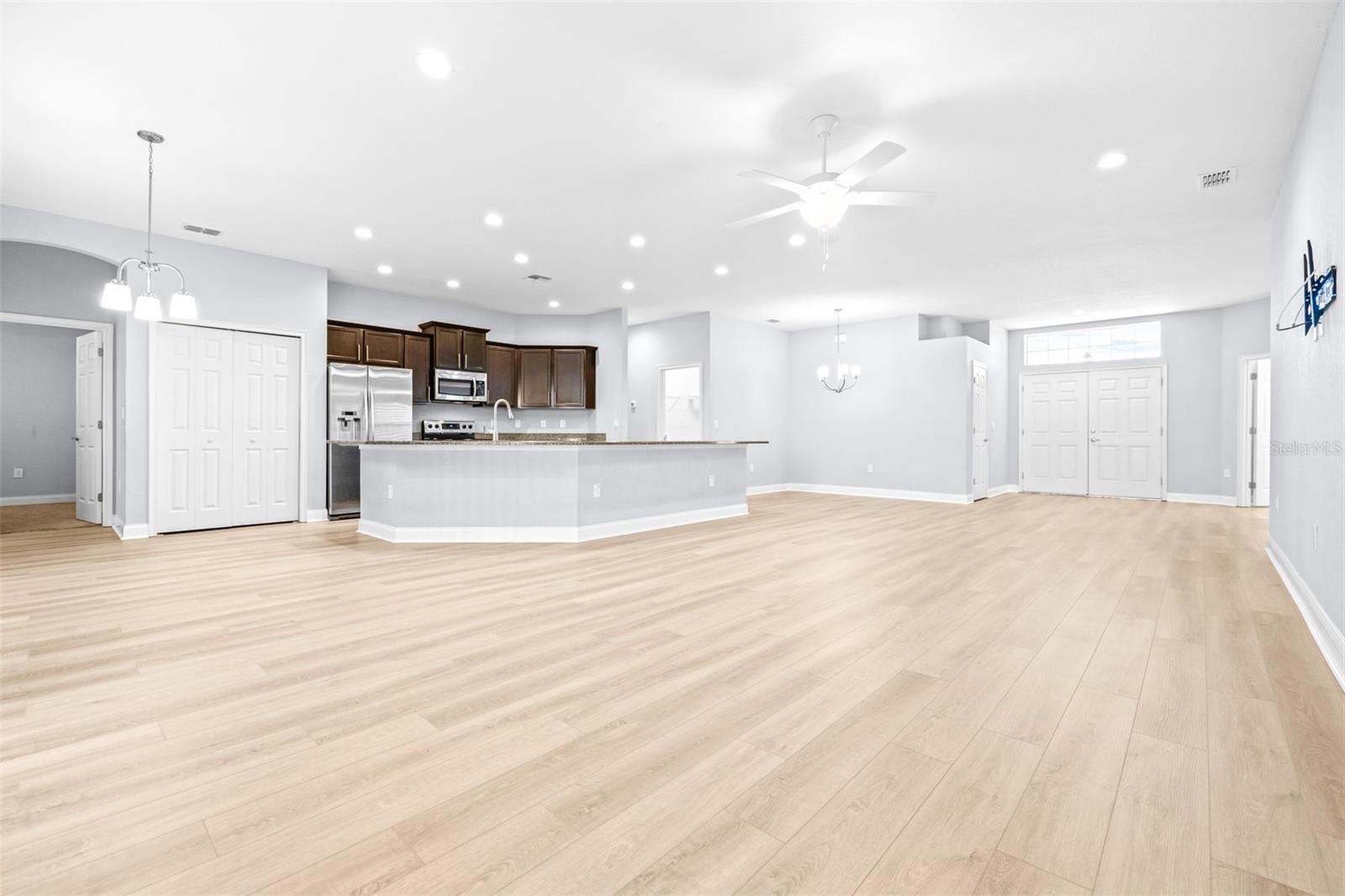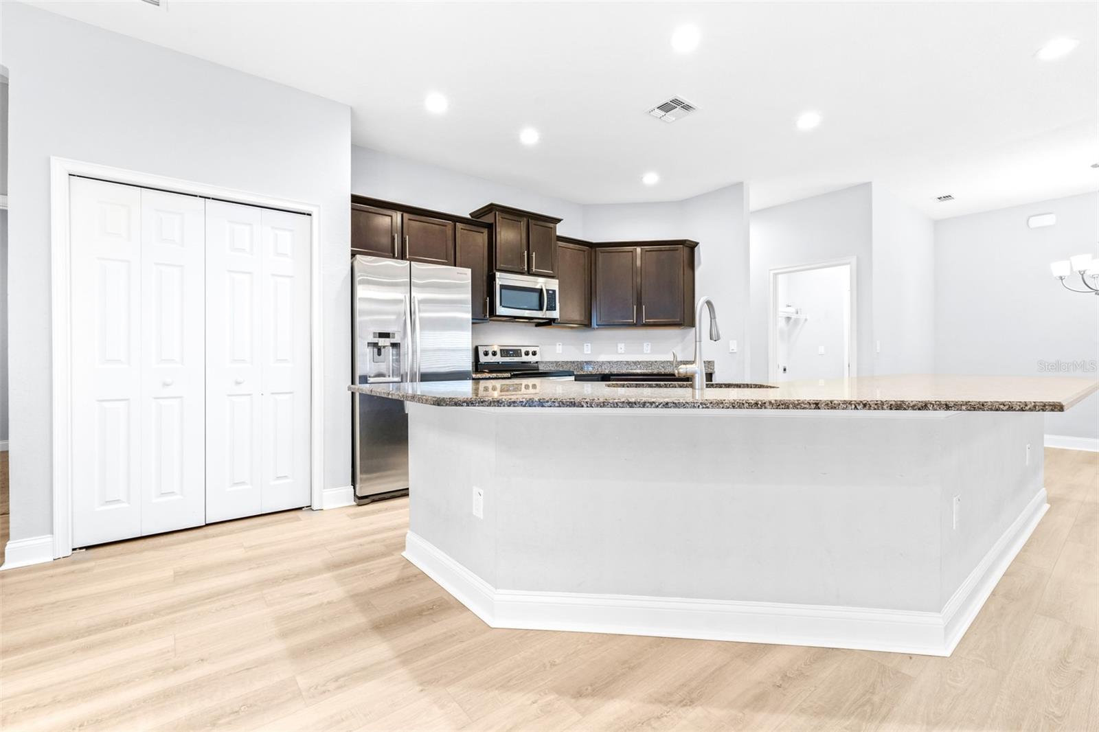 Price Reduction!! Welcome to your new home! Nestled in the highly desirable gated community of Lakeside Preserve in South Lakeland, this 5-bedroom, 3-bathroom home offers a perfect blend of modern design and comfort. This home is situated on a quiet residential cul-de-sac with low HOA and is located just moments away from shopping and local restaurants. The expansive 3-car garage boasts an additional 4ft extension for ample parking! With meticulously designed upgrades throughout, this home embodies both elegance and functionality, making it the perfect sanctuary for a growing family. As you step inside, you are greeted with a beautiful open concept and stunning expansive kitchen with a counter-height bar, versatile dining room and dining cafe. This home also features a den and a fully-open living area including a spacious gathering room. The split floor plan layout offers privacy for the owner's suite. Throughout the home you will notice the 9' ceilings, plantation shutters and brand-new luxury vinyl plank flooring. You will truly fall in love with the gorgeous SALTWATER pool overlooking the water behind the home! Don't miss the opportunity to make this house your home. Schedule a private showing today and experience the perfect blend of style, comfort, and convenience!