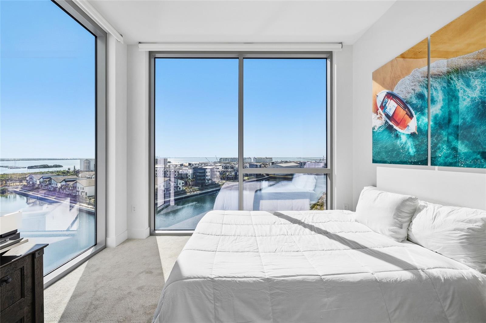 Sunlight pours across shimmering bay waters and the Tampa skyline into this 8th-floor, 4 bedroom, 3.5 bath Marina Pointe residence, where every room frames the bay and every balcony invites you outdoors with breathtaking views that will never be obstructed. Enter into a 24-hour staffed lobby that leads to the elevator sending you up 8 floors to the light and bright private foyer. Inside, the living room, dining room, and kitchen flow together seamlessly, with floor-to-ceiling, hurricane-rated windows keeping the water at the center of daily life. One of this unit's two terraces is off the living room, creating an effortless space for morning coffee, sunset cocktails, or dining alfresco. This chef's kitchen is incredibly functional and refined, featuring European cabinetry, quartz countertops, a backlit wine display, SubZero and Wolf appliances, and a pantry with added shelving, a space that serves everyday living while remaining strikingly elegant for guests. A convenient half bathroom sits in the hallway for visitors, keeping sleeping quarters private. The primary suite is secluded at the rear of the home, offering its own balcony, 2024 tile flooring, and an expansive walk-in closet with extensive custom organizers. The spa-like primary ensuite bath provides dual sinks, a vanity seat, LED-lit mirrors, two water closets (one easily converted to storage), and a wet room with a freestanding soaking tub, glass enclosure, bench, and intricate tile detailing. Bedroom two sits on the opposite end of the home, set up like an additional suite it is the perfect spot for guests! It has its own access to the main balcony, 2 spacious built-in closets, and a full ensuite bathroom with a walk-in shower. Bedrooms three and four are both comfortable sized, joined together by a full Jack-and-Jill bathroom, each offering generous storage and striking views. This unit's value just keeps building! It also provides electric shades, closet organizers throughout, a laundry room with extra storage, 2 parking spaces, and a climate controlled storage unit! Marina Pointe elevates waterfront living with amenities that rival a resort: a heated rooftop pool overlooking the bay, a state-of-the-art fitness center, golf simulator, steam and massage rooms, social lounges, guest suites, fire pits, grilling areas, and a dedicated dog park. The community's prime location in the Westshore Marina District places Downtown Tampa, St. Petersburg, and Tampa International Airport just minutes away. This residence is a rare opportunity to experience Tampa Bay at its finest. Schedule a private tour today to see how Marina Pointe transforms everyday life into an extraordinary waterfront experience- and for those looking to expand the Marina lifestyle even further, there is a separate 40 ft boat slip for sale. Do not miss out on this incredible opportunity!