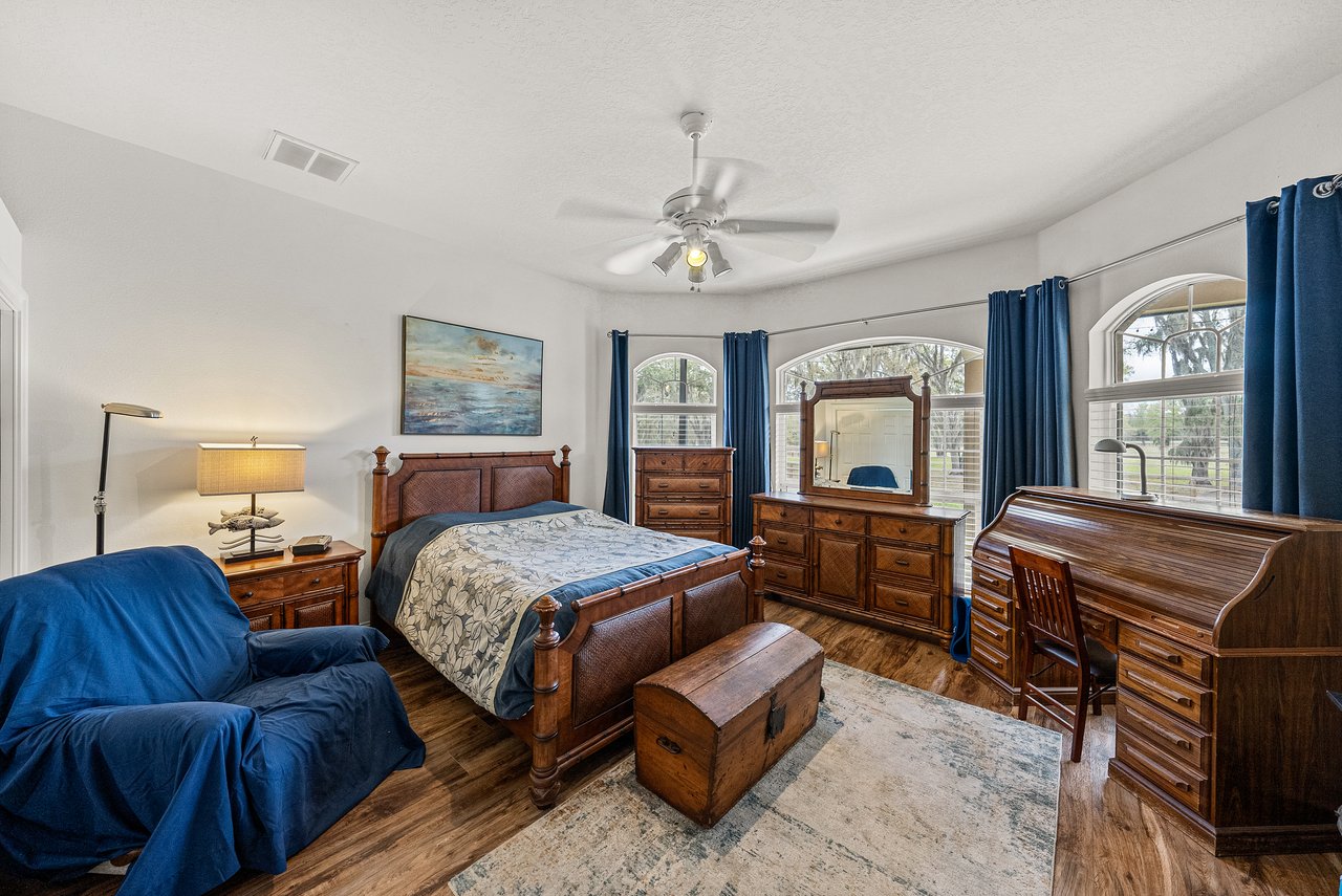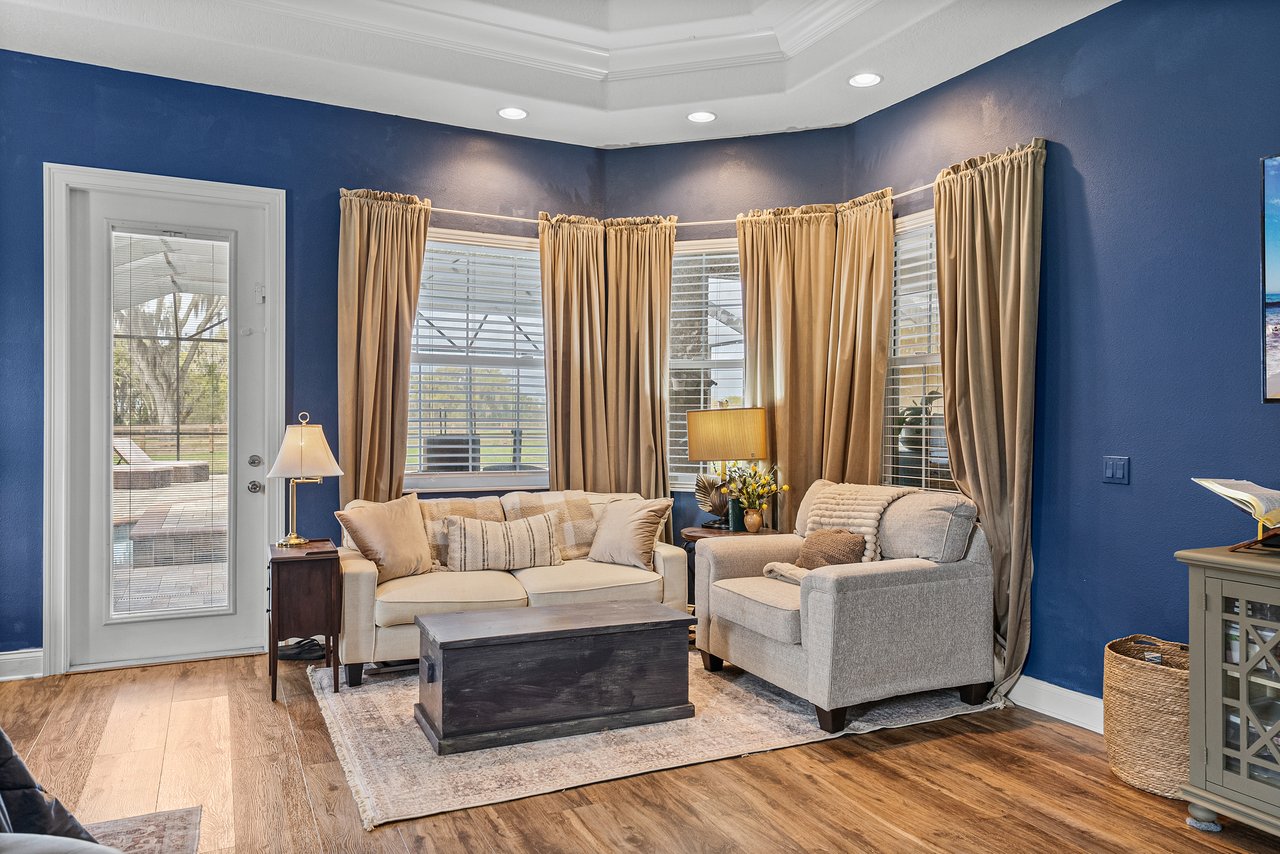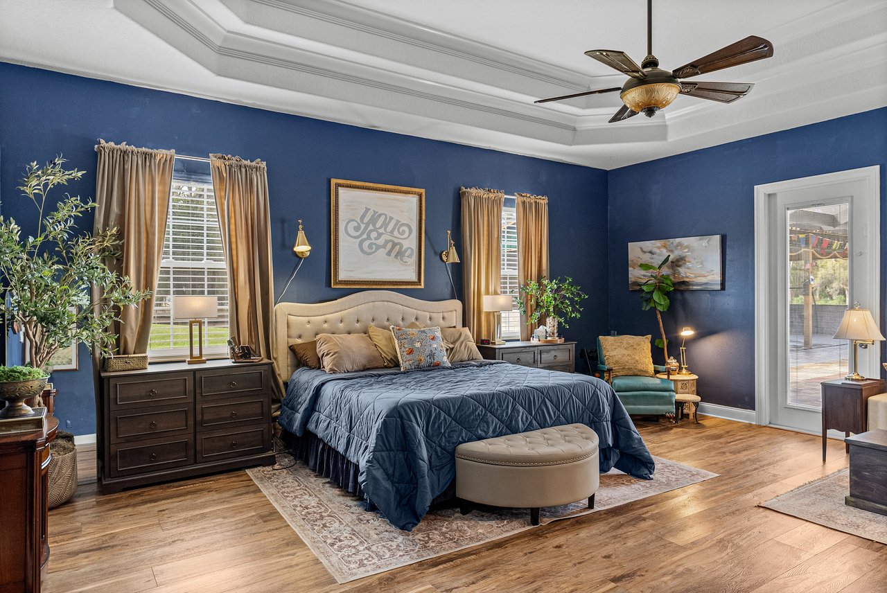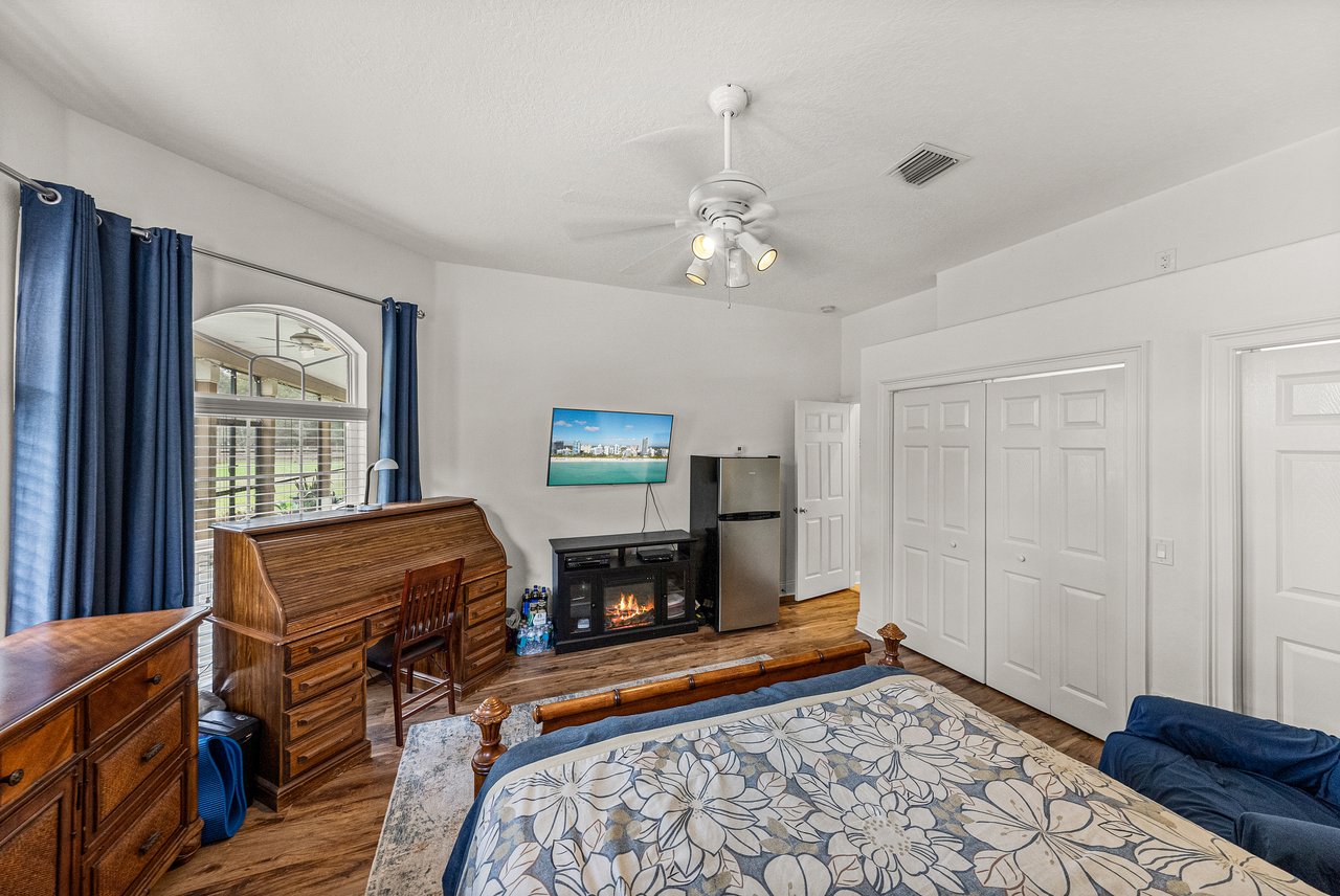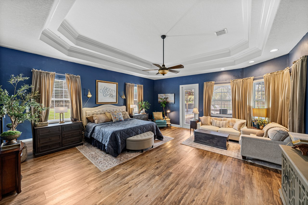 away and impressively sized at 19x31 ft, complete with its own sitting area, lanai access, double tray ceiling, and an