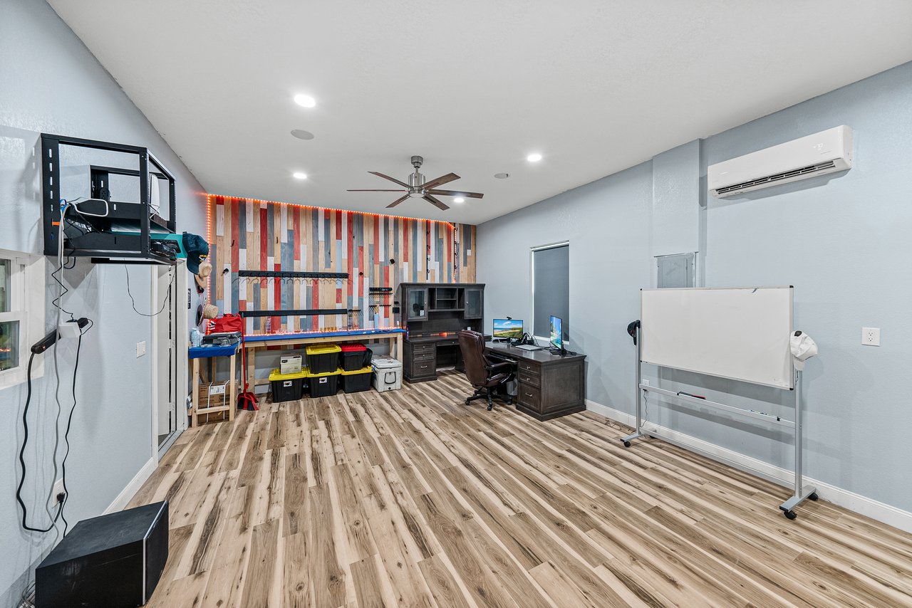 provides 2 spacious living rooms, a formal dining room, 2 dedicated offices, a split bedroom layout, and finishes that