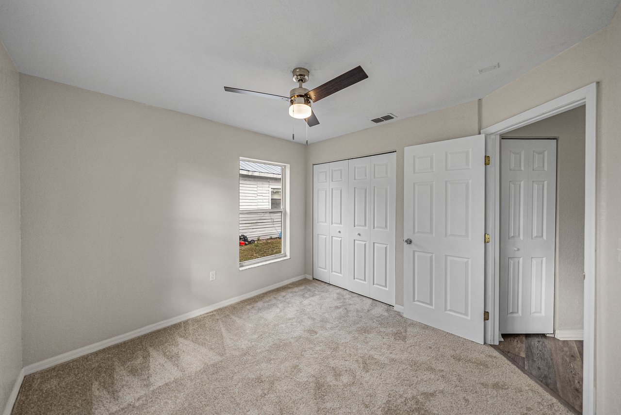 comfortably sized and feature built-in closets, new carpeting, ceiling fans, and a clean, updated