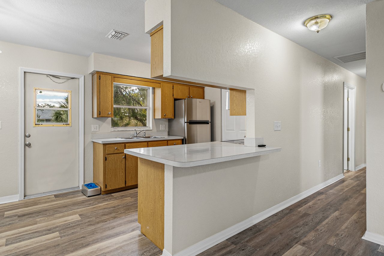 convenient breakfast bar seating. Just beyond, the nearby laundry room includes a new washer