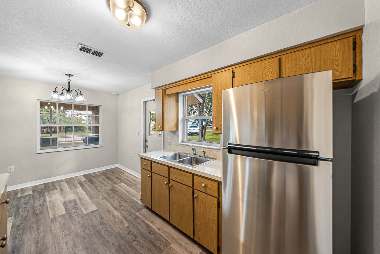 kitchen, which has been tastefully updated with new stainless steel appliances and offers