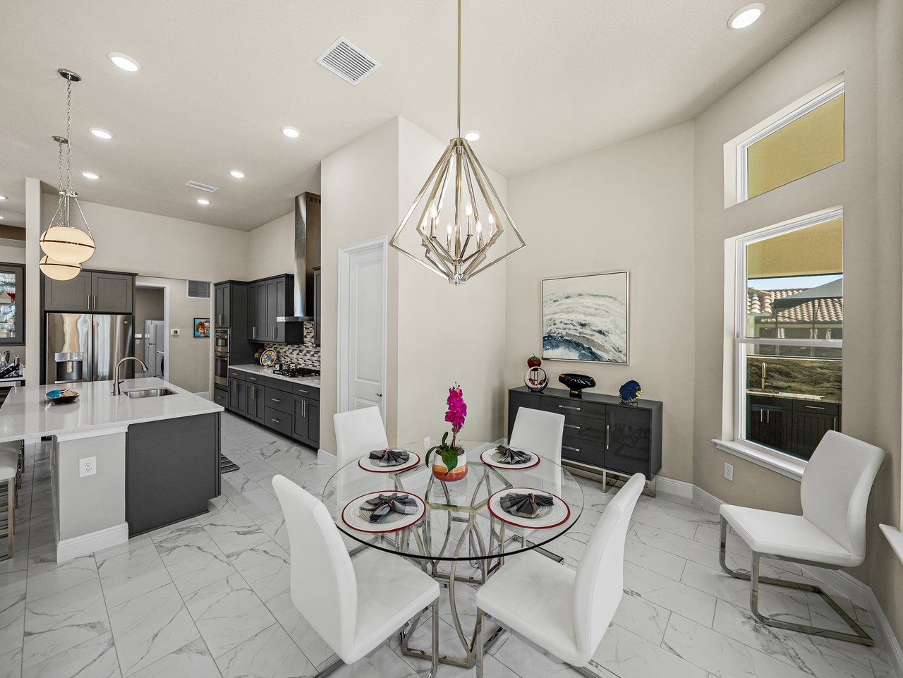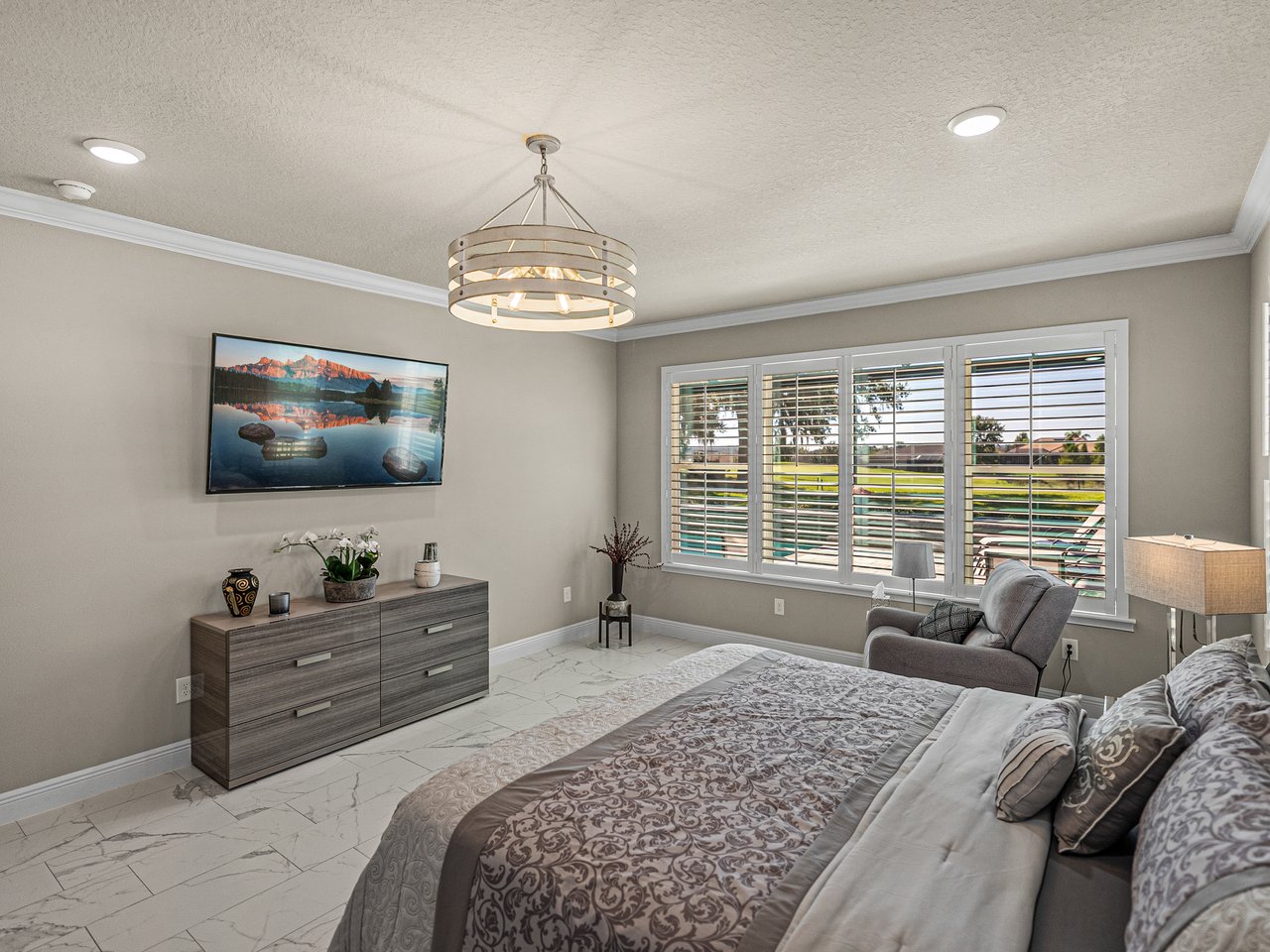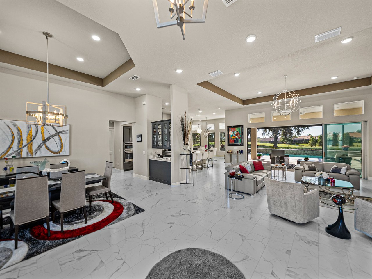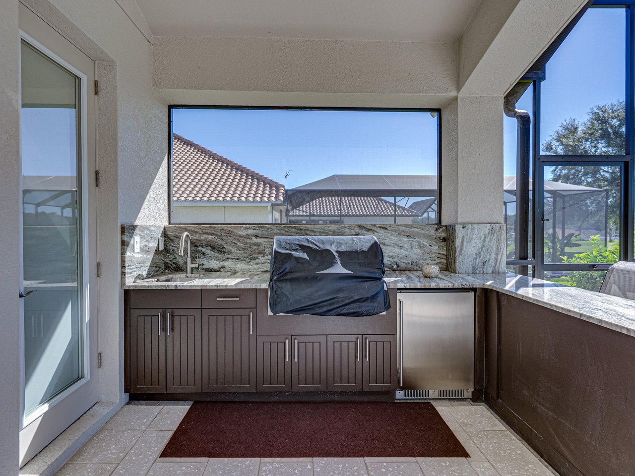 This exceptional new listing in Lake Jovita truly embodies luxury Florida living. This newly built, 3,174 sq ft pool home is situated on nearly half an acre with stunning golf course views, offering three bedrooms plus an office, and 3.5 baths. The curb appeal is meticulously designed with manicured landscaping, a paver driveway, and an oversized three-car garage. Over $250,000 in upgrades have transformed the backyard into a private oasis. Step inside to discover a residence where quality craftsmanship meets modern elegance. Twelve-foot ceilings create dramatic volume, complemented by porcelain tile flooring, upscale light fixtures, and plantation shutters throughout. The open and airy layout features quad sliding glass doors that lead to a high-end Shellock pool deck, seamlessly blending indoor and outdoor entertaining.The heart of the home is a stunning and functional kitchen, complete with quartz countertops, an island with seating for four, stainless steel appliances (including a gas cooktop and built-in oven), a hidden walk-in pantry, and a custom pass-through bar with a wine refrigerator that connects to the dedicated dining room. An office or additional living room provides an ideal workspace, while the primary suite offers a lavish retreat with two walk-in closets and a spa-inspired bath featuring a freestanding soaking tub and walk-in shower. Two guest suites, located on the opposite side of the home, each include a private full bathroom and walk-in closets, with one offering convenient pool access. The outdoor living space is equally impressive, featuring a screened lanai with Shellock pavers, a covered seating area overlooking the golf course, and a fully equipped outdoor kitchen with a grill, wet bar, refrigerator, and bar seating. The heated saltwater pool and spa, complete with Pentair equipment, provide the perfect escape from the Florida sun. Lake Jovita's resort-style amenities further enhance the experience, with optional access to two championship golf courses, a clubhouse, tennis and pickleball courts, dog parks, a fitness center, and scenic walking trails. I invite you to take the first step toward the Lake Jovita lifestyle by calling today to schedule a personal tour of this extraordinary home.