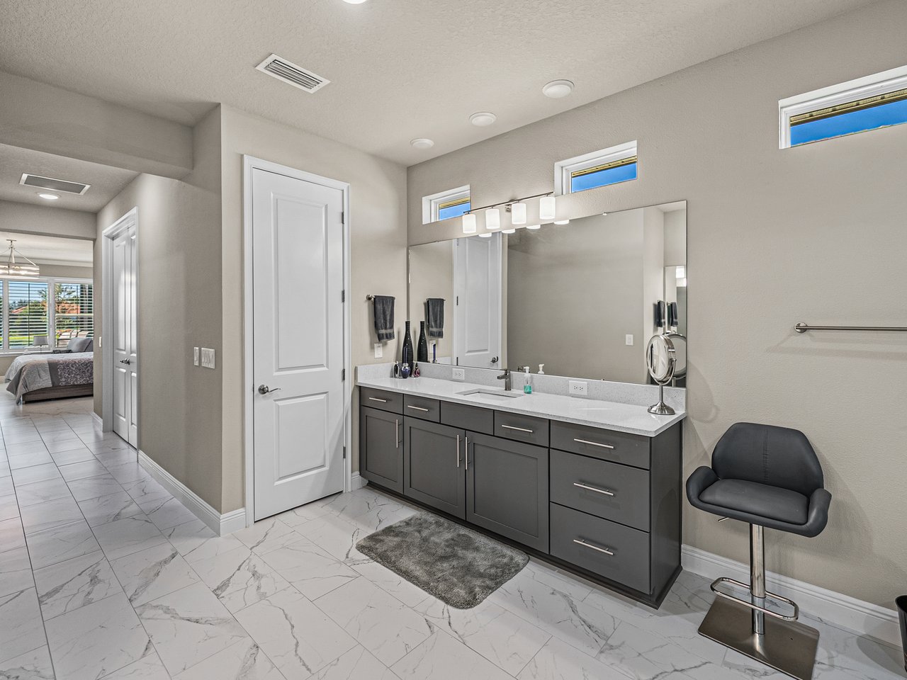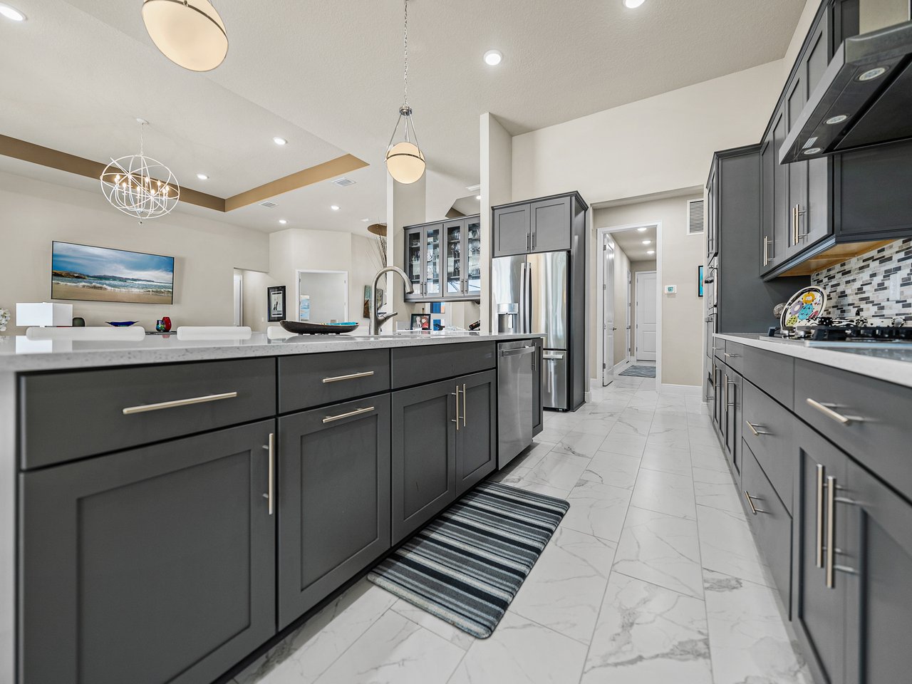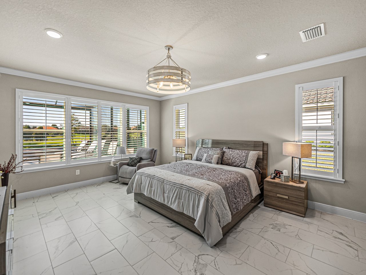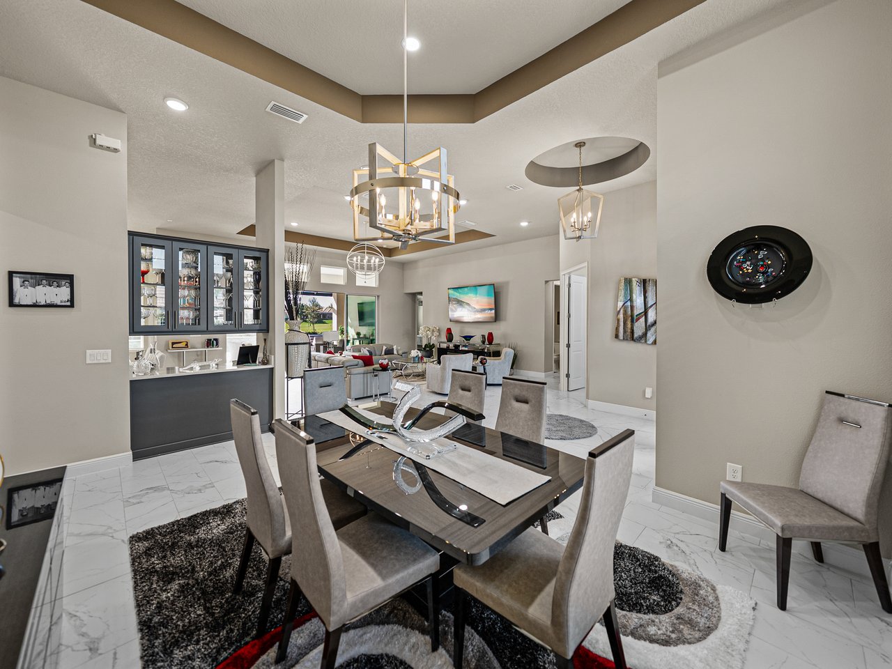 This exceptional new listing in Lake Jovita truly embodies luxury Florida living. This newly built, 3,174 sq ft pool home is situated on nearly half an acre with stunning golf course views, offering three bedrooms plus an office, and 3.5 baths. The curb appeal is meticulously designed with manicured landscaping, a paver driveway, and an oversized three-car garage. Over $250,000 in upgrades have transformed the backyard into a private oasis. Step inside to discover a residence where quality craftsmanship meets modern elegance. Twelve-foot ceilings create dramatic volume, complemented by porcelain tile flooring, upscale light fixtures, and plantation shutters throughout. The open and airy layout features quad sliding glass doors that lead to a high-end Shellock pool deck, seamlessly blending indoor and outdoor entertaining.The heart of the home is a stunning and functional kitchen, complete with quartz countertops, an island with seating for four, stainless steel appliances (including a gas cooktop and built-in oven), a hidden walk-in pantry, and a custom pass-through bar with a wine refrigerator that connects to the dedicated dining room. An office or additional living room provides an ideal workspace, while the primary suite offers a lavish retreat with two walk-in closets and a spa-inspired bath featuring a freestanding soaking tub and walk-in shower. Two guest suites, located on the opposite side of the home, each include a private full bathroom and walk-in closets, with one offering convenient pool access. The outdoor living space is equally impressive, featuring a screened lanai with Shellock pavers, a covered seating area overlooking the golf course, and a fully equipped outdoor kitchen with a grill, wet bar, refrigerator, and bar seating. The heated saltwater pool and spa, complete with Pentair equipment, provide the perfect escape from the Florida sun. Lake Jovita's resort-style amenities further enhance the experience, with optional access to two championship golf courses, a clubhouse, tennis and pickleball courts, dog parks, a fitness center, and scenic walking trails. I invite you to take the first step toward the Lake Jovita lifestyle by calling today to schedule a personal tour of this extraordinary home.