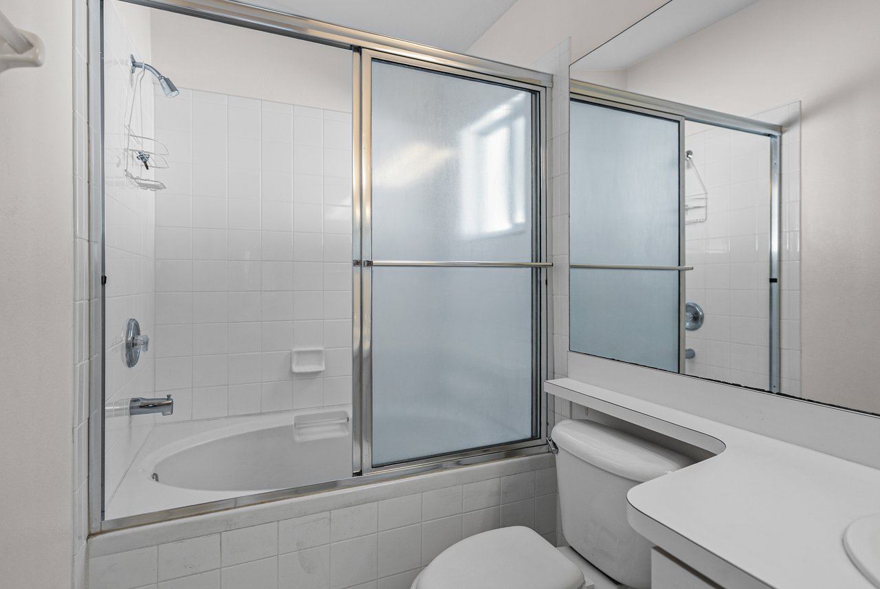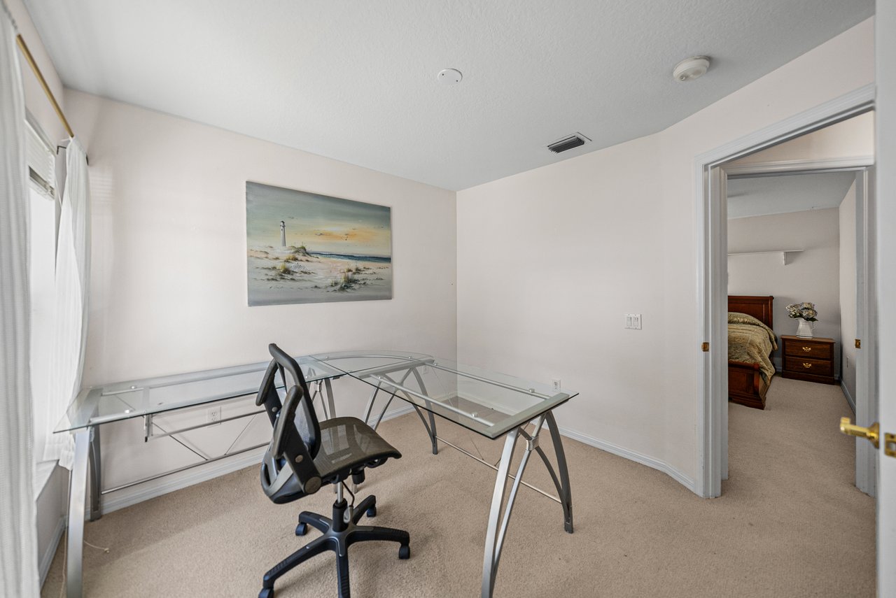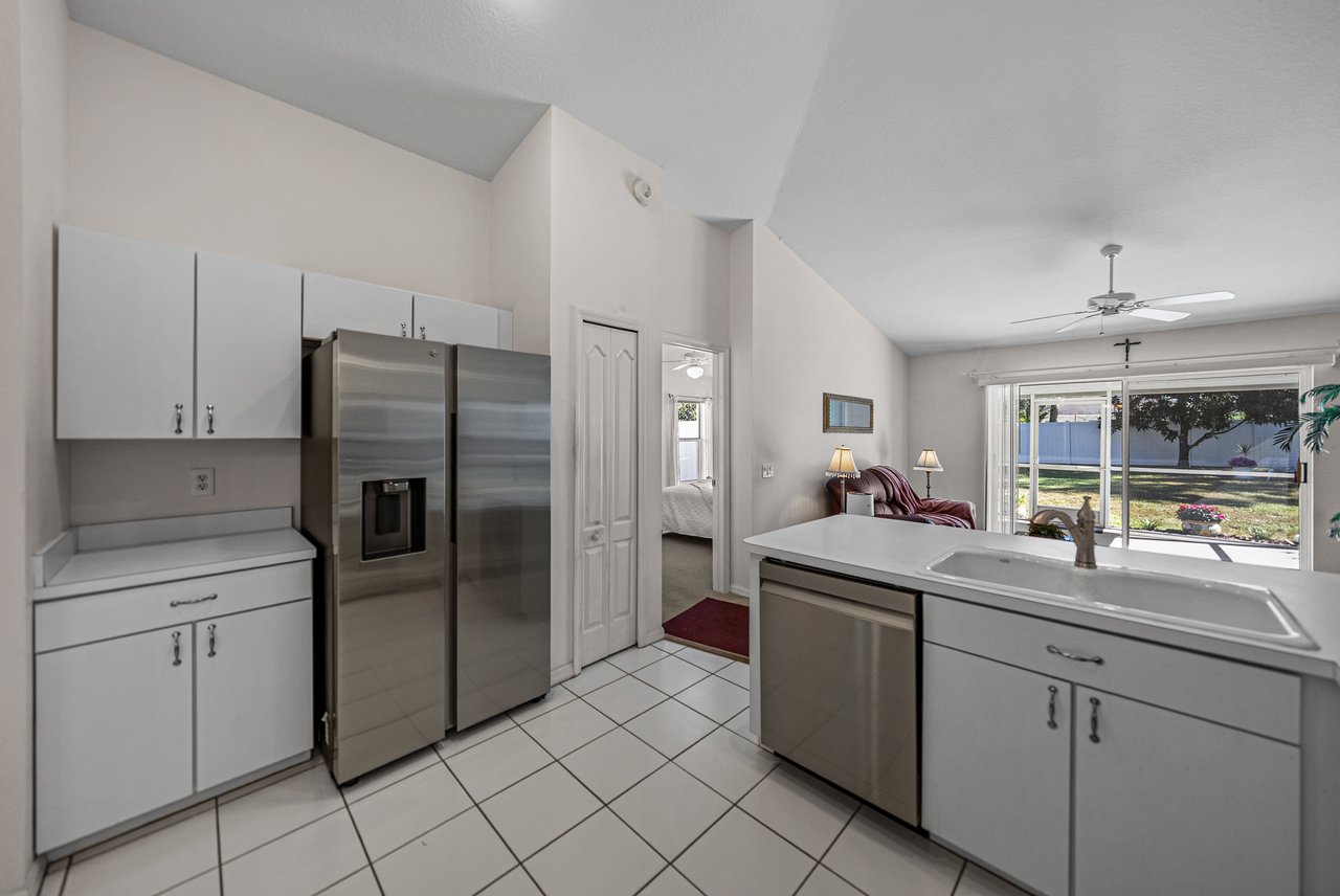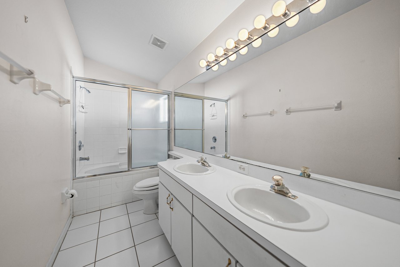home's second full bathroom nearby. Peaceful Florida living awaits outdoors, where the screened