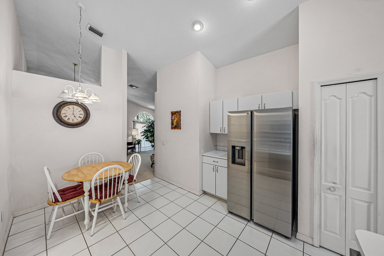 arranged with breakfast bar seating, an eat-in dinette, pantry storage, and newer Samsung