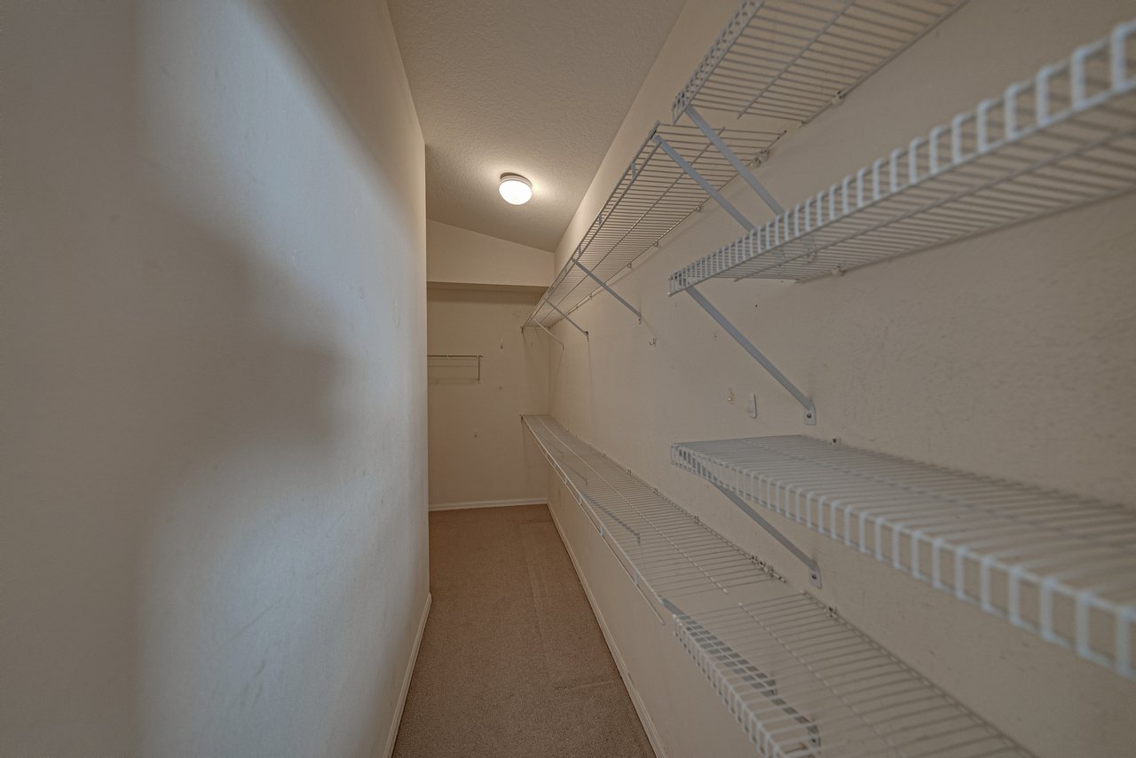 features a large walk-in closet along with an ensuite bath offering dual sinks and a tub/shower