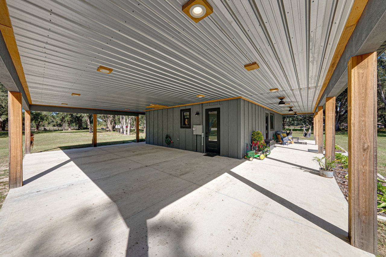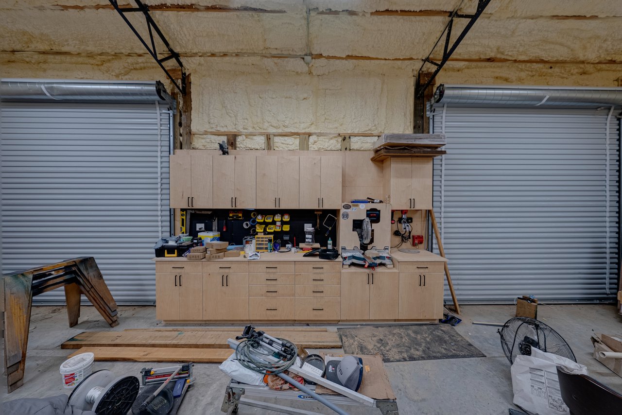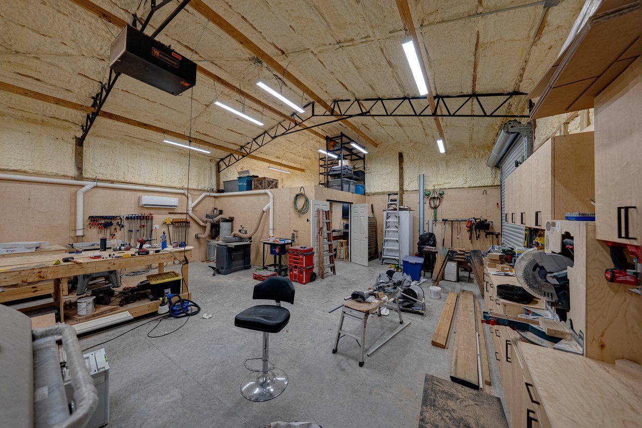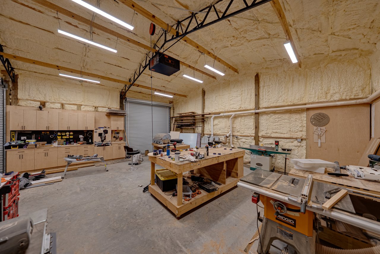 multiple work benches, and exceptional storage capacity. A 5 bay detached carport includes