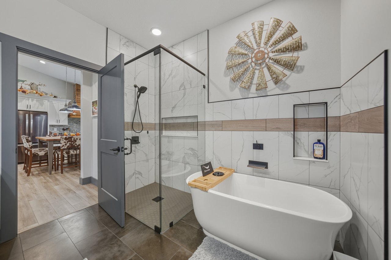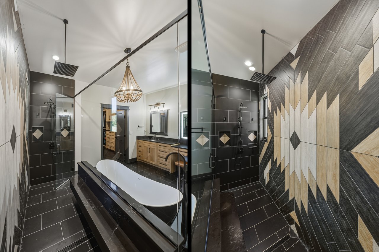 privacy, and both bathrooms are beautifully finished with a mix of walk-in showers and soaking