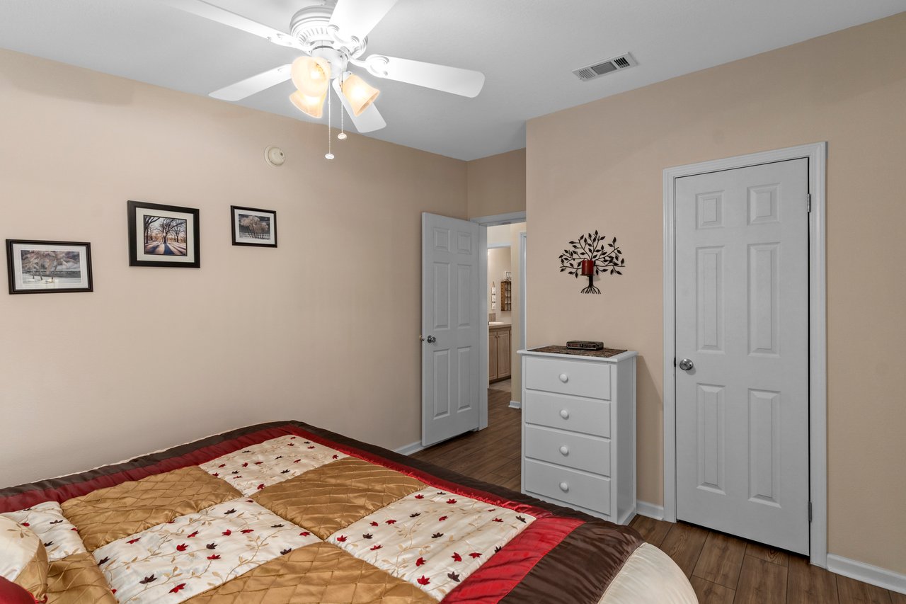 offers a large walk-in closet along with an oversized ensuite bathroom including dual sinks and a