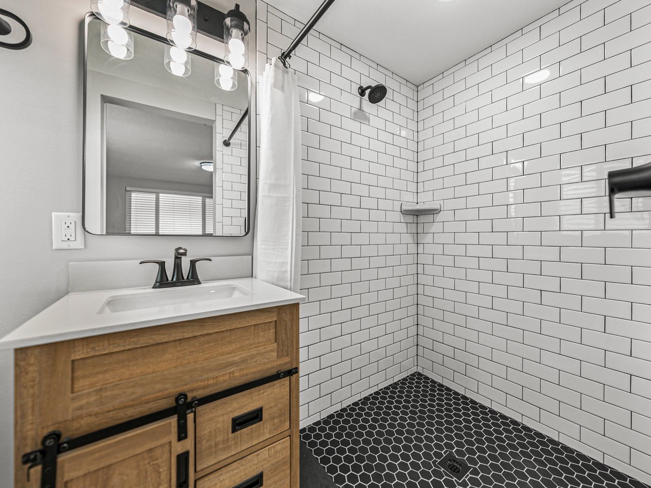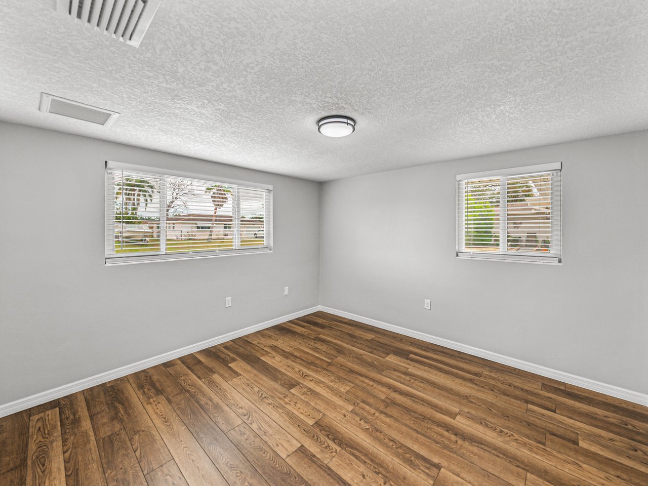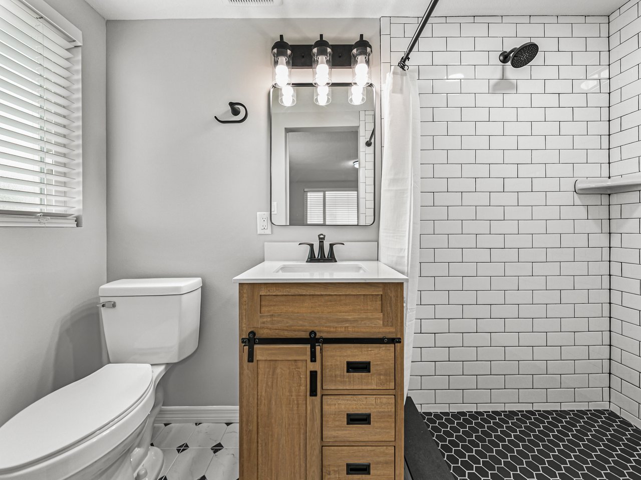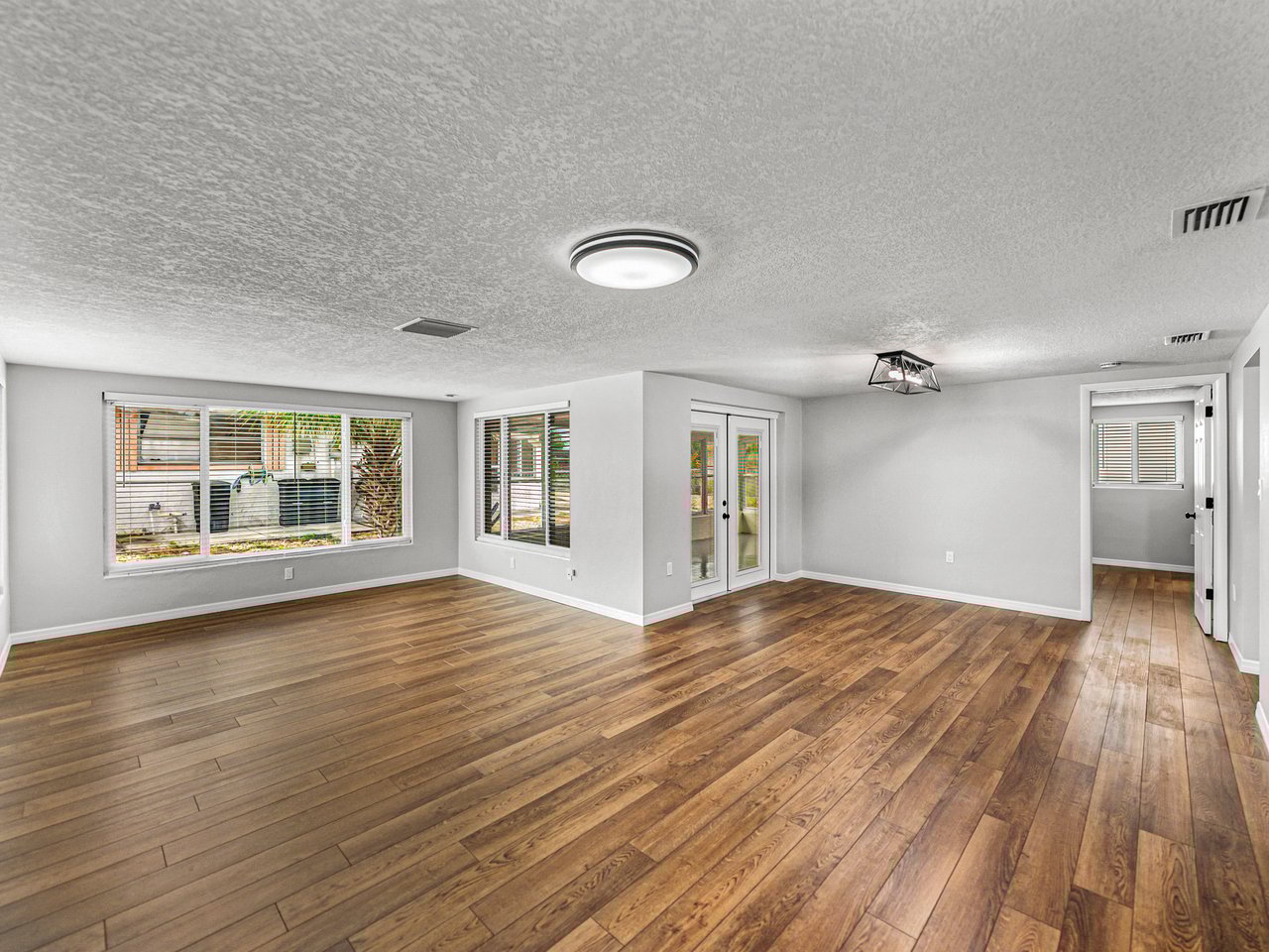A picture perfect corner lot in the heart of Port Richey, this completely refreshed 3 bedroom, 2 bath, 1 car garage home delivers modern style and exceptional living from top to bottom. The curb appeal captivates with a freshly painted exterior, new landscaping and lighting, and added parking pads for extra guest parking, a boat or RV. Every major component has been updated since 2017, including the roof, AC, water heater, and windows, while the full interior transformation was completed in 2025. Step inside to find all-new luxury vinyl plank flooring, interior paint, doors, hardware, lighting, and beautifully redone bathrooms and kitchen. This kitchen is an absolute standout, featuring brand new stainless steel appliances, soft-close cabinetry, granite countertops, a decorative backsplash, and matte black hardware and lighting for a designer finish. With its easy access to both the pantry and garage, unloading groceries couldn't be simpler. Natural light fills the main living areas, where the living room flows seamlessly into the dining room, accented by a modern chandelier and French doors that open to the sunroom, creating the ultimate entertainer's layout with a polished, cohesive style that shines from room to room. The primary suite is privately tucked away and provides a large walk-in closet and a completely redone ensuite bathroom, both highlighted by trendy barn doors. The ensuite showcases a new modern rustic vanity, new toilet, updated flooring, and a walk-in shower with decorative subway tile detailing. Two comfortable guest bedrooms are located on the other side of the home, each offering new lighting, flooring, closet doors, and shelving. They share a fully renovated bathroom with a new oversized vanity, new toilet, and a fresh tub/shower combo accented by decorative blue tile that adds a perfect pop of color. Enjoy Florida living at its finest with multiple outdoor spaces to relax and unwind, an attached enclosed porch ideal for morning coffee, and an open patio ready for a tranquil fire pit setup. Beautifully finished epoxy floors in both the garage and sunroom add durability and a clean crisp look- even the driveway has been refreshed, creating a truly turnkey home from start to finish! Completely move-in ready and close to shopping, dining, and entertainment, this home is waiting for its newest owner. Don't miss your chance to make it yours, schedule your showing today and fall in love with this stunning Port Richey retreat!