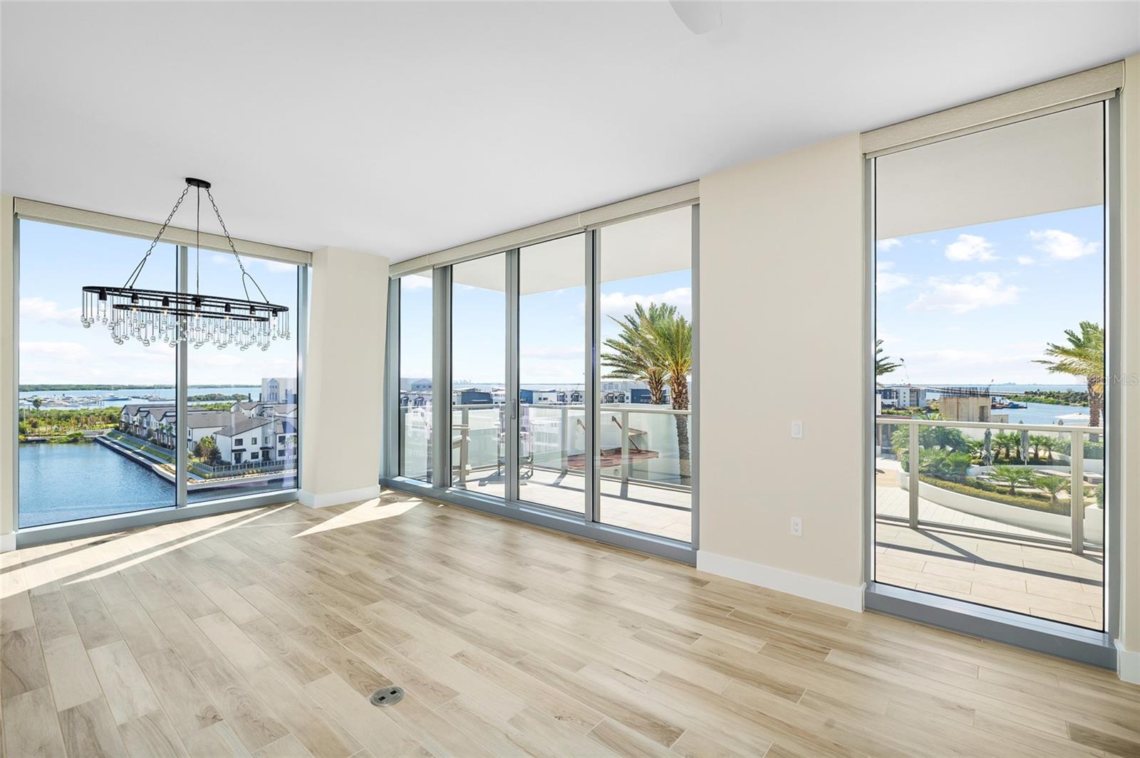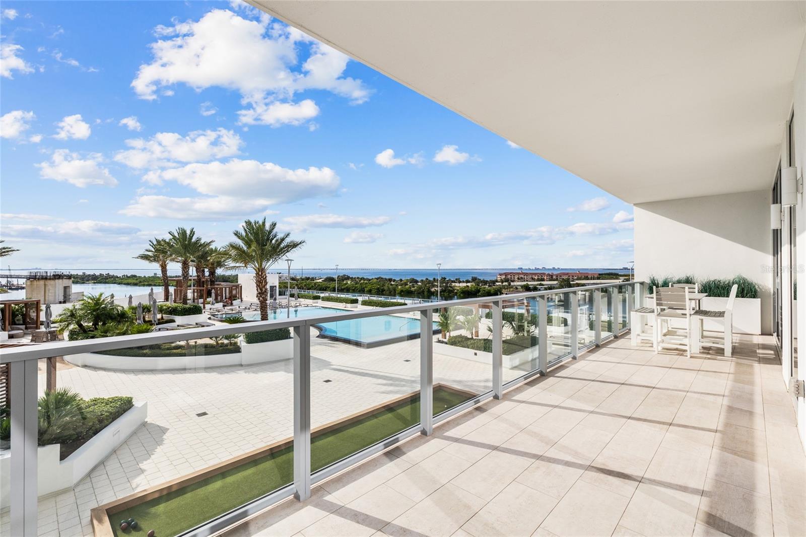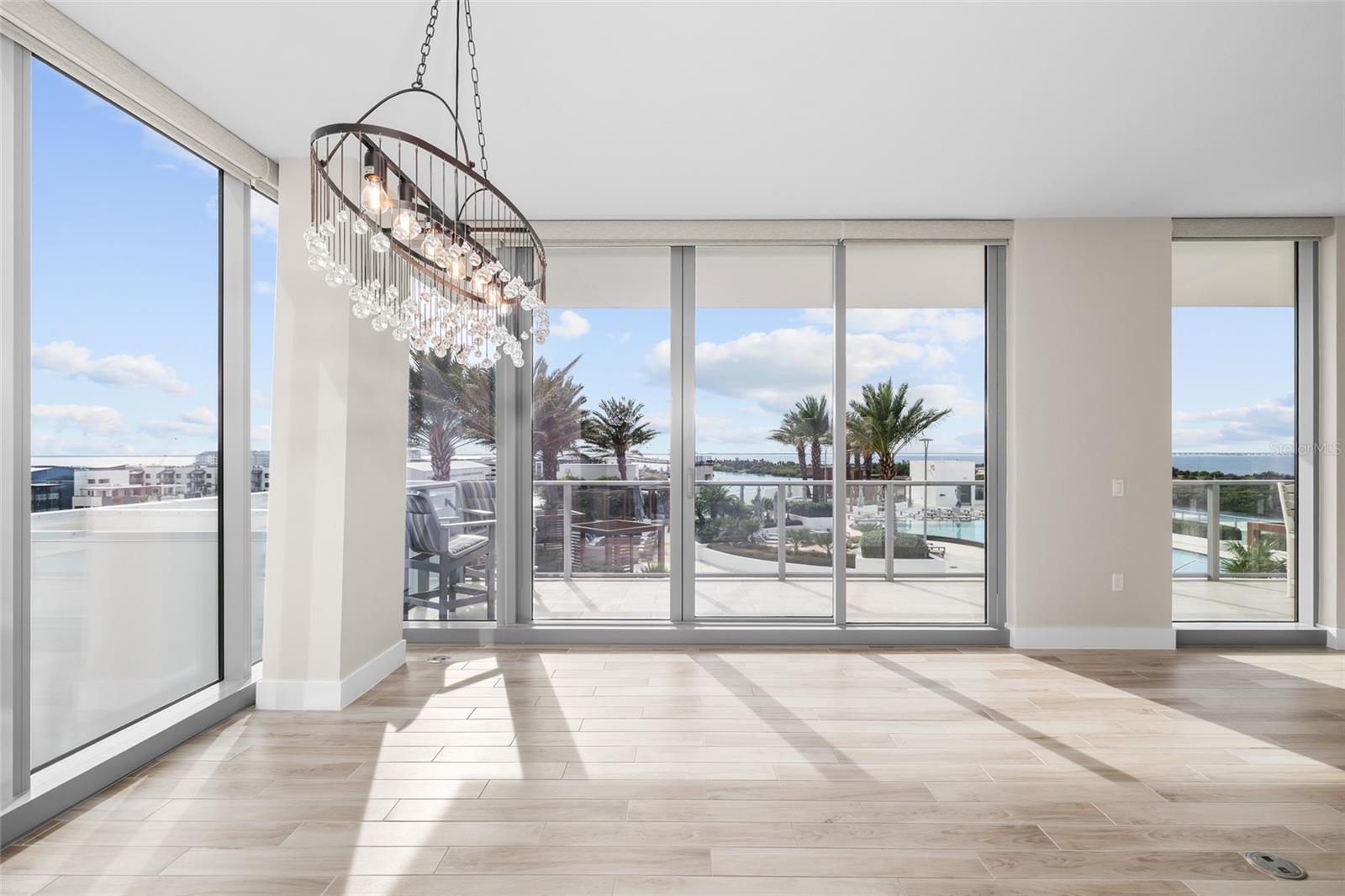 breathtaking views of Tampa Bay and the heated resort-style pool through floor-to-ceiling