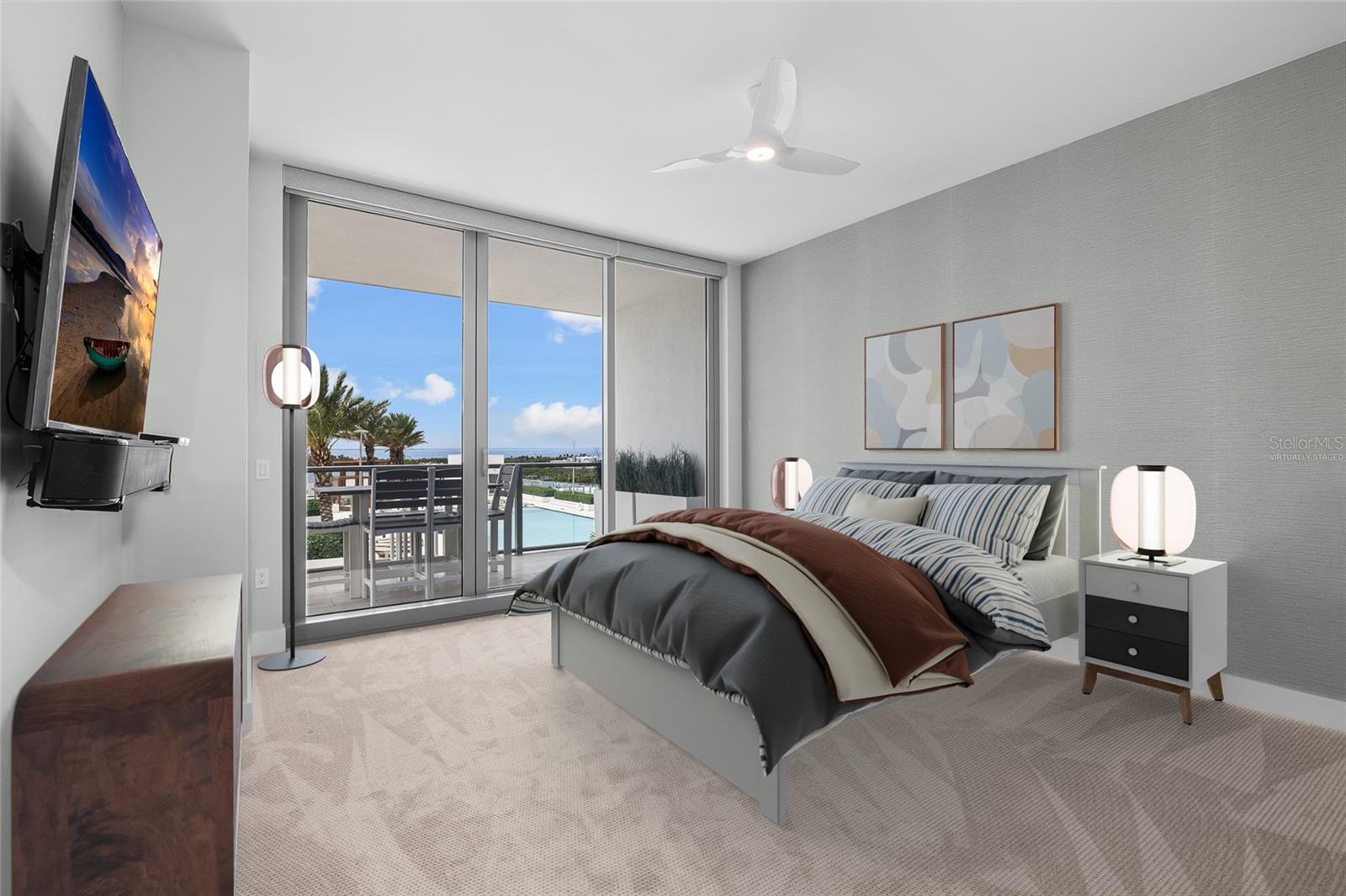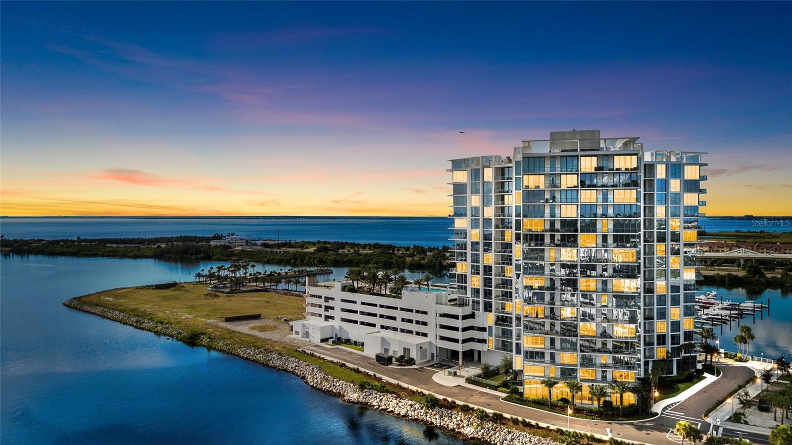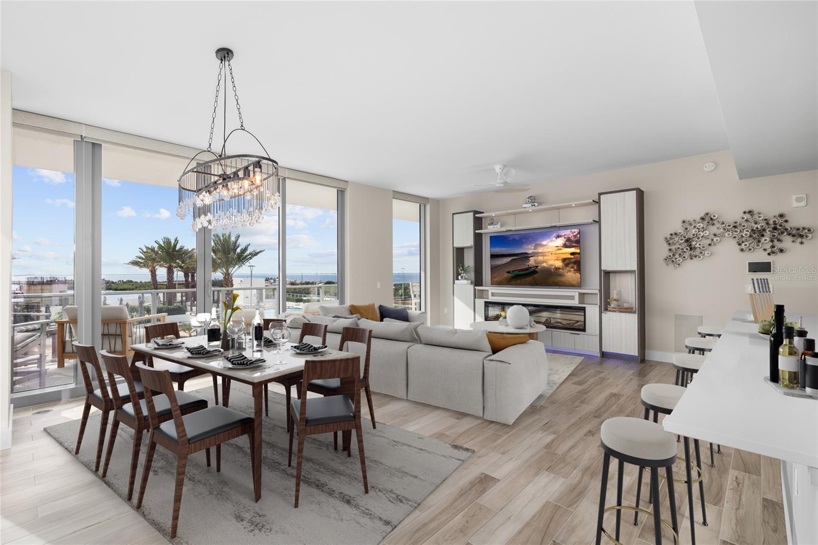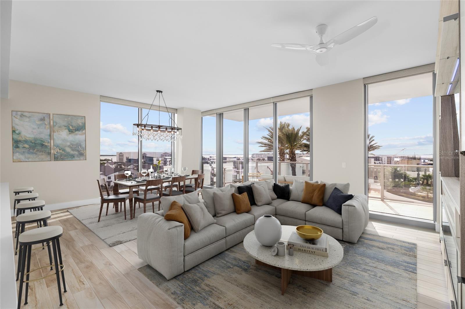 breathtaking views of Tampa Bay and the heated resort-style pool through floor-to-ceiling
