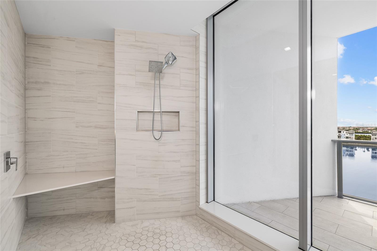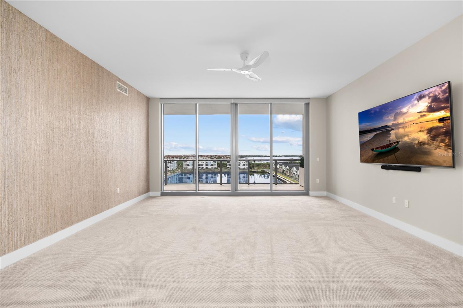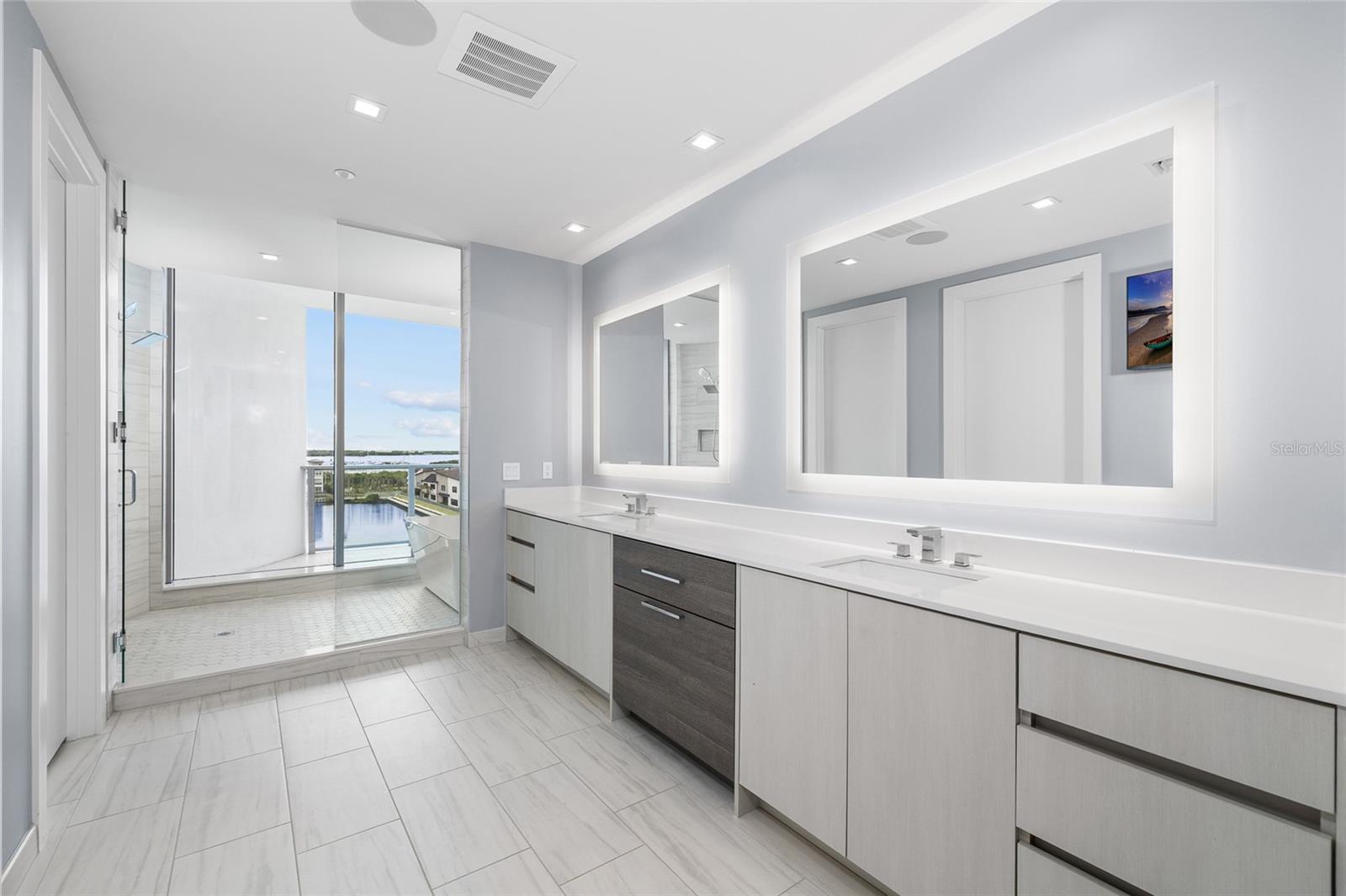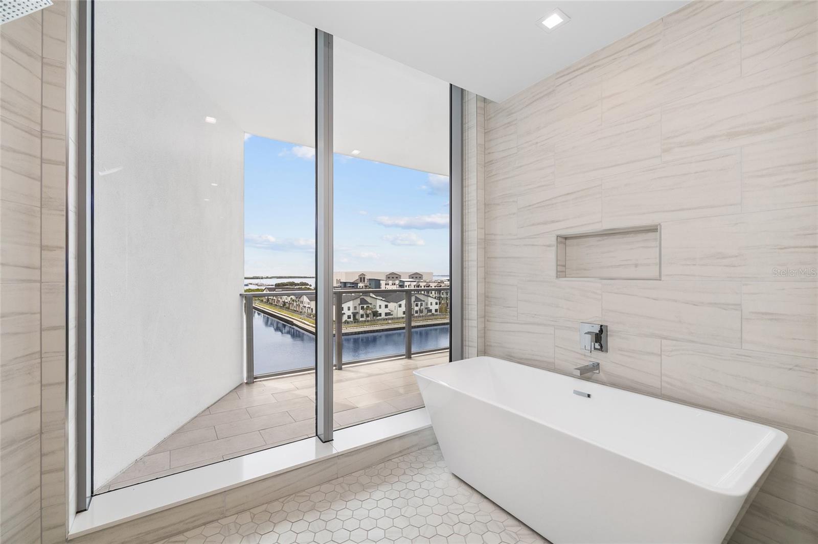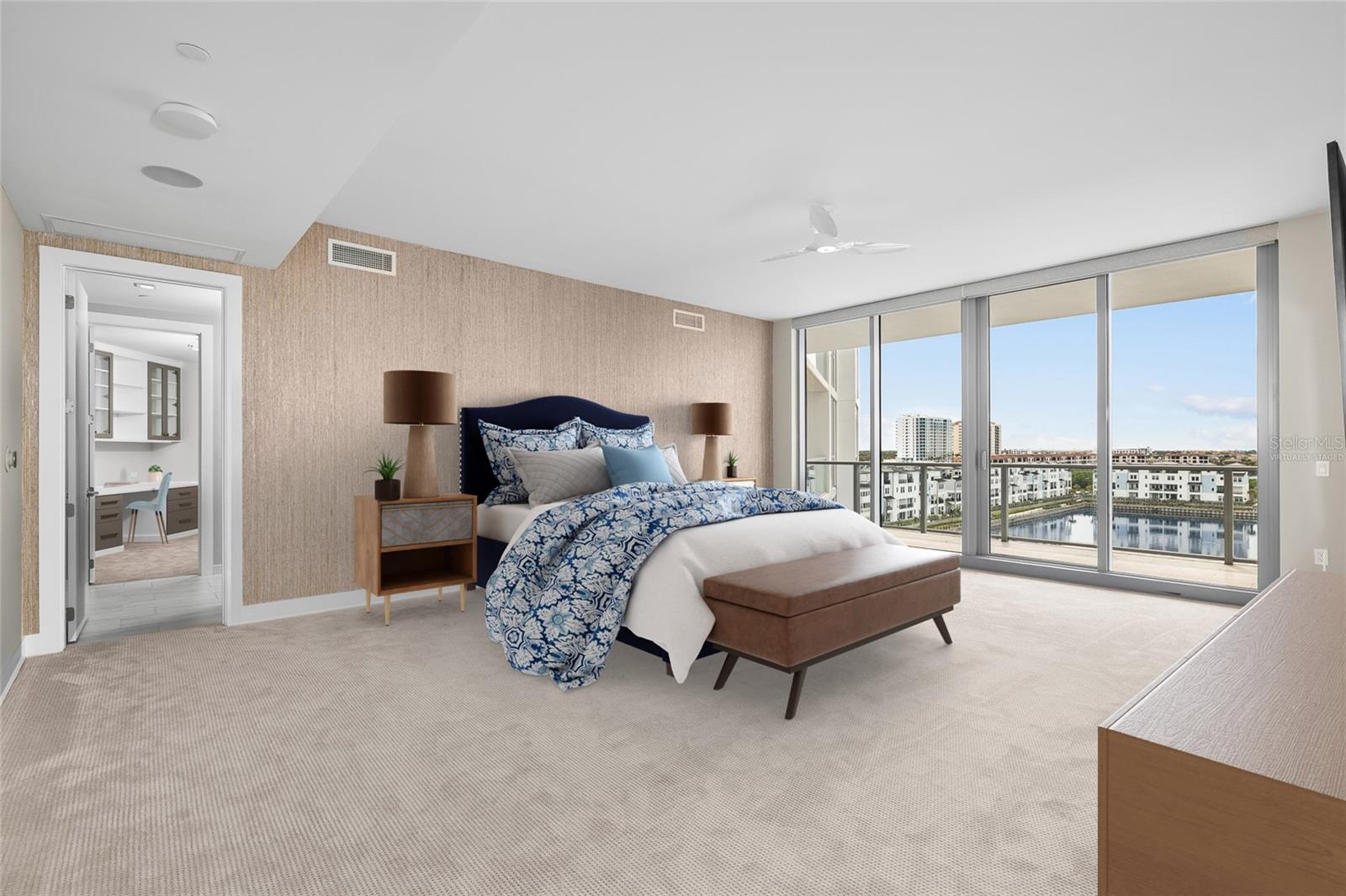 primary suite is a private sanctuary with its own water view balcony, a textured designer