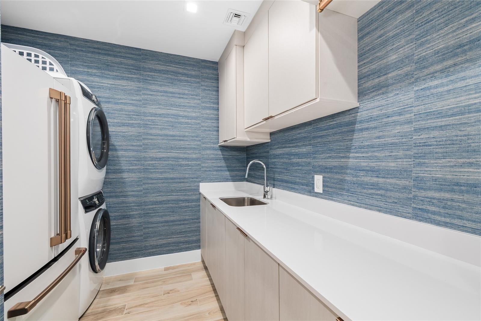 stylish Jack-and-Jill bathroom in between. A well-equipped laundry room near the entry provides