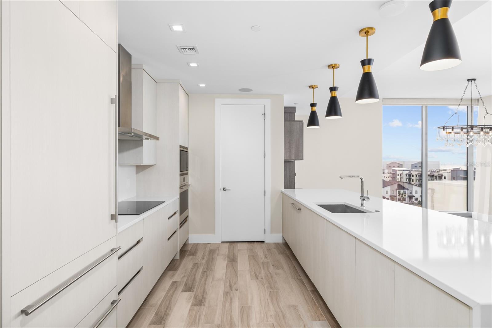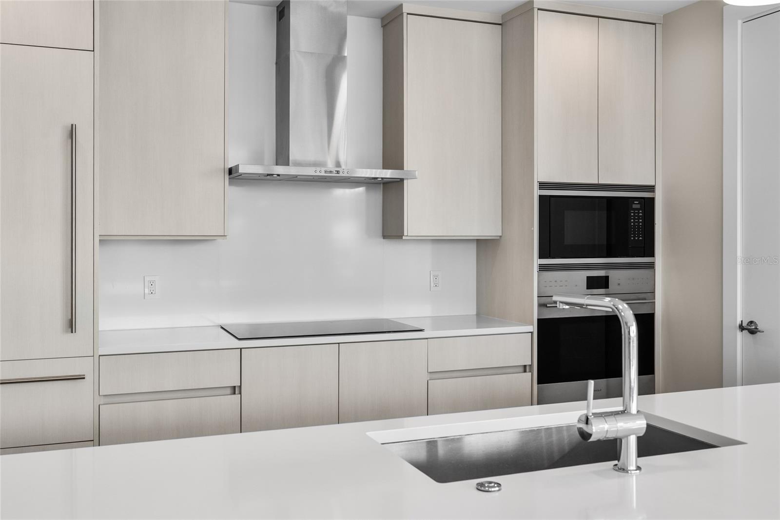tone. The chef's kitchen ties it all together with European cabinetry, quartz countertops with
