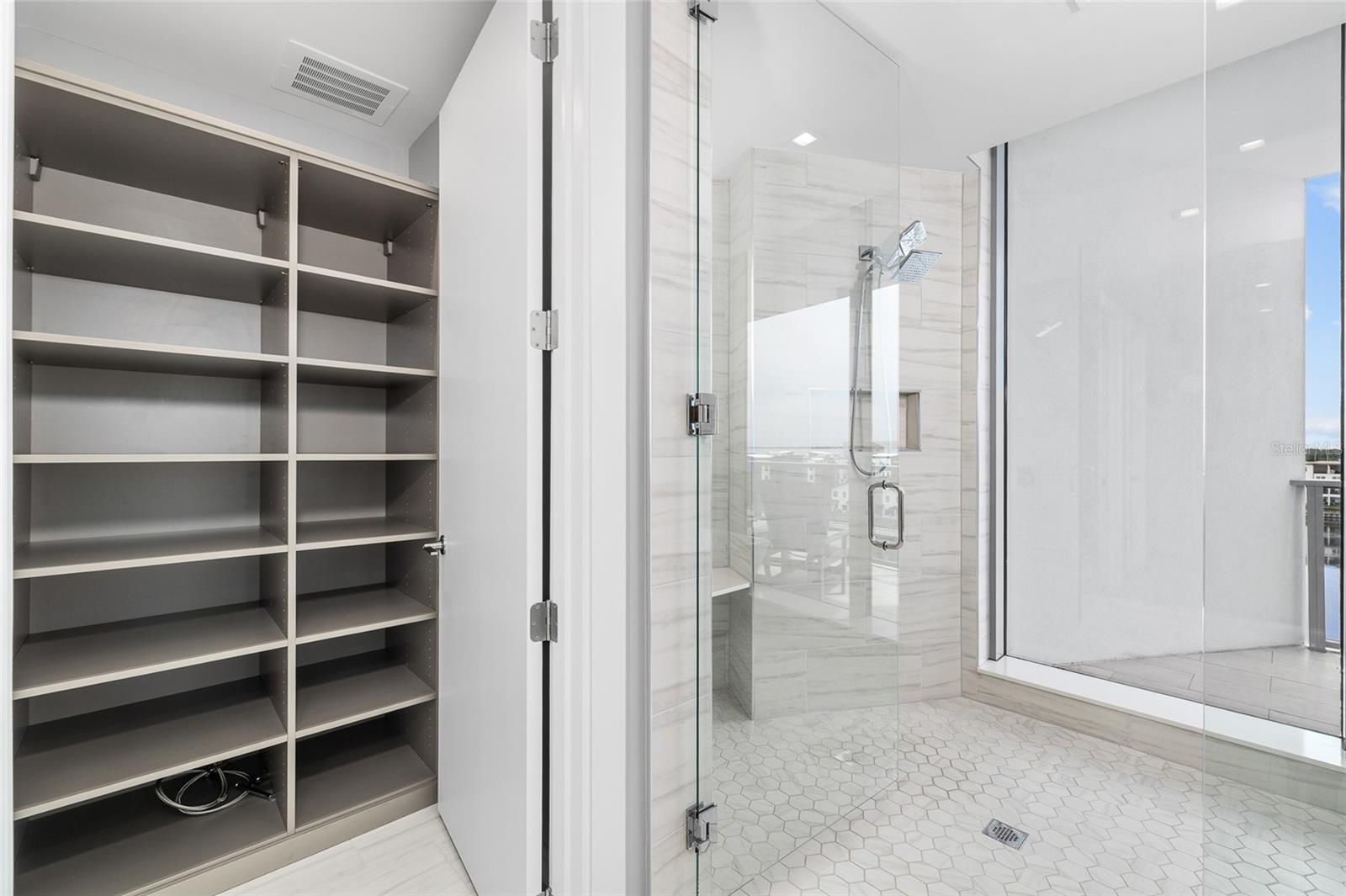 counters, a private water closet, built-in storage, and a wet room complete with a freestanding