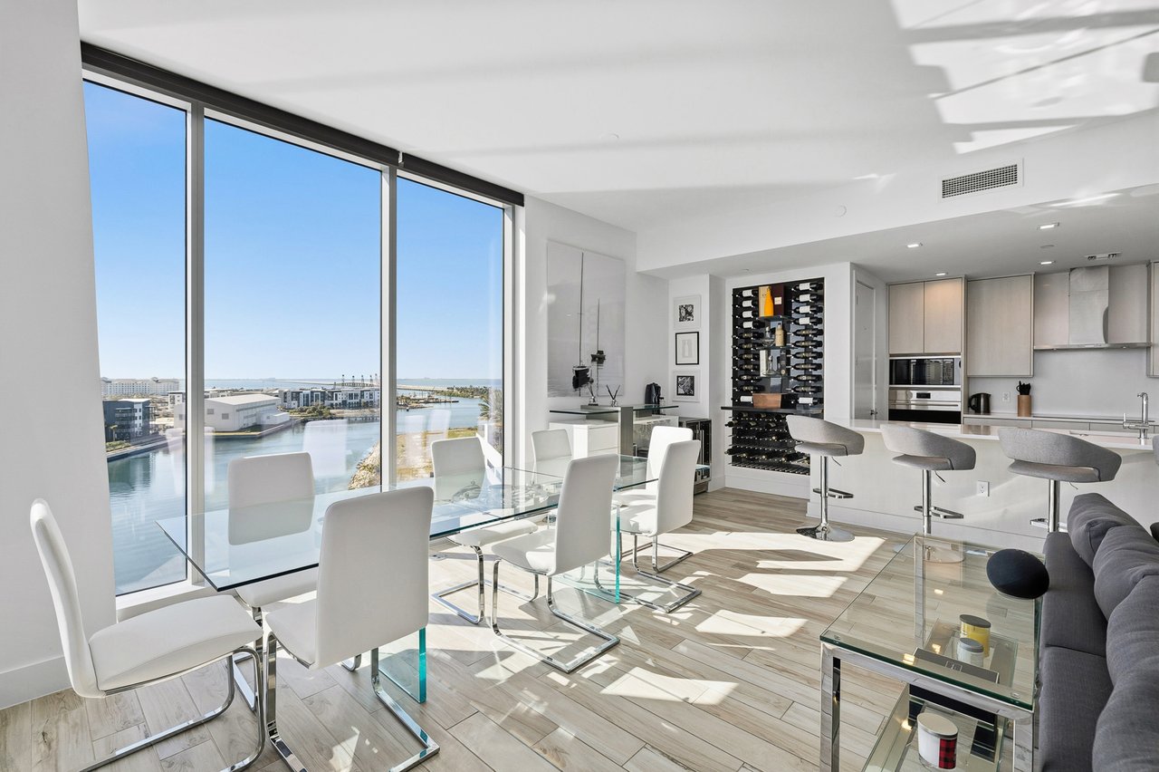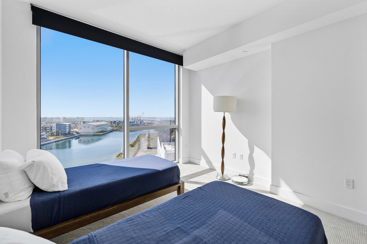 Sunlight pours across shimmering bay waters and the Tampa skyline into this 8th-floor, 4 bedroom, 3.5 bath Marina Pointe residence, where every room frames the bay and every balcony invites you outdoors with breathtaking views that will never be obstructed. Enter into a 24-hour staffed lobby that leads to the elevator sending you up 8 floors to the light and bright private foyer. Inside, the living room, dining room, and kitchen flow together seamlessly, with floor-to-ceiling, hurricane-rated windows keeping the water at the center of daily life. One of this unit’s two terraces is off the living room, creating an effortless space for morning coffee, sunset cocktails, or dining alfresco. This chef’s kitchen is incredibly functional and refined, featuring European cabinetry, quartz countertops, a backlit wine display, SubZero and Wolf appliances, and a pantry with added shelving, a space that serves everyday living while remaining strikingly elegant for guests. A convenient half bathroom sits in the hallway for visitors, keeping sleeping quarters private. The primary suite is secluded at the rear of the home, offering its own balcony, 2024 tile flooring, and an expansive walk-in closet with extensive custom organizers. The spa-like primary ensuite bath provides dual sinks, a vanity seat, LED-lit mirrors, two water closets (one easily converted to storage), and a wet room with a freestanding soaking tub, glass enclosure, bench, and intricate tile detailing. Bedroom two sits on the opposite end of the home, set up like an additional suite it is the perfect spot for guests! It has its own access to the main balcony, 2 spacious built-in closets, and a full ensuite bathroom with a walk-in shower. Bedrooms three and four are both comfortable sized, joined together by a full Jack-and-Jill bathroom, each offering generous storage and striking views. This unit’s value just keeps building! It also provides electric shades, closet organizers throughout, a laundry room with extra storage, 2 parking spaces, and a climate controlled storage unit! Marina Pointe elevates waterfront living with amenities that rival a resort: a heated rooftop pool overlooking the bay, a state-of-the-art fitness center, golf simulator, steam and massage rooms, social lounges, guest suites, fire pits, grilling areas, and a dedicated dog park. The community’s prime location in the Westshore Marina District places Downtown Tampa, St. Petersburg, and Tampa International Airport just minutes away. This residence is a rare opportunity to experience Tampa Bay at its finest. Schedule a private tour today to see how Marina Pointe transforms everyday life into an extraordinary waterfront experience- and for those looking to expand the Marina lifestyle even further, there is a separate 40 ft boat slip for sale. Do not miss out on this incredible opportunity!