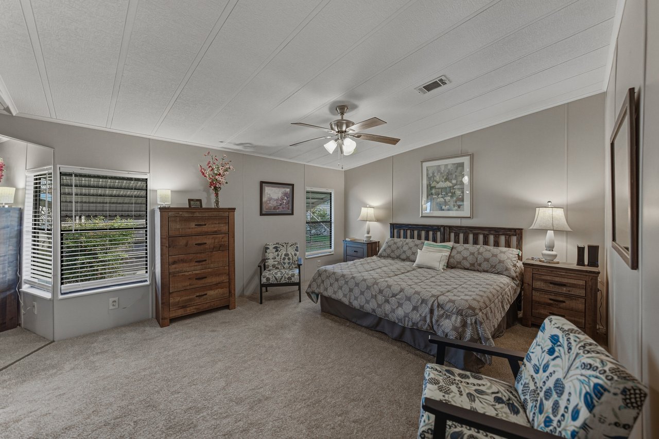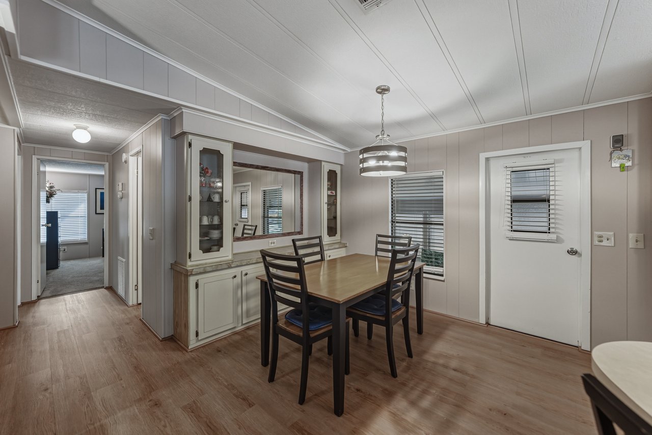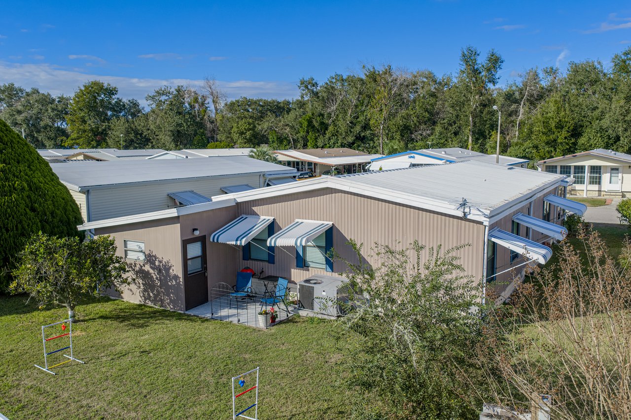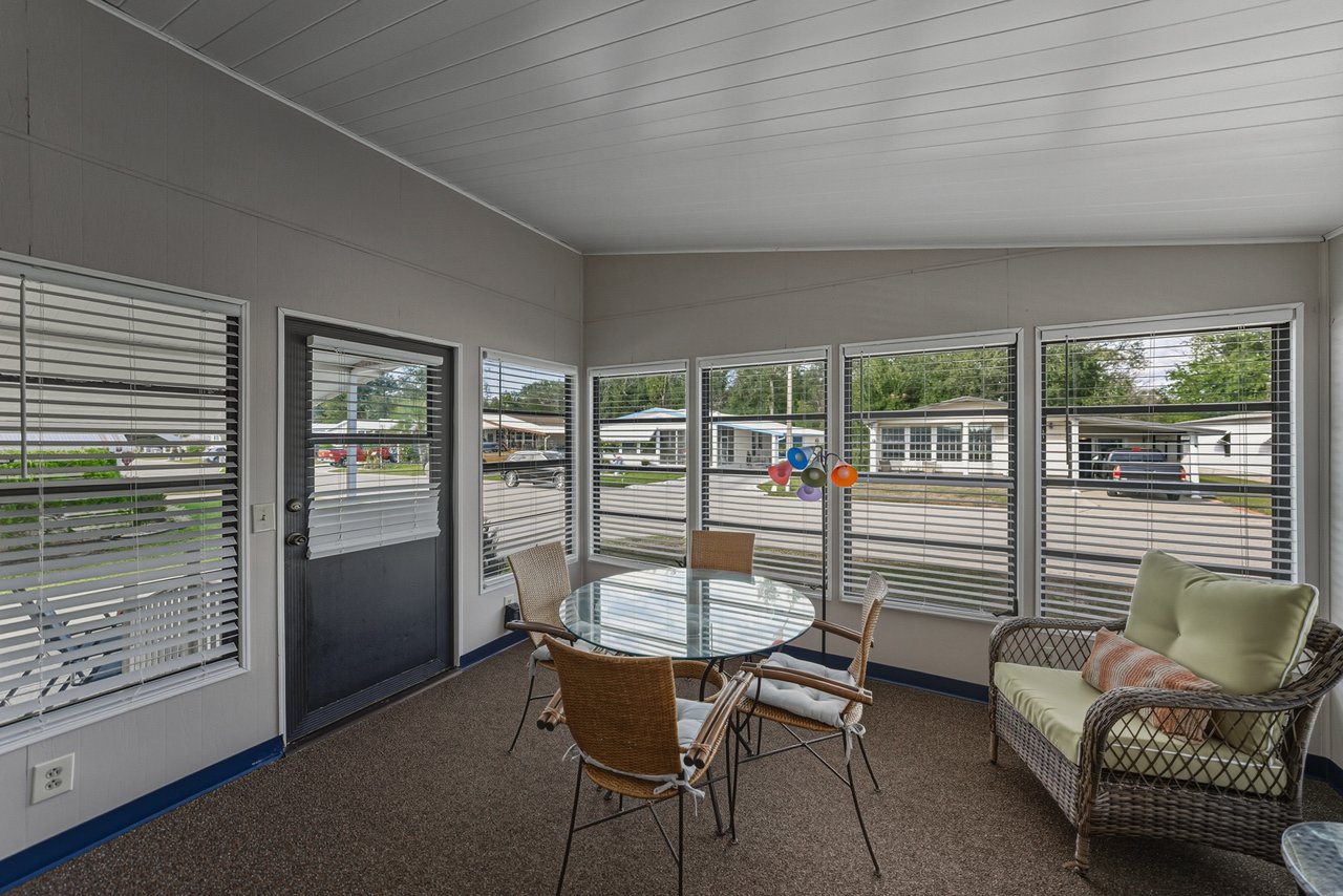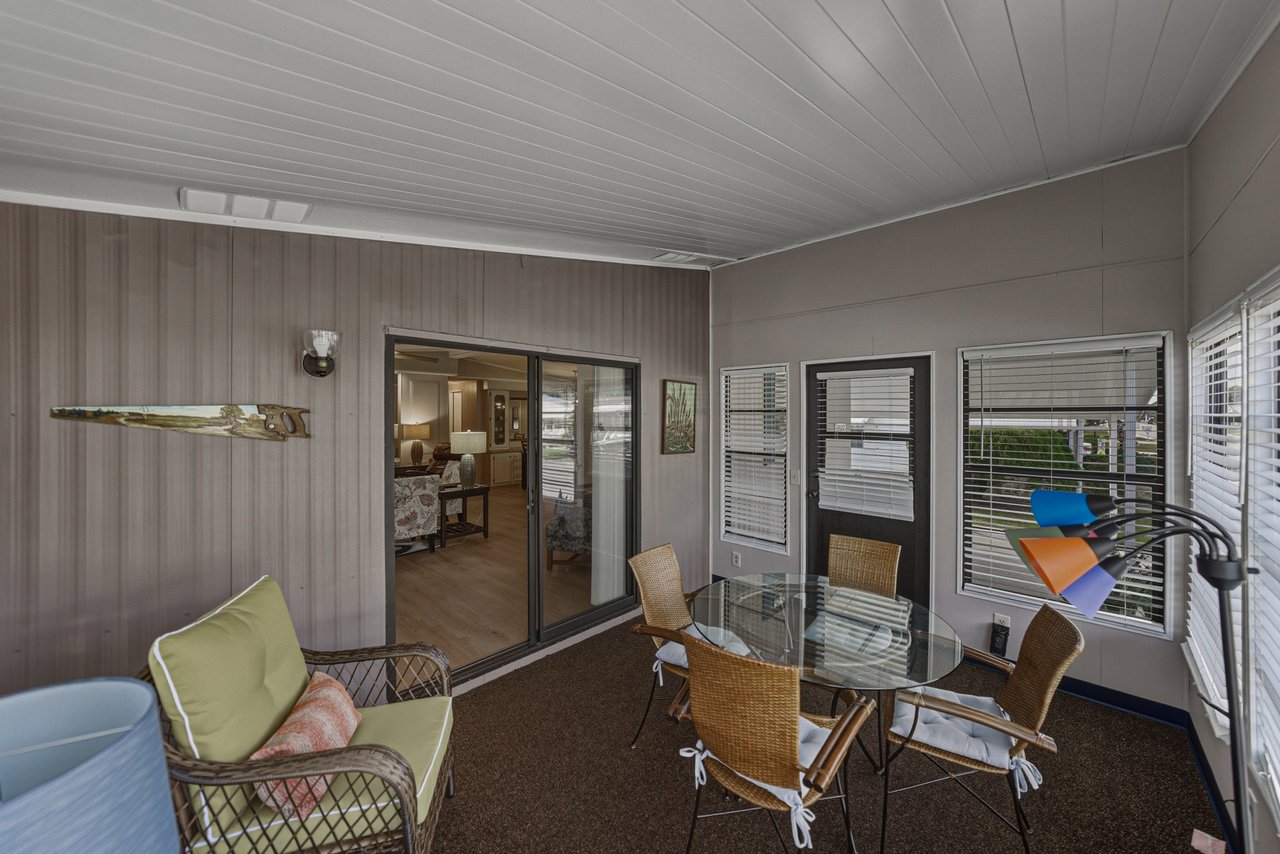 Located within the active 55+ community of Colony Hills- where you own the land, this thoughtfully updated and fully furnished home delivers a flexible layout, multiple outdoor living spaces, and true move-in-ready ease, all within a lively, amenity-rich setting. A charming exterior welcomes you with a covered front patio and two finished, enclosed porches, offering multiple ways to enjoy the Florida lifestyle before you even step inside. The interior opens to a spacious, updated floor plan where luxury vinyl plank flooring runs throughout the main living areas, paired with plush carpeting in the bedrooms. The home comes complete with over $15,000 in furnishings, allowing you to settle in without the extra work or expense. The generous living room features a ceiling fan, sliding doors leading to the Florida room, and an easy transition into the dining area, complete with built-in storage and shelving that adds character and everyday practicality. Timeless and inviting, the eat-in kitchen anchors the space with breakfast bar seating and a four-piece stainless steel appliance package, all updated in 2021. Also in 2021, blinds were added throughout and the entire home was freshly painted inside and out, giving the space a clean, cohesive feel. Down the hallway, a built-in nook provides a flexible spot for office appliances, a buffet serving station, or additional storage. The 13x15 primary suite is happily oversized and offers a large walk-in closet, and a private ensuite bathroom with a walk-in shower. Bedroom two is also a great size. It has a walk-in closet and includes stackable beds, making it easy to adapt the room for guests as needed. A second full bathroom with a tub/shower combo sits just nearby. An enclosed side porch off the kitchen creates another inviting area for casual dining or entertaining and leads directly into the laundry room and workshop space. With multiple porches and adaptable interior rooms, this home offers a layout that adjusts easily to how you love to live and entertain! Colony Hills is a vibrant 55+ community known for its active lifestyle, featuring a clubhouse, swimming pool, shuffle board, tennis, and a full calendar of social opportunities. Its convenient location places shopping, dining, and everyday essentials just minutes away, making daily life easy and enjoyable. Schedule your showing today for an in-person look at this wonderful opportunity!