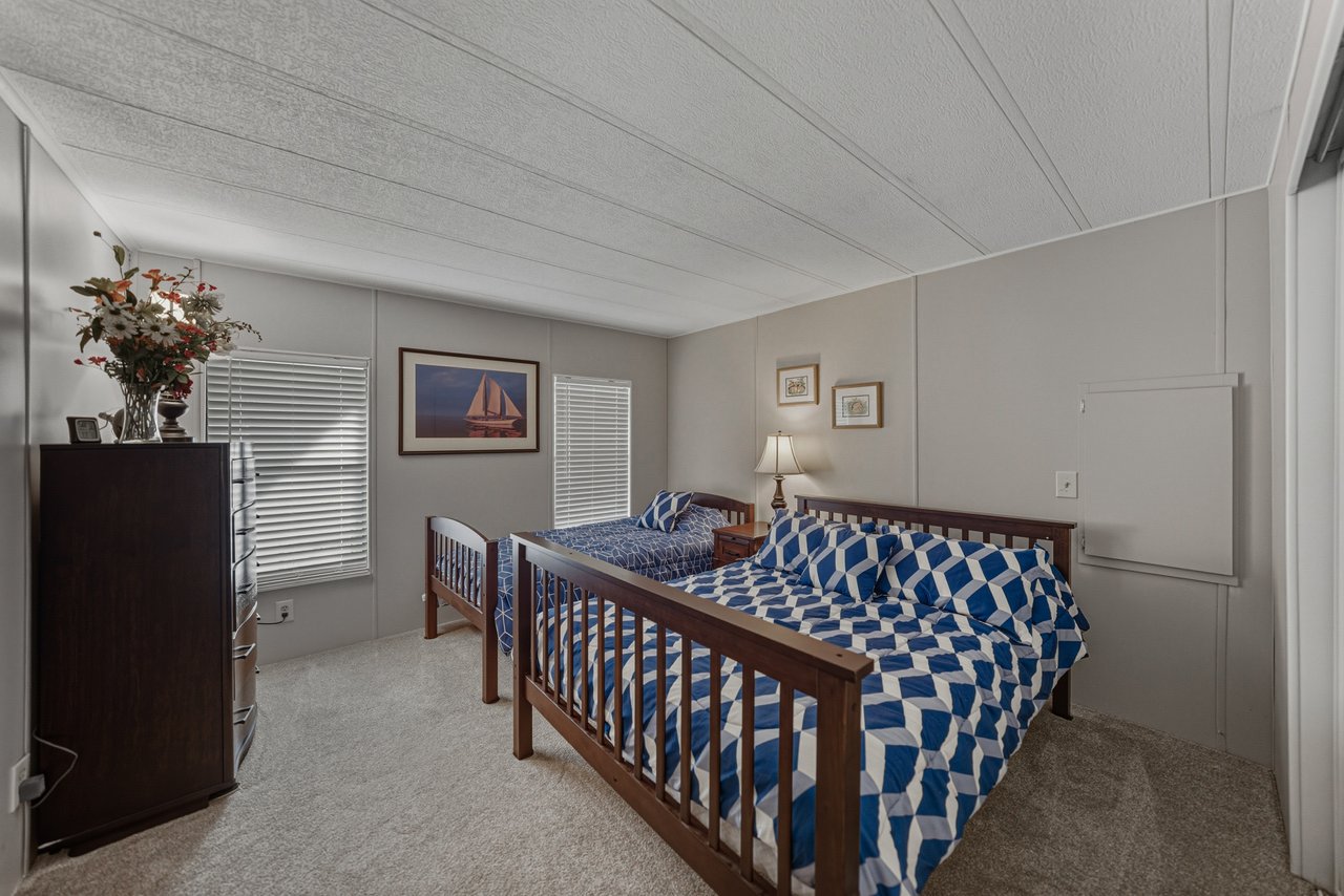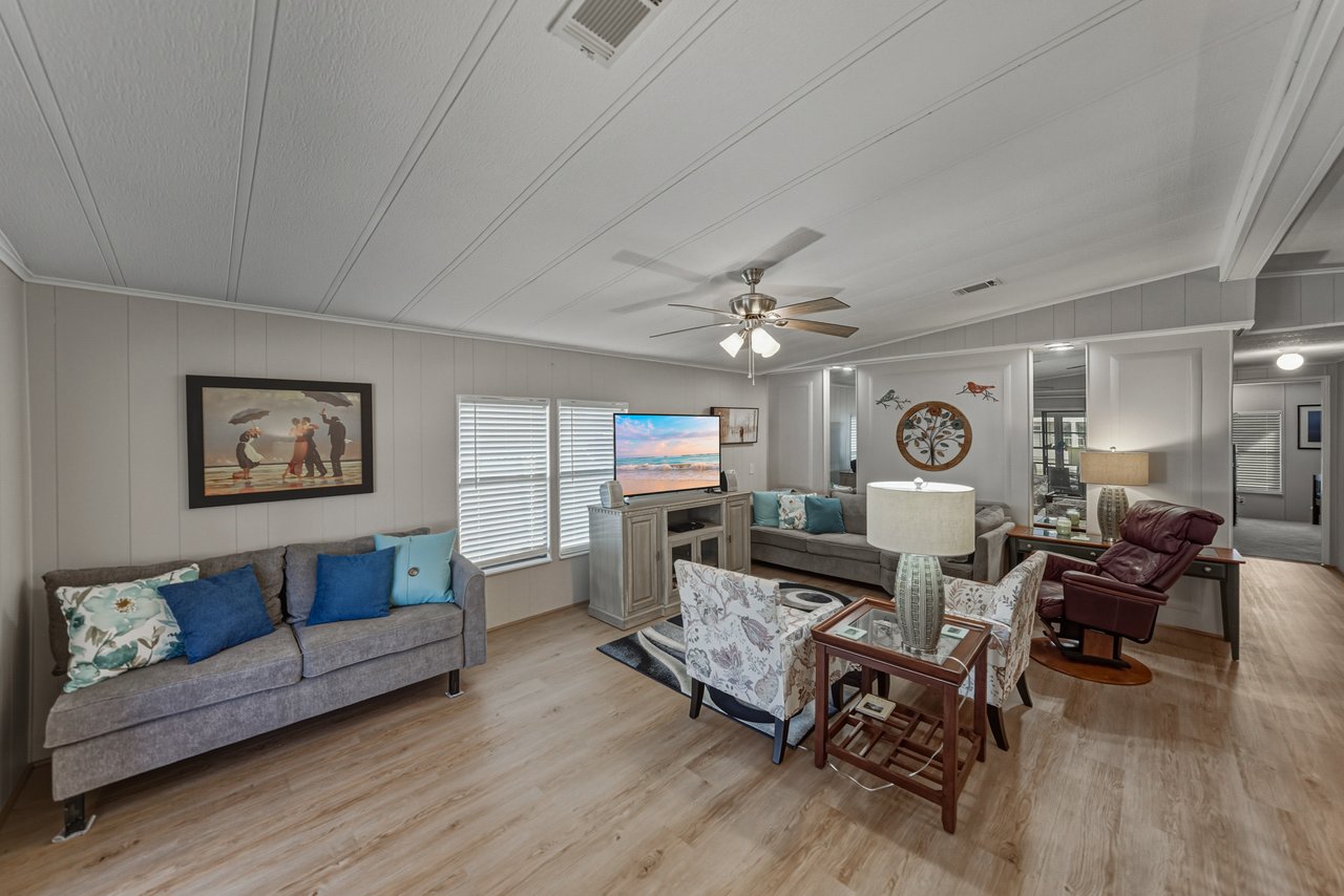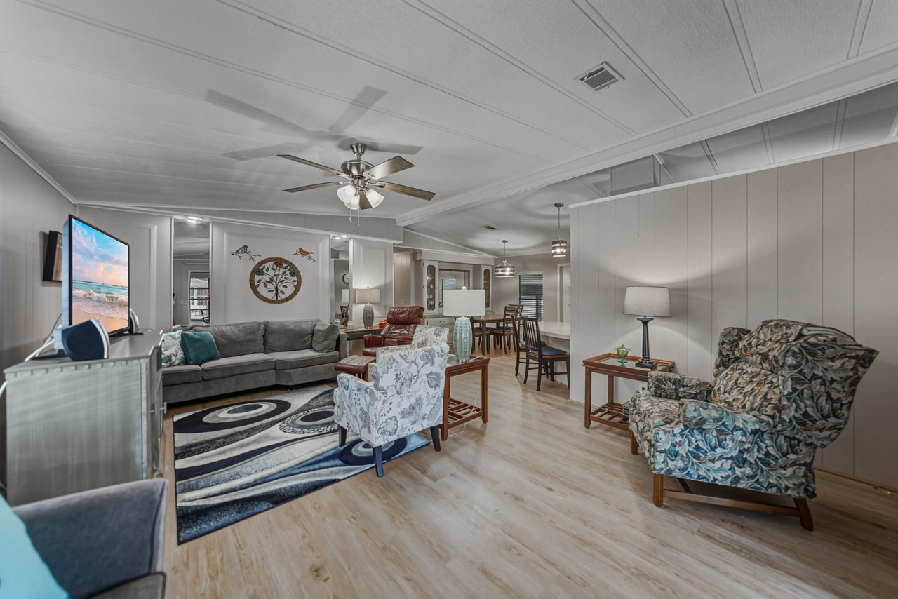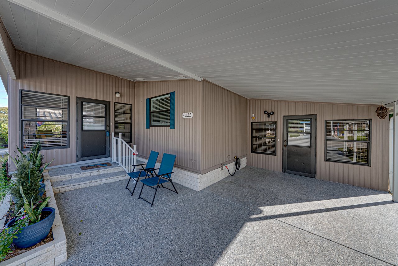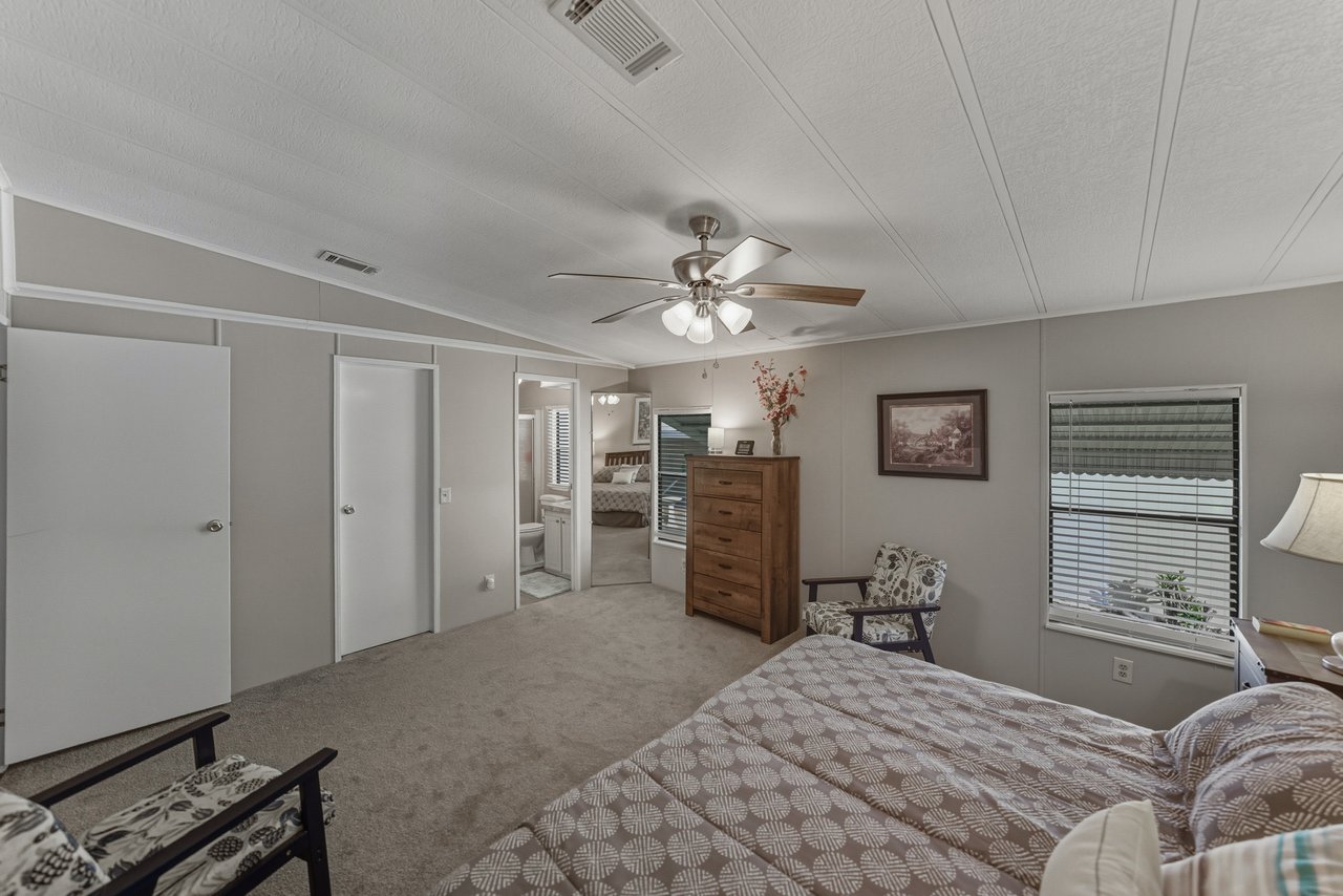 Located within the active 55+ community of Colony Hills- where you own the land, this thoughtfully updated and fully furnished home delivers a flexible layout, multiple outdoor living spaces, and true move-in-ready ease, all within a lively, amenity-rich setting. A charming exterior welcomes you with a covered front patio and two finished, enclosed porches, offering multiple ways to enjoy the Florida lifestyle before you even step inside. The interior opens to a spacious, updated floor plan where luxury vinyl plank flooring runs throughout the main living areas, paired with plush carpeting in the bedrooms. The home comes complete with over $15,000 in furnishings, allowing you to settle in without the extra work or expense. The generous living room features a ceiling fan, sliding doors leading to the Florida room, and an easy transition into the dining area, complete with built-in storage and shelving that adds character and everyday practicality. Timeless and inviting, the eat-in kitchen anchors the space with breakfast bar seating and a four-piece stainless steel appliance package, all updated in 2021. Also in 2021, blinds were added throughout and the entire home was freshly painted inside and out, giving the space a clean, cohesive feel. Down the hallway, a built-in nook provides a flexible spot for office appliances, a buffet serving station, or additional storage. The 13x15 primary suite is happily oversized and offers a large walk-in closet, and a private ensuite bathroom with a walk-in shower. Bedroom two is also a great size. It has a walk-in closet and includes stackable beds, making it easy to adapt the room for guests as needed. A second full bathroom with a tub/shower combo sits just nearby. An enclosed side porch off the kitchen creates another inviting area for casual dining or entertaining and leads directly into the laundry room and workshop space. With multiple porches and adaptable interior rooms, this home offers a layout that adjusts easily to how you love to live and entertain! Colony Hills is a vibrant 55+ community known for its active lifestyle, featuring a clubhouse, swimming pool, shuffle board, tennis, and a full calendar of social opportunities. Its convenient location places shopping, dining, and everyday essentials just minutes away, making daily life easy and enjoyable. Schedule your showing today for an in-person look at this wonderful opportunity!