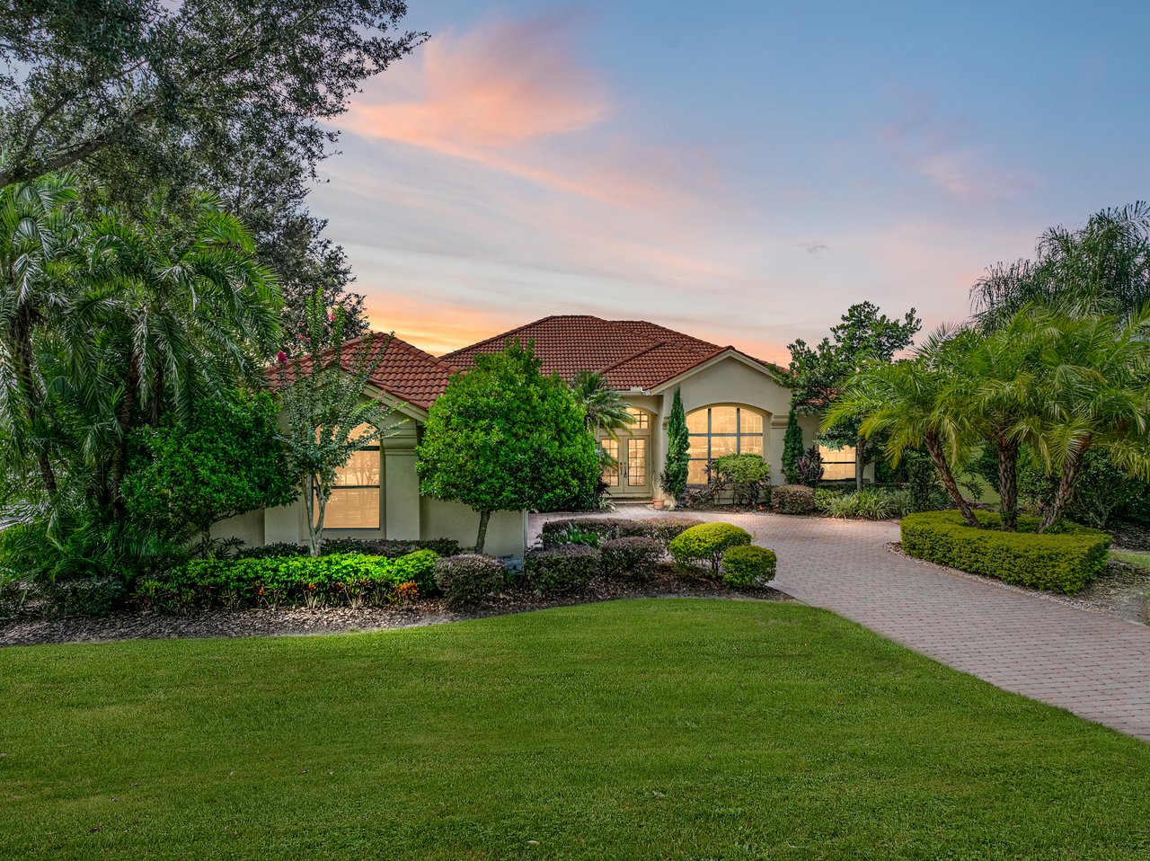 Nestled within the gates of the desirable Lake Jovita community, this immaculate 3 bedroom, 3 bath, 3 car garage MARC MACONI home offers beautiful golf course views and stunning, carefully maintained landscaping. Step inside the entryway with custom double doors, pillar features, and a spacious living room that offers crown molding; a built-in feature wall; a tray ceiling; and golf course views through triple sliding doors. The kitchen is adorned with intricate details and a layout designed for entertaining! It features a built-in double oven, cooktop, dishwasher, refrigerator, microwave, granite countertops, pantry, wood cabinetry, a dry bar, and ample storage space. Choose from one of three dining spaces, including a formal dining room, a breakfast bar, and an intimate eat-in dinette. The primary bedroom is split away from the others for privacy, and it provides access to the lanai. with walk-in closets ,an ensuite bathroom with a water closet, dual sinks, a jetted tub, and a walk-in shower. The other bedroom has a jack-and-jill style ensuite bathroom to be shared with guests. Bedroom 3 would be perfect for an in-law or guest suite as it offers private access to the lanai, a walk-in closet, with a full ensuite bathroom and a walk-in shower. Relax and unwind on the screened lanai, Join the many neighbors that stroll down Lake Jovita's private streets, or take advantage of the many amenities this community provides. Lake Jovita is a gated community with a playground, park, pickleball courts, dog run, and walking trails. Optional membership packages include access to 2 Championship 18-hole golf courses, a Junior Olympic-size pool, tennis courts, a clubhouse, a restaurant, a fitness center, a pro shop, and more. Call us today for your private tour!