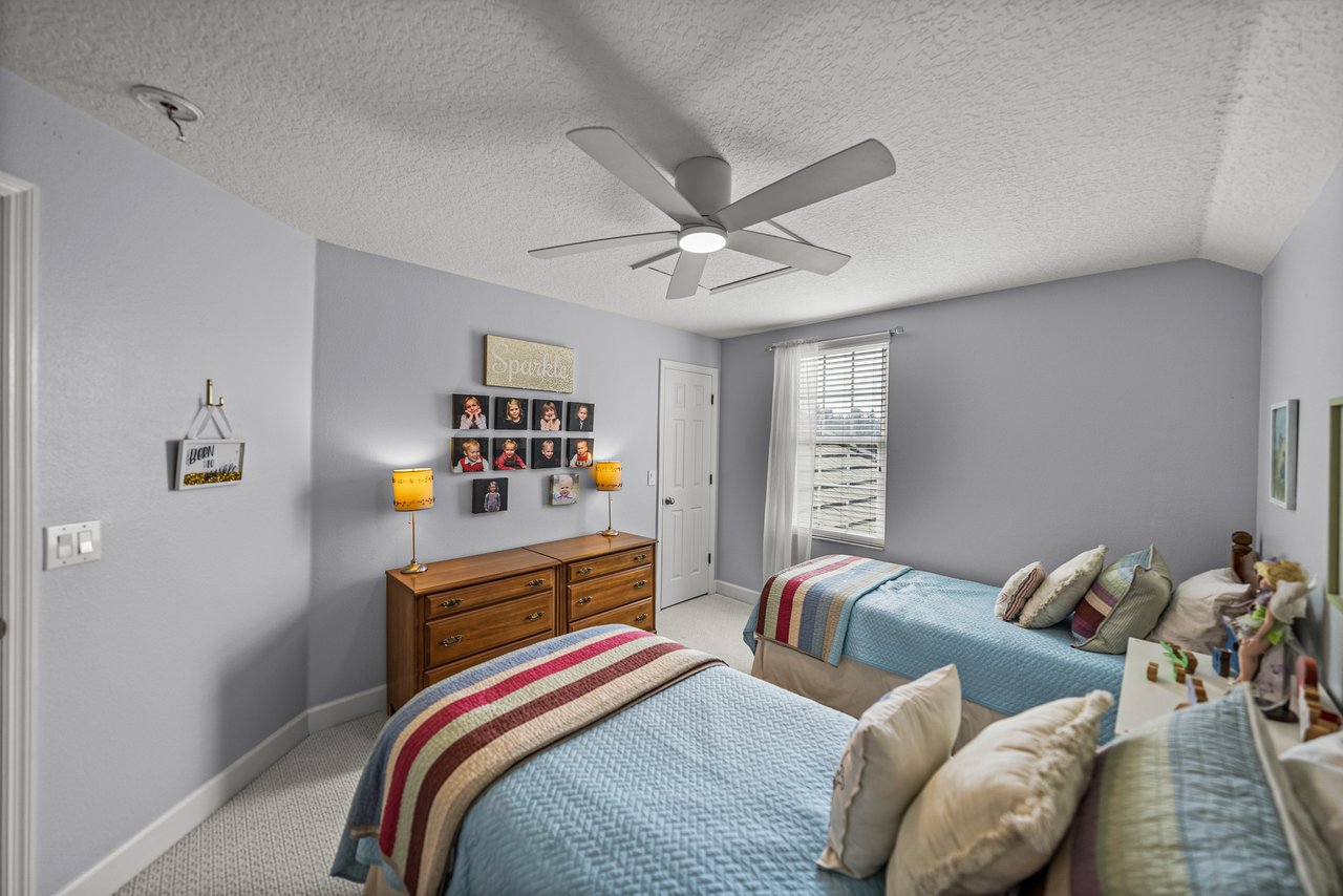 Peacefully situated within the low-maintenance section of The Heathers at Lake Jovita, this 4 bedroom, 3 bathroom, 2 story home offers inviting curb appeal framed by lush landscaping and sidewalk-lined streets. Inside, a light-filled formal living and dining area creates an immediate sense of charm with built-in bookshelves, cabinetry, crown molding, and an adorable window seat that makes the perfect reading nook. Tile flooring runs throughout the first floor for a seamless, elevated feel that flows easily into the family room. Designed for everyday living and effortless entertaining, the family room opens naturally to the eat-in kitchen and to the expansive screened paver lanai through sliding glass doors. The kitchen has been nicely updated and offers granite countertops with breakfast bar seating, stainless steel appliances, a generous pantry, and a cozy dinette for casual meals. Owners will appreciate the peace of mind and fresh aesthetic of newer windows and sliding doors under warranty, newer flooring throughout the home, and all three bathrooms having been beautifully remodeled. The first floor includes two bedrooms and two full bathrooms. The tranquil primary suite provides its own access to the lanai, spacious sleeping quarters with room for a desk nook, a large walk-in closet, and a completely reimagined ensuite featuring a walk-in shower, separate soaking tub, Quartz countertops with dual sinks, new fixtures, and a comfort-height toilet. A second first-floor bedroom sits near another fully renovated bathroom with a walk-in shower, ideal for guests. Follow the newly carpeted staircase to the second floor where two comfortable guest bedrooms, each with new ceiling fans, sit near the home’s third full bathroom with a tub/shower combo. Additional upgrades include security cameras, a Nest thermostat, LED closet lighting, and WiFi-controlled irrigation and garage access. Outdoor enjoyment comes easy on the impressive 25x40 foot screened lanai with pavers, covered seating, and a ceiling fan. It’s the perfect spot to unwind while overlooking magnolias, crepe myrtles, and the peaceful surroundings this community is known for. Residents of The Heathers enjoy a maintenance-free lifestyle with services that include lawn and landscaping care, tree trimming, roof and exterior cleaning, basic cable service through Spectrum, and periodic exterior painting. Lake Jovita itself offers a gated, resort-style setting with amenities such as parks, a playground, dog park, and sports courts for pickleball and basketball. Optional memberships open the door to two championship golf courses, world-class Har-Tru clay tennis courts, a Junior Olympic-size pool, a fitness center, and clubhouse dining. Give us a call today to schedule your private tour of this sensational property.
