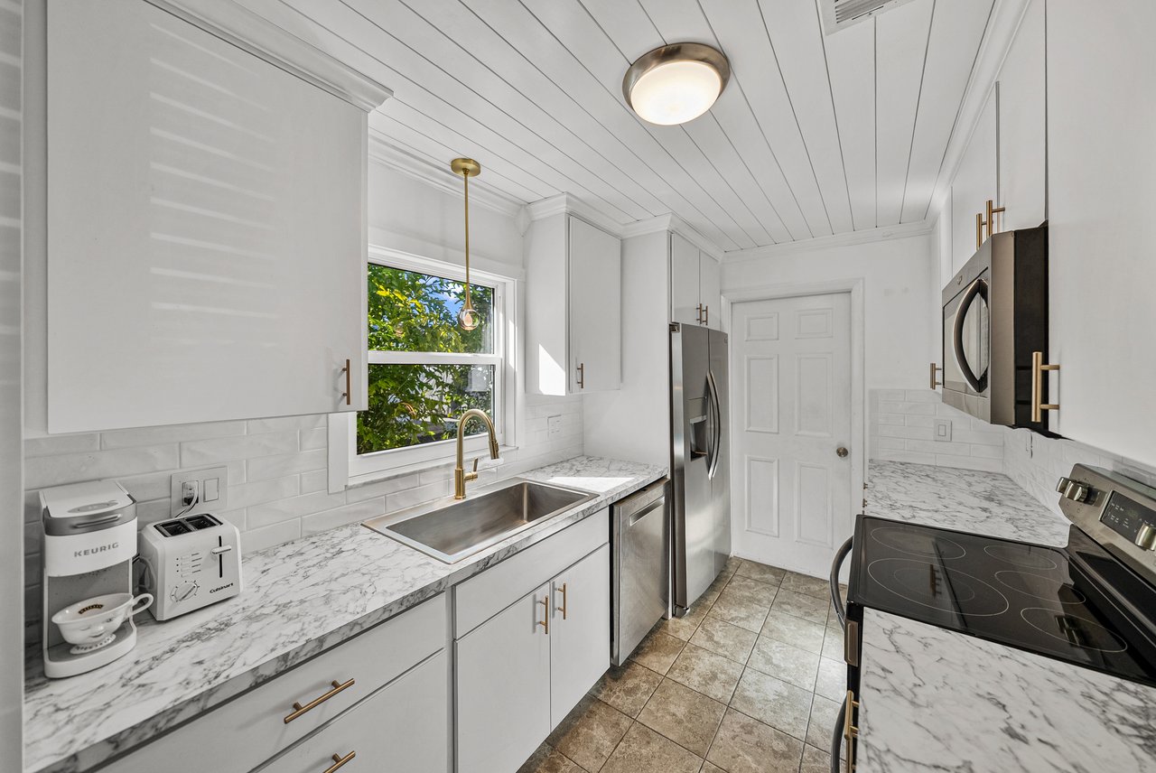 central living space its signature character. The kitchen, refreshed in 2023, features a stainless
