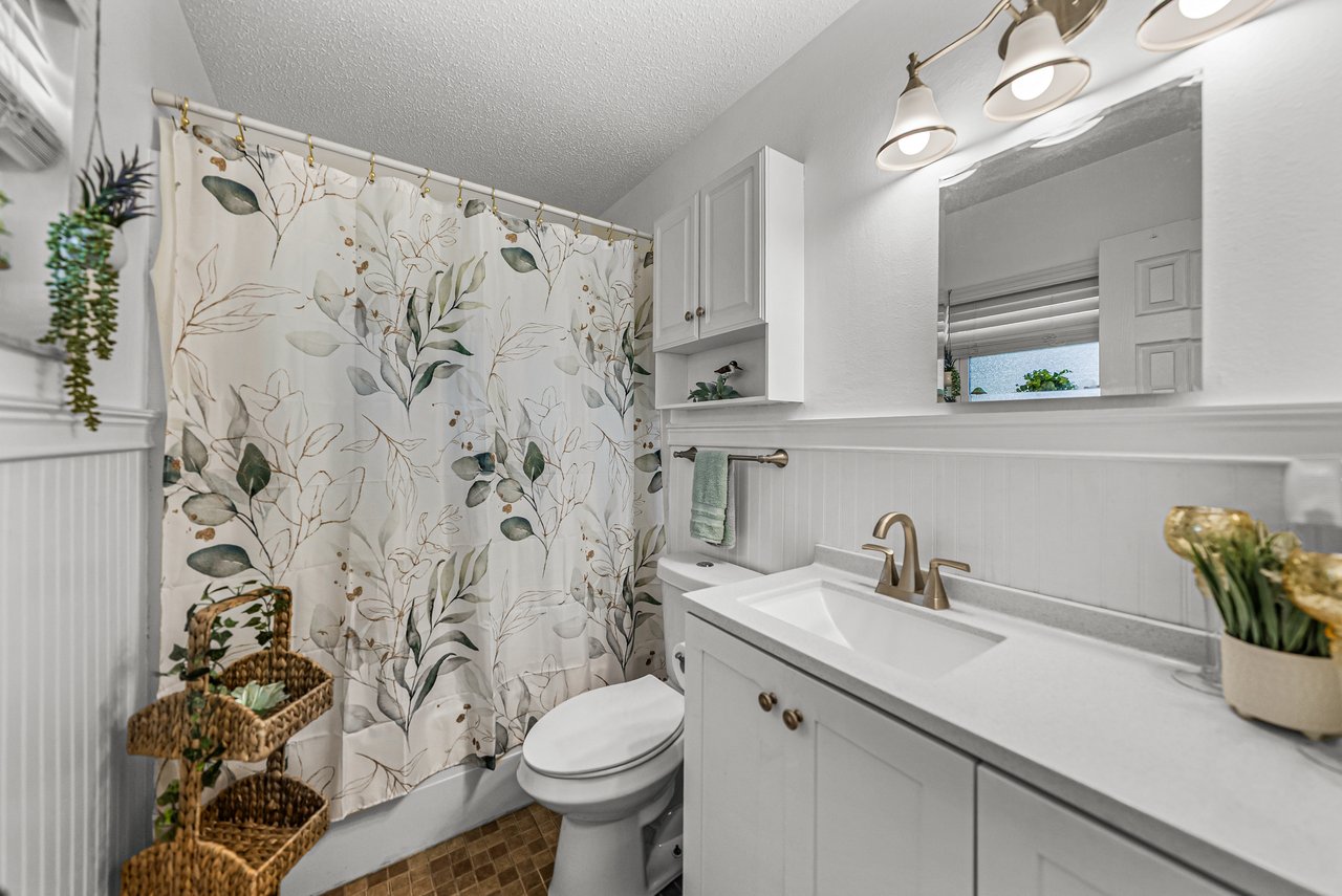 an updated vanity, wainscoting, and a tub/shower combo. Across the home, the secondary