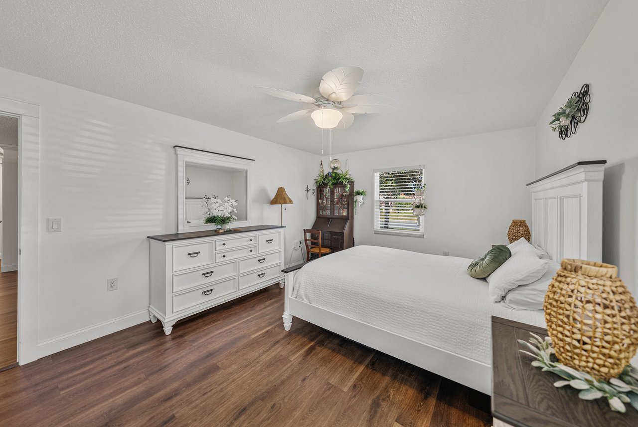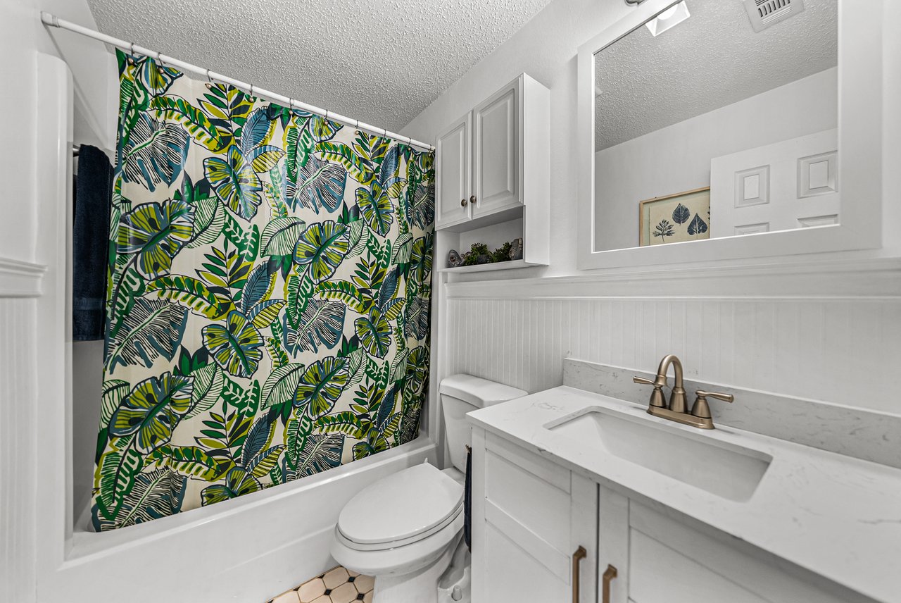 bedroom sits near a second full bath, also updated and featuring a tub/shower combo. The