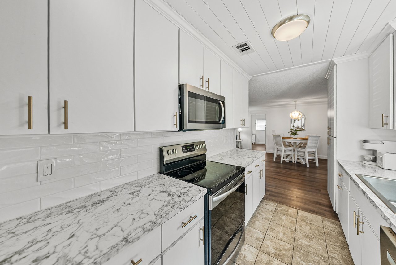 steel appliance package, upgraded countertops, a classic backsplash, and upgraded hardware that