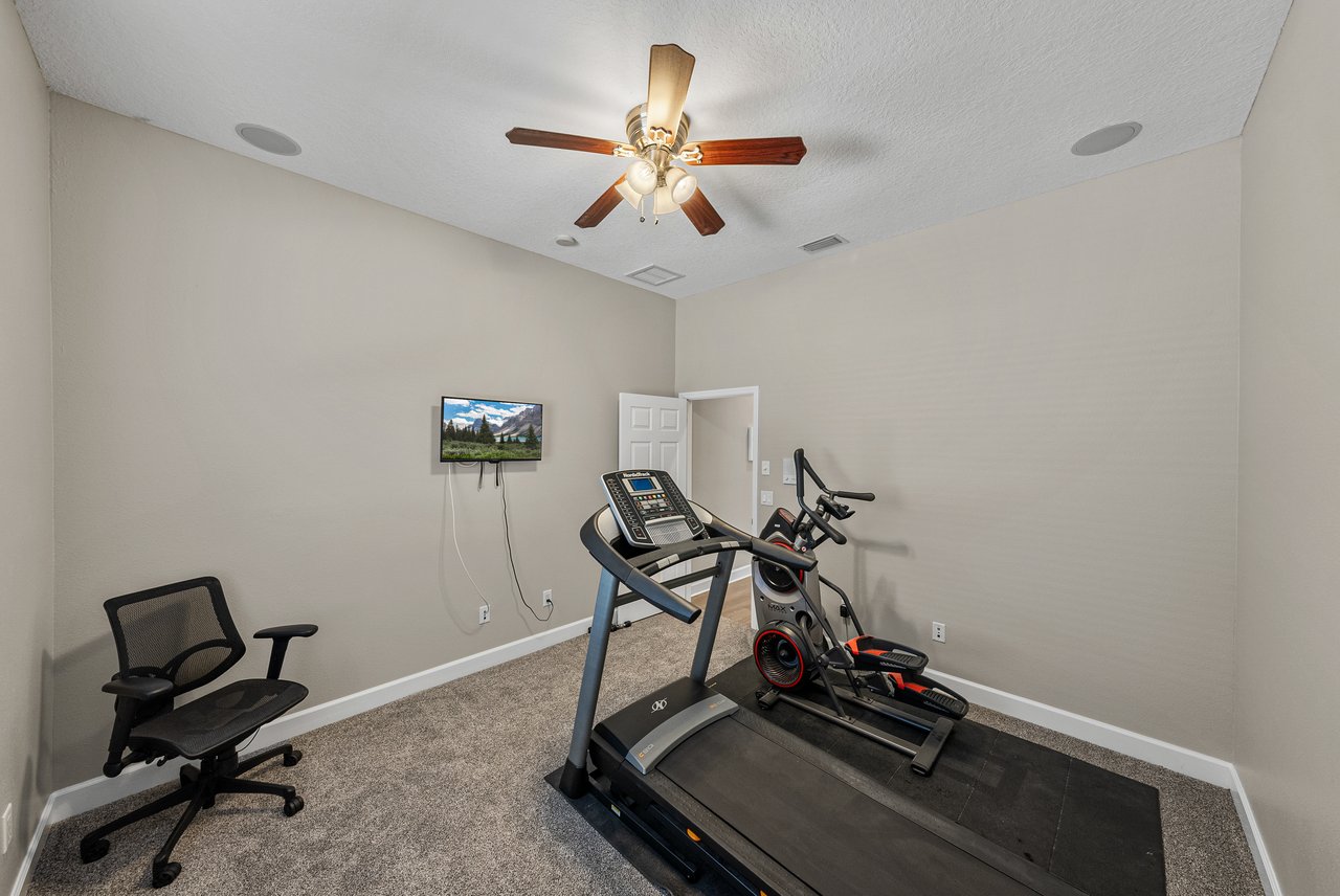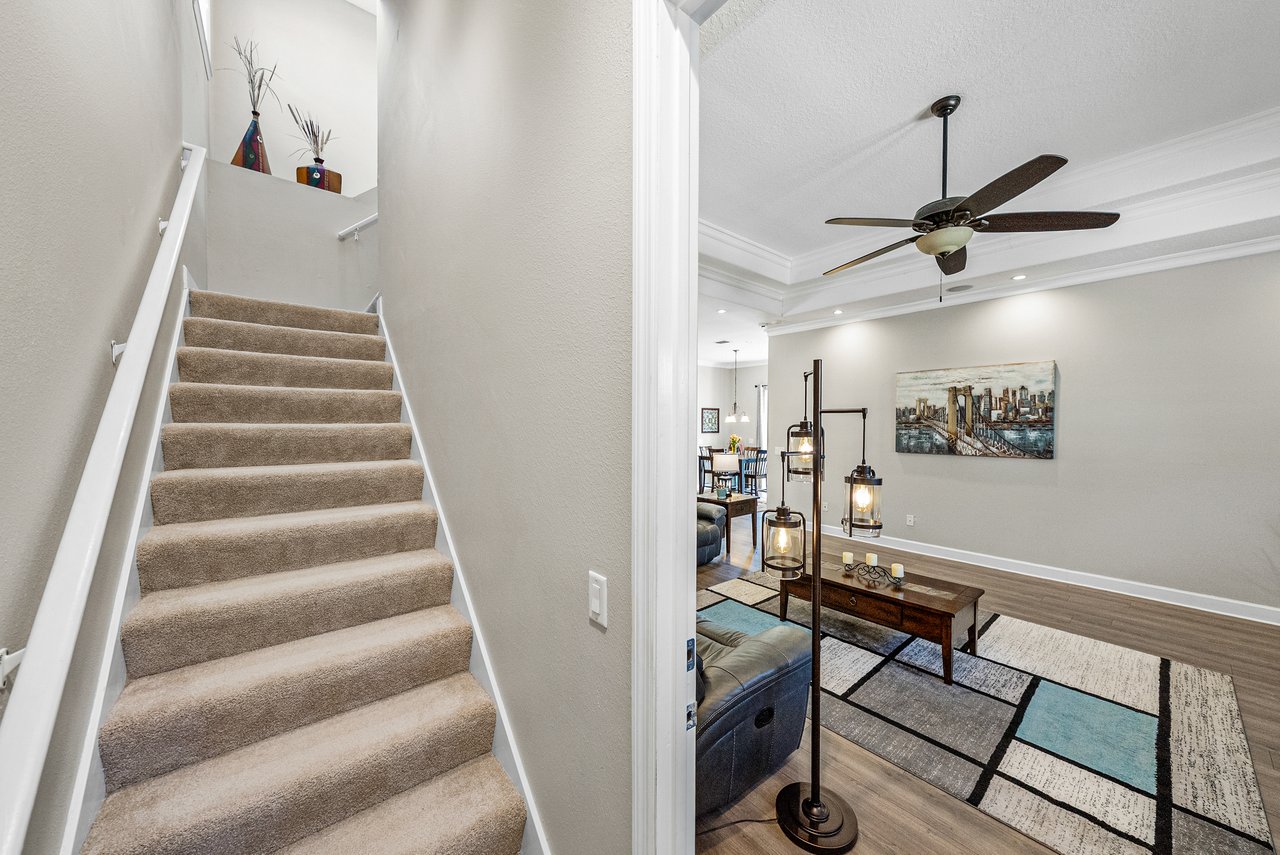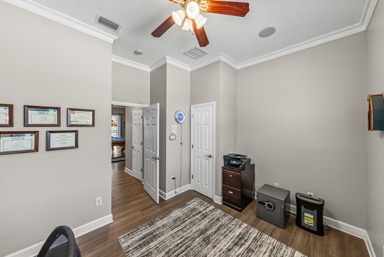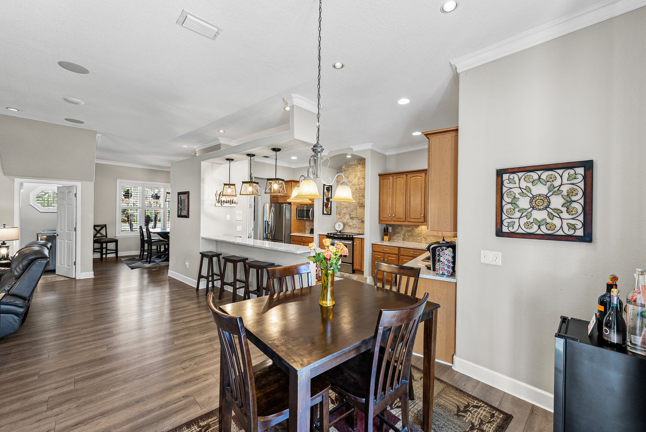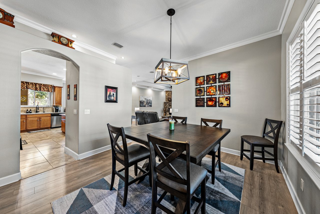 There's a certain ease to life when you have room to live it, and this Wesley Chapel 4 bedroom, 3.5 bath, 2 story home set on a full acre of land delivers that rare sense of openness from the moment you arrive. Shaded by mature trees and paired with an extended driveway, welcoming front porch, and a 2024 roof, the property sets the tone for a home designed to live big both inside and out. It offers not one but two major garage spaces: an attached 3 car garage plus an impressive 35' x 50' detached metal building with a 12' x 16' motorized door and lofted storage. Whether you collect cars, run a workshop, or simply crave room to create, it's all right here. Inside, a flexible, sprawling layout unfolds across the main level. The family room sets a warm tone with its stone-accented gas fireplace, tray ceilings, crown molding, luxury vinyl plank flooring, and seamless connection to the gourmet kitchen and dinette. The kitchen stands out as the centerpiece, an expansive culinary space with abundant cabinet storage, quartz countertops, breakfast bar seating under pendant lighting, a walk-in pantry, stainless steel appliances, a pot filler above the range, a reverse osmosis system at the sink, and an inviting eat-in dinette. Whether hosting gatherings or enjoying laid-back mornings, the setup creates effortless functionality wrapped in luxury. More intimate spaces sit nearby, including a formal dining room and a formal living room currently used as a game room, complete with a pool table that stays with the home. Multiple sliding glass doors in these spaces recess completely and open to the screened back porch, creating a true indoor/outdoor flow. Flexibility continues upstairs, where a 675 sq ft loft spans the entire second floor. With its own full bathroom, plush carpeting, and temperature-controlled storage room, the space is ideal for a second primary suite, media retreat, or multi-generational living. All traditional bedrooms remain on the first floor in a thoughtful split plan. The primary suite offers generous proportions, plush carpet flooring, sliding doors to the screened porch, dual walk-in closets, and a peaceful ensuite bathroom featuring a walk-in shower, jetted bathtub, water closet, and dual sinks with granite countertops plus a dedicated vanity seat. Nearby, a second bedroom works beautifully as an office or nursery with easy access to the guest half bath. Across the home, bedrooms three and four each include plush carpeting, large walk-in closets, and close proximity to the home's third full bath. Every detail has been meticulously curated- from the surround sound system with speakers and individual volume controls in every room to crown molding, stone counters, upgraded flooring, and that incredible indoor/outdoor connection created by fully recessing sliders. Step outside to a screened porch overlooking a spacious yard with mature trees, a peaceful rural feel, and the expansive detached garage complete with a workbench and lofted storage. This stunning residence sits moments from local hotspots including The Krate, The Grove, Target, Tampa Premium Outlets, medical facilities including the soon-to-open Johns Hopkins Children's Hospital, local restaurants, major highways for commuter convenience, and zoning for Cypress Creek Middle and High School. Homes with this ideal blend of land, flexibility, upgrades, and location rarely come to market. Call today to experience this exceptional residence for yourself.