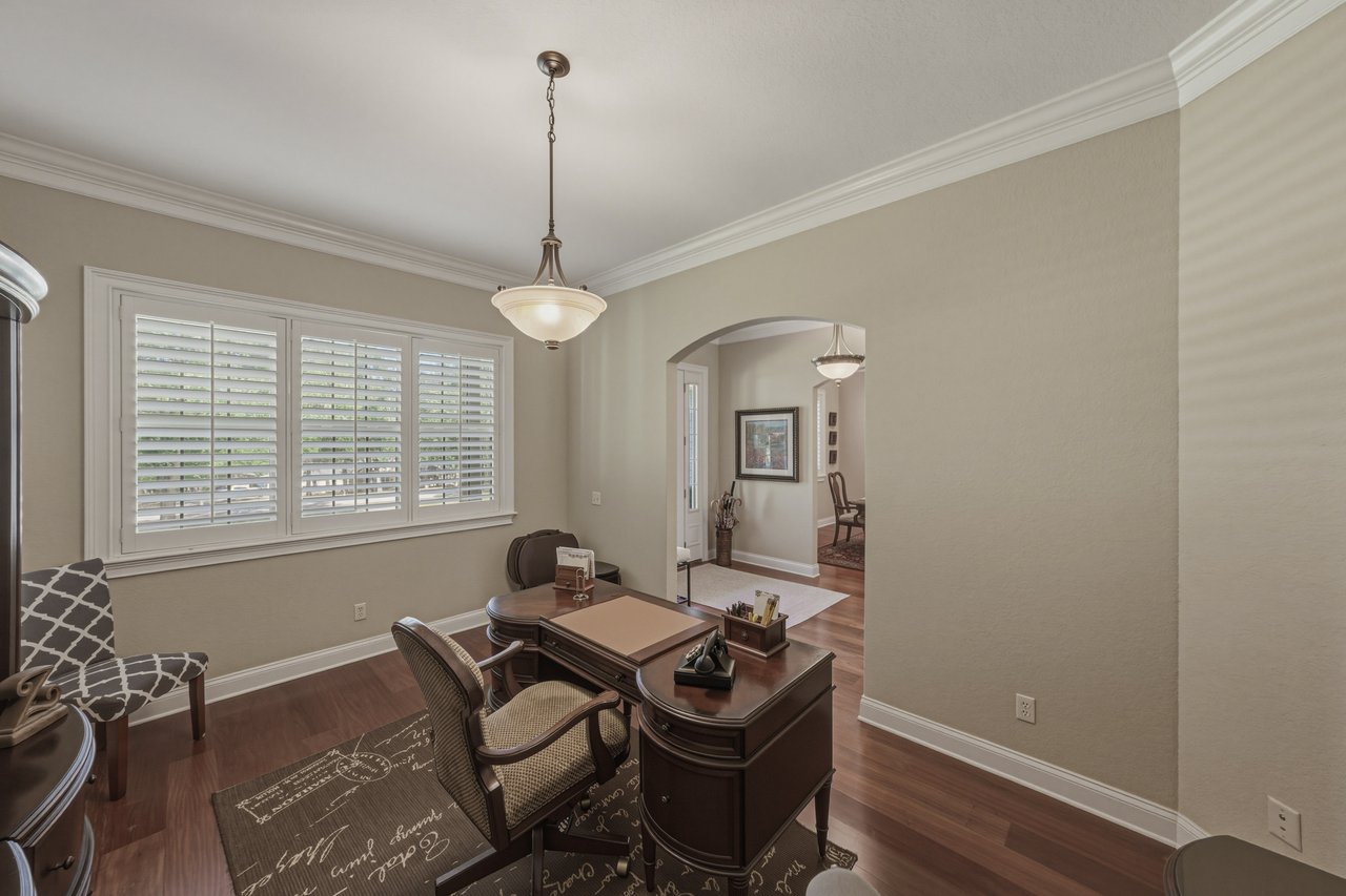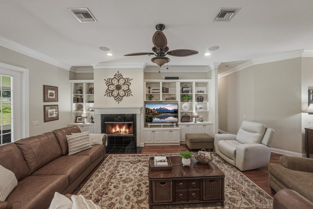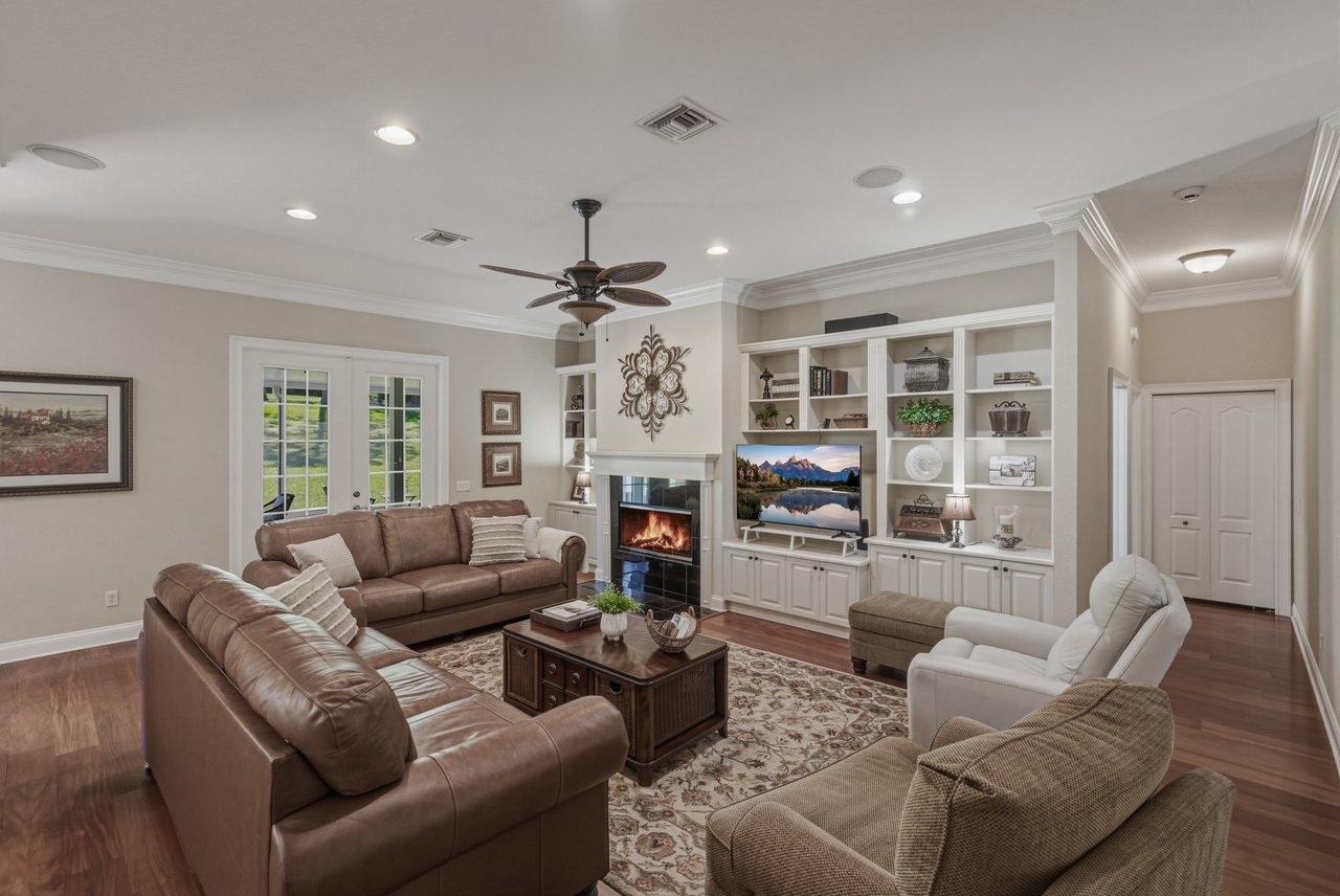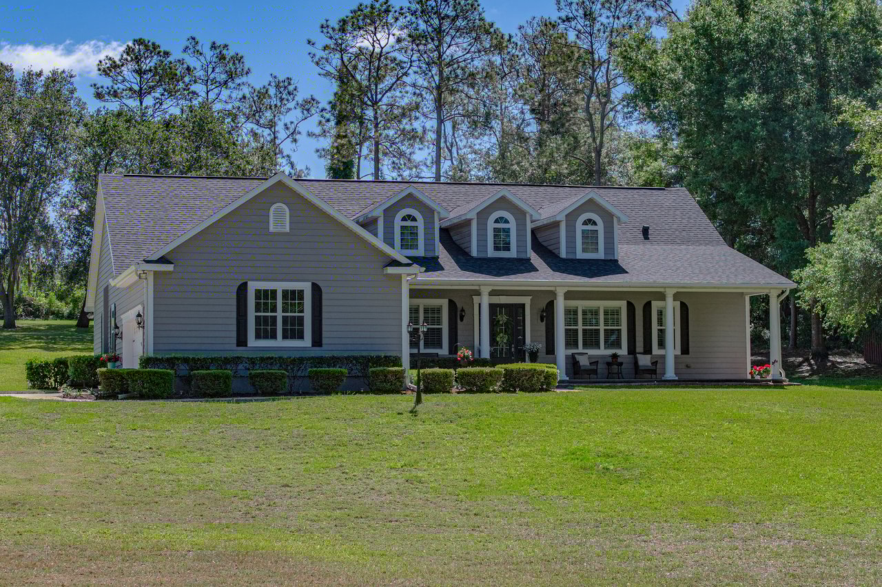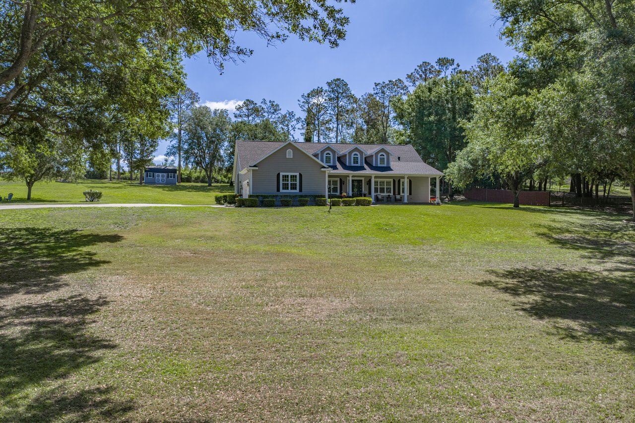 A timeless country residence set on nearly 3 scenic acres, nestled behind mature trees, and with a host of recent updates, is ready for its newest chapter. Providing 3 bedrooms, 3 bathrooms, a 2 car garage, a 2022 roof, 2018 + 2020 AC units, a 2024 water heater, updated kitchens and bathrooms, this home has been meticulously maintained and is move in ready! A peaceful setting with birds chirping, sunlight filtering through the trees, and an approach with brick pavers and classic front porch welcome you right into the home. Warm wood flooring and crown molding flow throughout the space creating easy connections and an elevated aesthetic. A wood burning fireplace, custom built-ins, French doors to the patio and high ceilings highlight the expansive living room. The kitchen has been beautifully updated for style and function. It features granite countertops, stainless steel appliances (including a new Subzero refrigerator still under warranty), plenty of storage, a central island, breakfast bar seating, a built-in desk nook, a large walk-in pantry, and a cozy sun-filled eat-in dinette. Near the front of the home, the formal dining room and dedicated office add extra convenience for gatherings and a private work from home space. The primary suite is separated from the guest bedrooms and offers a spacious bedroom, access to the screened back porch through French doors, an oversized walk-in closet, and an updated ensuite bathroom with 2 separate vanities, a soaking tub, and a walk-in shower. On the opposite side of the home, 2 bedrooms with plush carpeting share a 2024 updated Jack and Jill style ensuite bathroom in-between. The interior also provides a custom laundry room with built in clothing organizers, a 3rd full bathroom for guests, and interior paint refreshed in 2021. Head outside through the French doors onto the brick paved and screened back porch that overlooks the lush acreage. Here you can dine alfresco, extend your living space outdoors, or simply enjoy the calm surroundings. Several outdoor upgrades have been completed as well including upgraded Hardie Board, an added storage shed, 2022 exterior paint, 2025 pumped septic tank, irrigation on the whole property, and a 2025 gutter system. Chickens and 1 grazing animal per acre are permitted for those that want to bring their animals and take advantage of the country setting! This home is located in a place that feel tucked away but is just a short drive to local conveniences and major roadways. Give us a call today for your private viewing of Savannah Oaks.