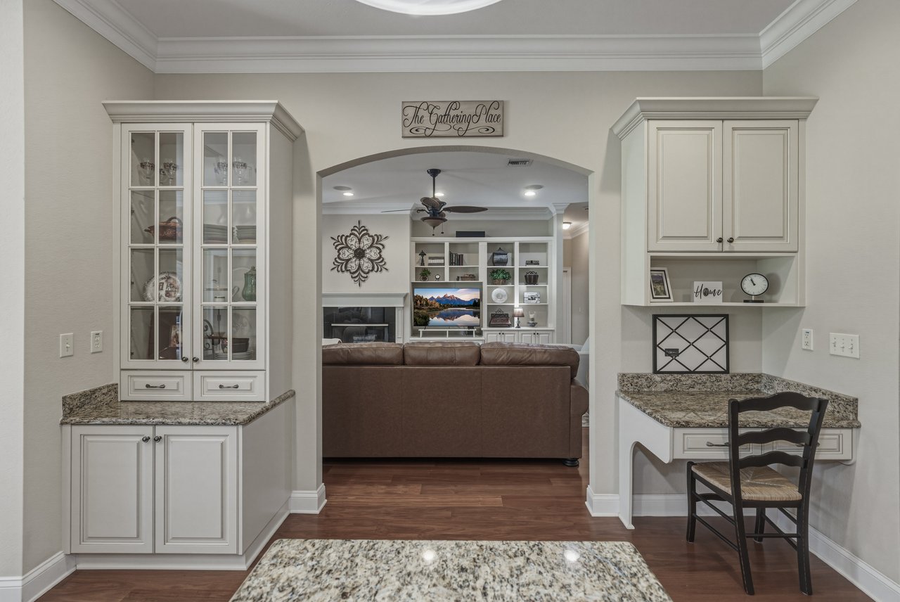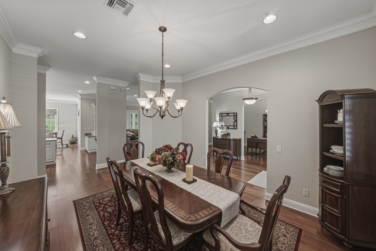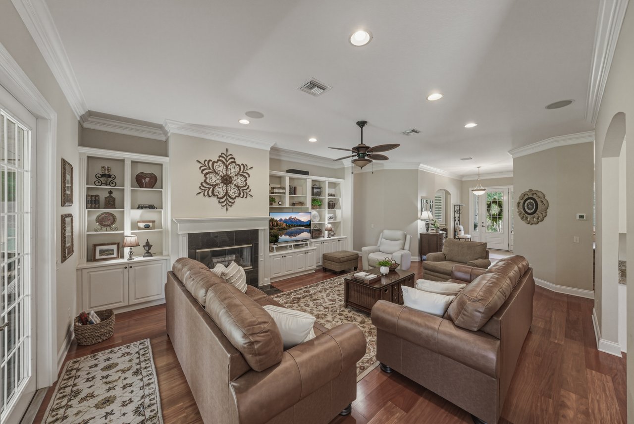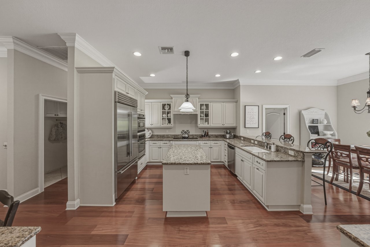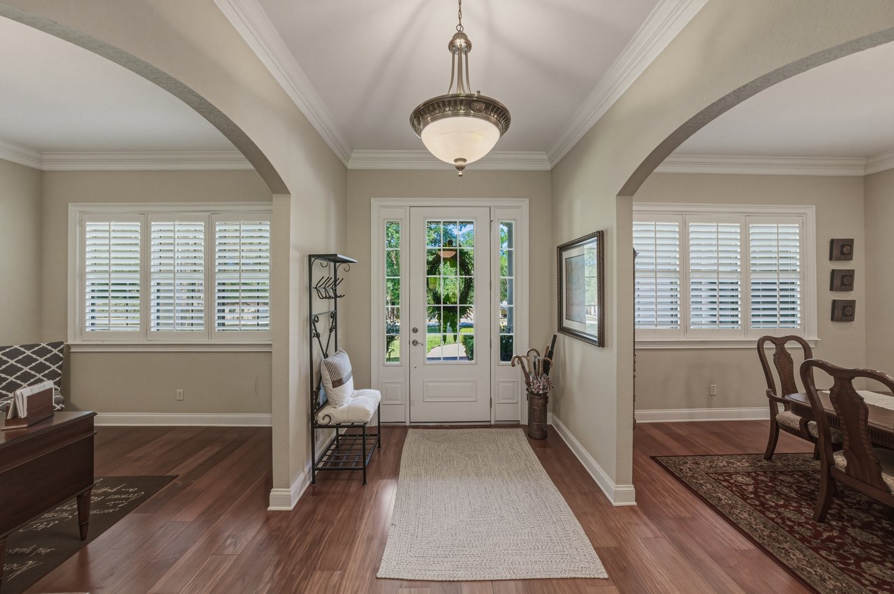 A timeless country residence set on nearly 3 scenic acres, nestled behind mature trees, and with a host of recent updates, is ready for its newest chapter. Providing 3 bedrooms, 3 bathrooms, a 2 car garage, a 2022 roof, 2018 + 2020 AC units, a 2024 water heater, updated kitchens and bathrooms, this home has been meticulously maintained and is move in ready! A peaceful setting with birds chirping, sunlight filtering through the trees, and an approach with brick pavers and classic front porch welcome you right into the home. Warm wood flooring and crown molding flow throughout the space creating easy connections and an elevated aesthetic. A wood burning fireplace, custom built-ins, French doors to the patio and high ceilings highlight the expansive living room. The kitchen has been beautifully updated for style and function. It features granite countertops, stainless steel appliances (including a new Subzero refrigerator still under warranty), plenty of storage, a central island, breakfast bar seating, a built-in desk nook, a large walk-in pantry, and a cozy sun-filled eat-in dinette. Near the front of the home, the formal dining room and dedicated office add extra convenience for gatherings and a private work from home space. The primary suite is separated from the guest bedrooms and offers a spacious bedroom, access to the screened back porch through French doors, an oversized walk-in closet, and an updated ensuite bathroom with 2 separate vanities, a soaking tub, and a walk-in shower. On the opposite side of the home, 2 bedrooms with plush carpeting share a 2024 updated Jack and Jill style ensuite bathroom in-between. The interior also provides a custom laundry room with built in clothing organizers, a 3rd full bathroom for guests, and interior paint refreshed in 2021. Head outside through the French doors onto the brick paved and screened back porch that overlooks the lush acreage. Here you can dine alfresco, extend your living space outdoors, or simply enjoy the calm surroundings. Several outdoor upgrades have been completed as well including upgraded Hardie Board, an added storage shed, 2022 exterior paint, 2025 pumped septic tank, irrigation on the whole property, and a 2025 gutter system. Chickens and 1 grazing animal per acre are permitted for those that want to bring their animals and take advantage of the country setting! This home is located in a place that feel tucked away but is just a short drive to local conveniences and major roadways. Give us a call today for your private viewing of Savannah Oaks.