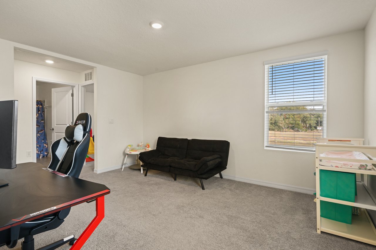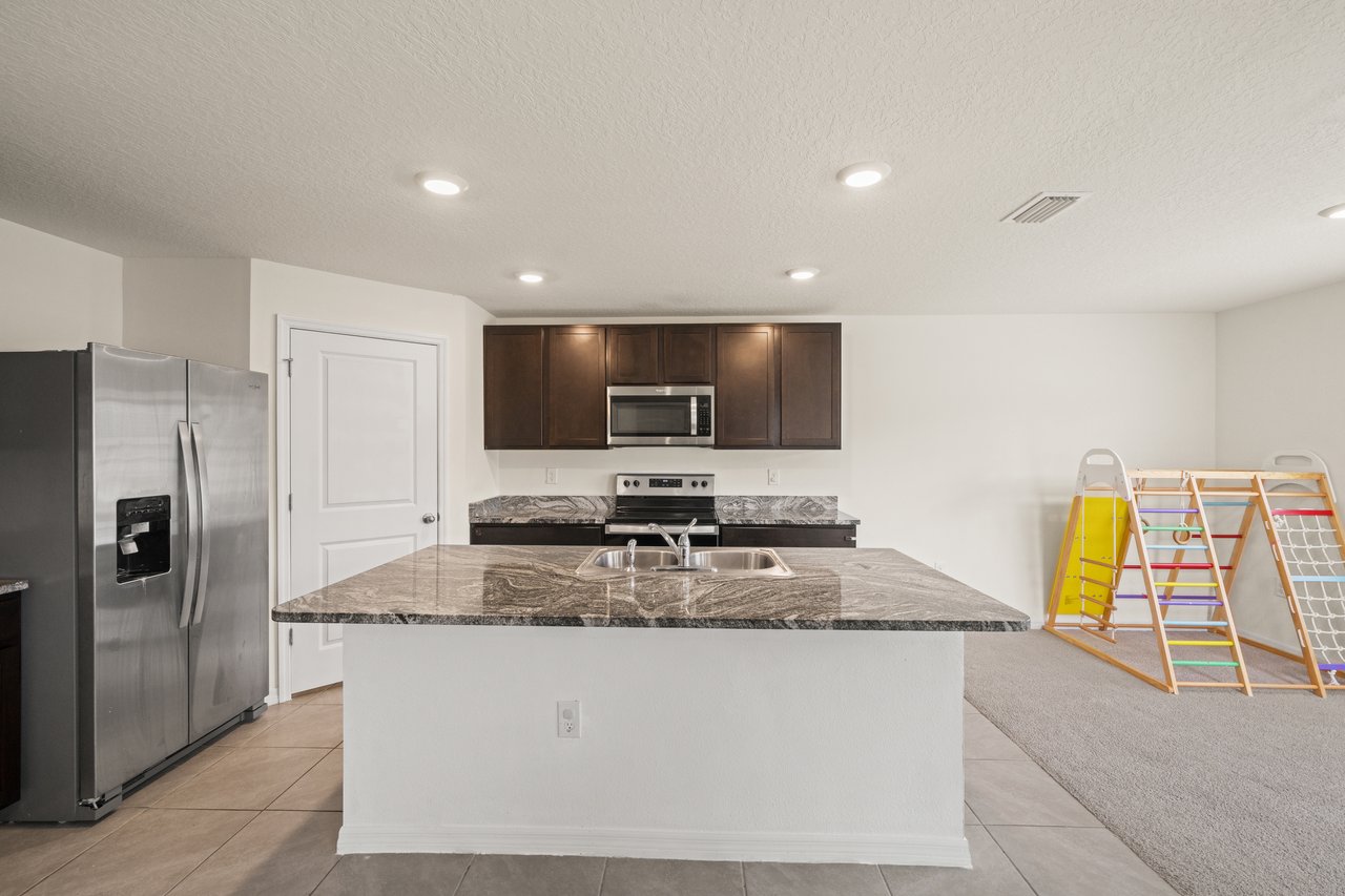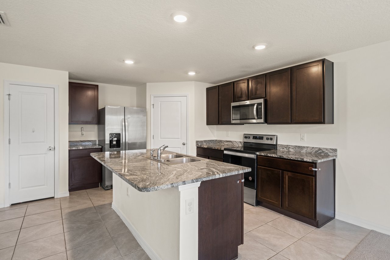 Morning coffee with a pond view and relaxing dinners under the stars set the tone for life in this two story Heritage Hills home. Perfectly placed on a sidewalk lined street in the heart of Dade City, this 3 bedroom, 2.5 bath home with a 2 car garage offers peaceful scenery and functional space in a charming location. Arrive to well-kept landscaping, and a welcoming covered entry that leads into a bright, open-concept main living area. The spacious, plush carpeted living room overlooks the stylish eat-in kitchen, creating an easy flow for gathering with friends or enjoying a quiet night at home. The kitchen features stainless steel appliances, granite countertops, a large center island with breakfast bar seating, ample pantry storage, and seamless connection to the dining room. Whether you are hosting game night or preparing a weeknight dinner, everything feels connected and practical. Sliding glass doors in the dining area open to the back patio where serene water views create the perfect setting for easy alfresco dining or simply unwinding at the end of the day. A convenient half bath on the first floor adds thoughtful functionality for guests. Upstairs, a carpeted staircase leads to a versatile open loft, an ideal flex space for a media room, playroom, home office, or cozy reading retreat. Privately positioned away from the secondary bedrooms, the primary suite sits near the dedicated second floor laundry room for added convenience. Generously sized, this retreat features an oversized walk-in closet with abundant storage and an ensuite bath complete with dual sinks, a walk-in shower, and a private water closet. Bedrooms 2 and 3 are comfortably sized and share the home’s second full bathroom, which includes a tub/shower combination. With scenic water views, flexible living spaces, and a location just minutes from local schools, Burks Park, the Pasco County Fairgrounds, and the charm of Downtown Dade City, this Heritage Hills home delivers the lifestyle you have been looking for. Schedule your private tour today and see how beautifully it fits your next chapter.
