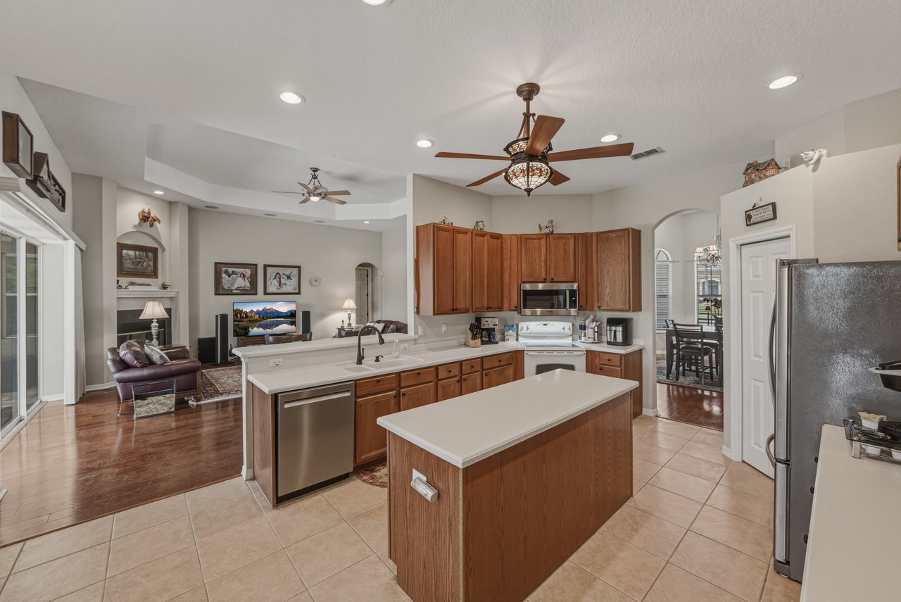 living room, the kitchen is spacious, welcoming, and functional offering Corian countertops, a