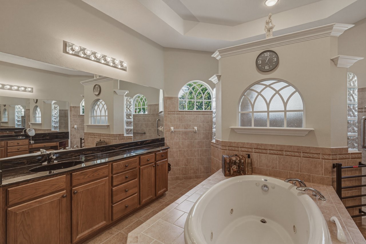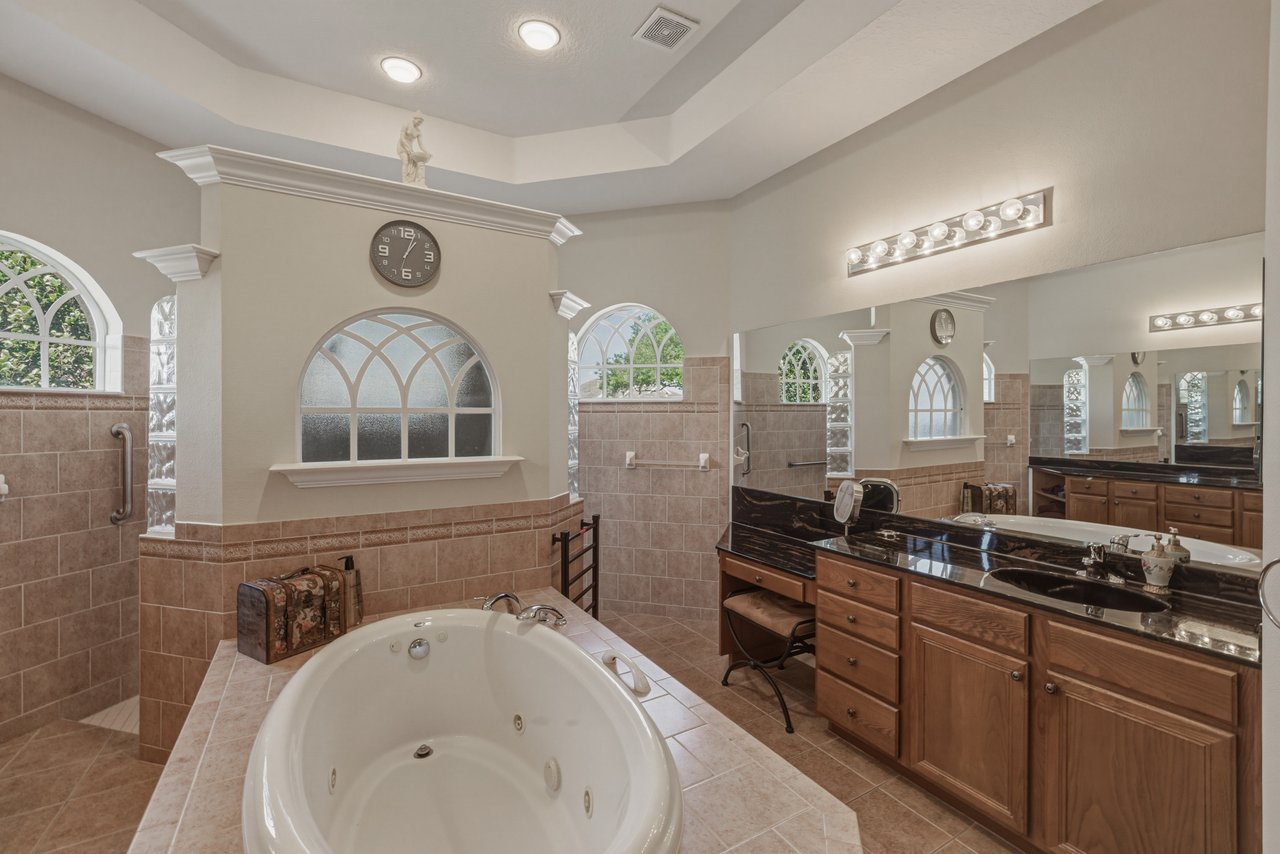 flooring, two large walk-in closets, and a tranquil ensuite bathroom centered around a jetted tub.