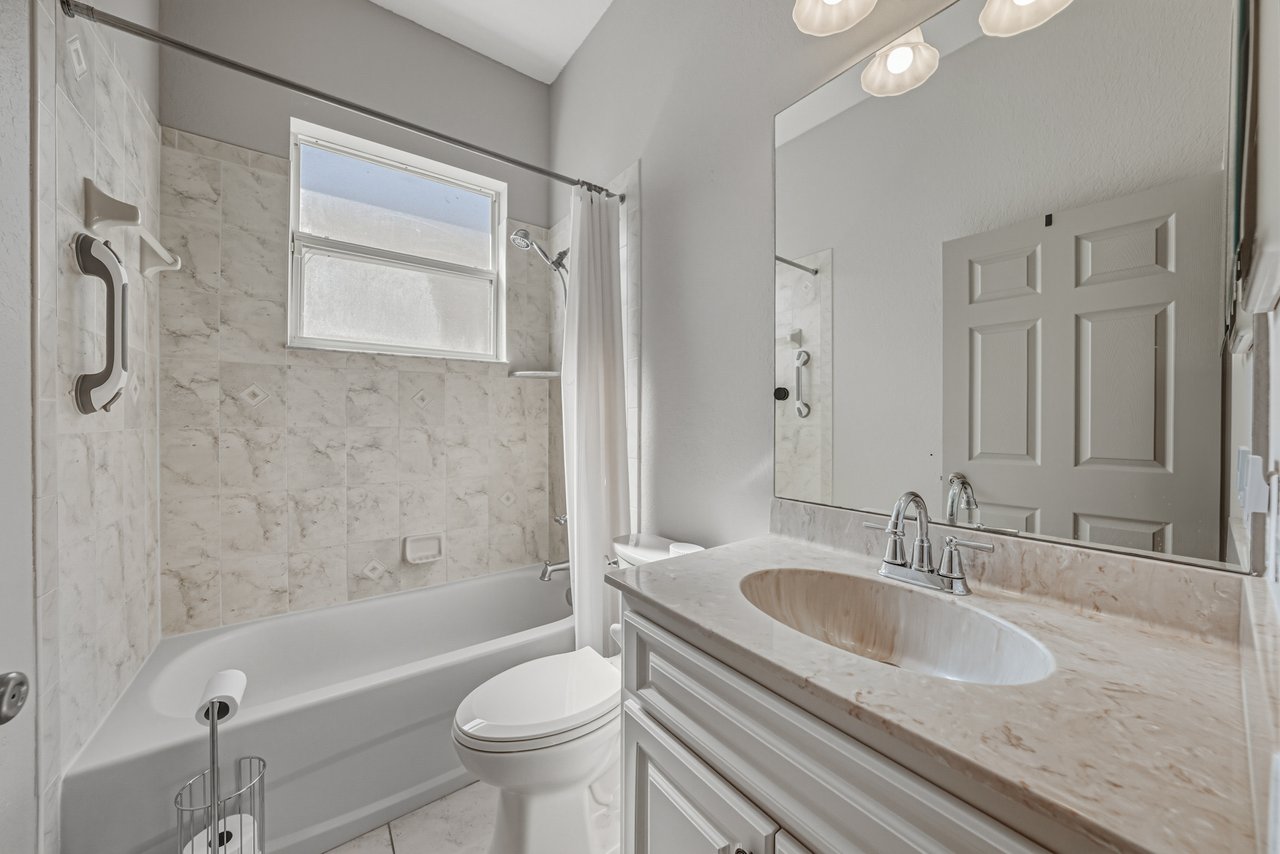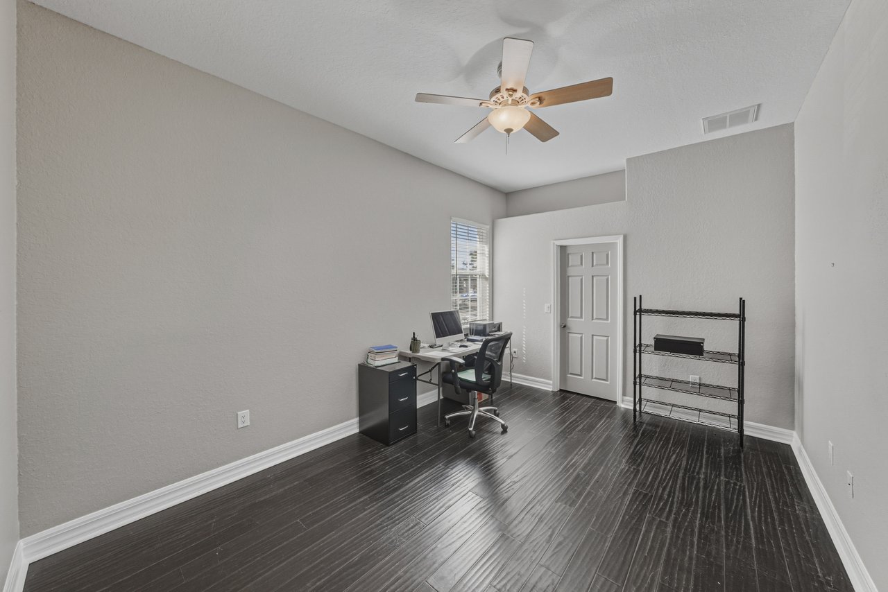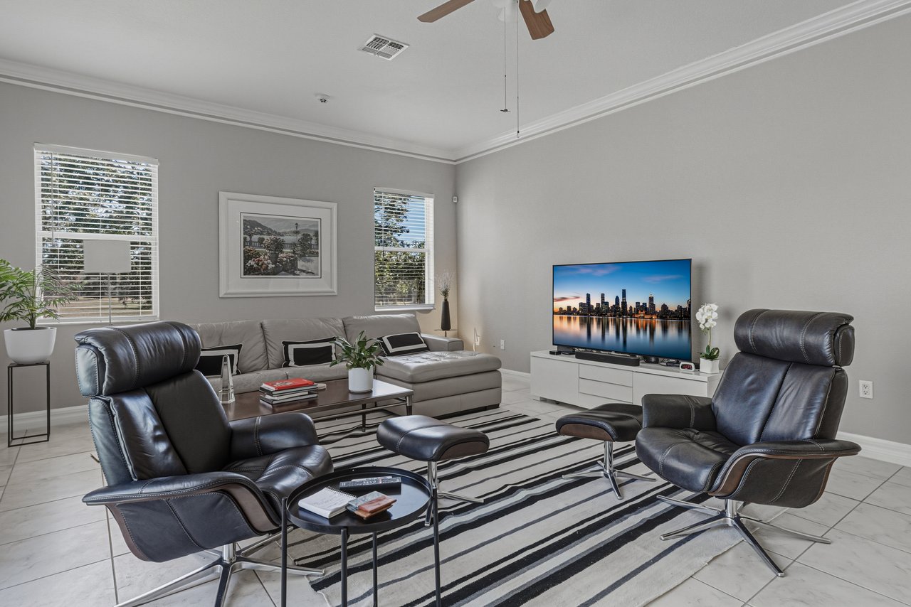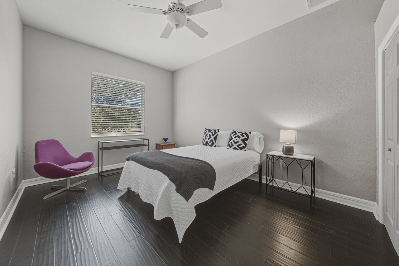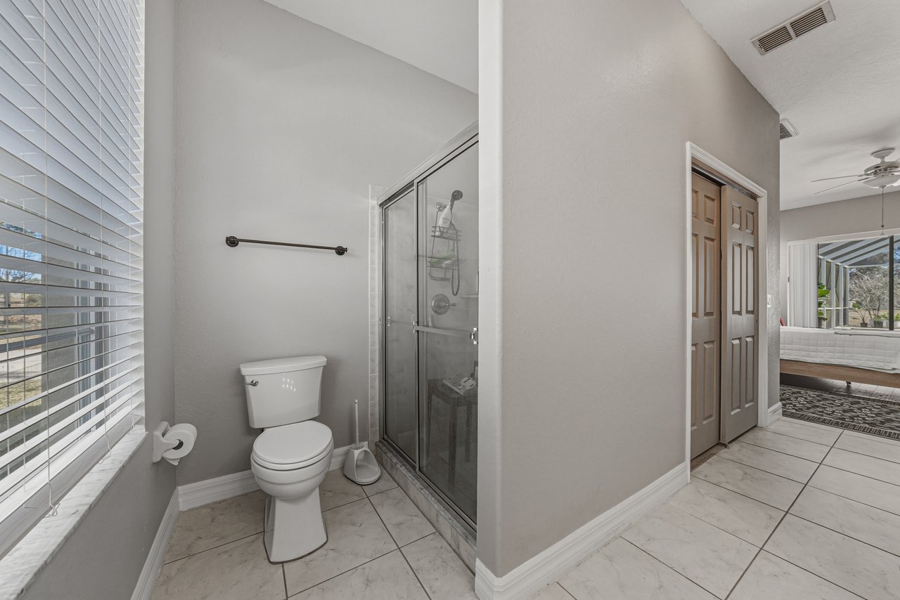 Backing up to Lake Jovita's walking trails and park, this 3 bedroom, 2 bath pool home pairs a coveted location with fresh updates including a 2024 roof, a newer AC, and a newer water heater- completely ready for effortless Florida living inside the gates of Lake Jovita. Arrival is warm and welcoming with a freshly painted exterior, mature trees, and a paver walkway that leads to a charming front porch made for morning coffees and neighborhood people-watching. Step inside and the layout opens with a paired formal living and dining space at the front of the home, connected enough for gatherings yet still intimate. The formal living room includes sliding doors to the pool, adding natural light and a touch of indoor-outdoor charm. Tile flooring, crown molding, and soft neutral paint carry through the main living areas, guiding you toward the true heart of the home: an expansive family room and kitchen designed as one bright, open space with multiple sliders, welcoming in sunshine and framing sparkling pool views. The kitchen is thoughtfully arranged with ample solid-surface prep space, a central island, breakfast bar seating, new stainless steel appliances, generous pantry storage, and a cozy eat-in dinette, ideal for casual meals with a view. A split bedroom layout keeps the primary suite tucked away for privacy. Wood flooring, direct pool access, and two spacious walk-in closets set the stage for comfort, while the ensuite features dual sinks and a walk-in shower. Bedrooms two and three sit on the opposite side of the home with a full bath between them, complete with a tub/shower combination. Outdoors, the lanai invites you to slow down and savor the Florida lifestyle. Pavers surround the sparkling pool, and a covered sitting area offers shade for relaxing afternoons or outdoor dining. Beyond the screened enclosure, the backyard connects directly to Lake Jovita's scenic walking trails and park amenities, including pickleball, basketball, and a playground, all just steps away. Optional memberships are available as well, offering access to Lake Jovita's two 18-hole golf courses, fitness center, clubhouse, Jr. Olympic size swimming pool, tennis courts, and more! Call today to schedule your private showing and experience Lake Jovita living at its best.