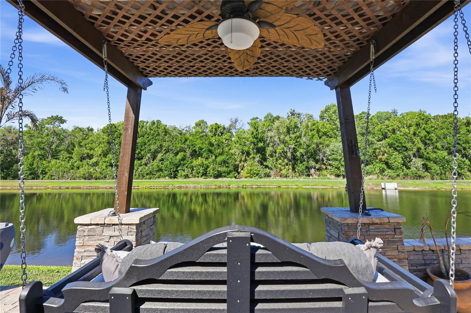 overlooking the pond, creating a space that feels like the epitome of relaxed Florida living.