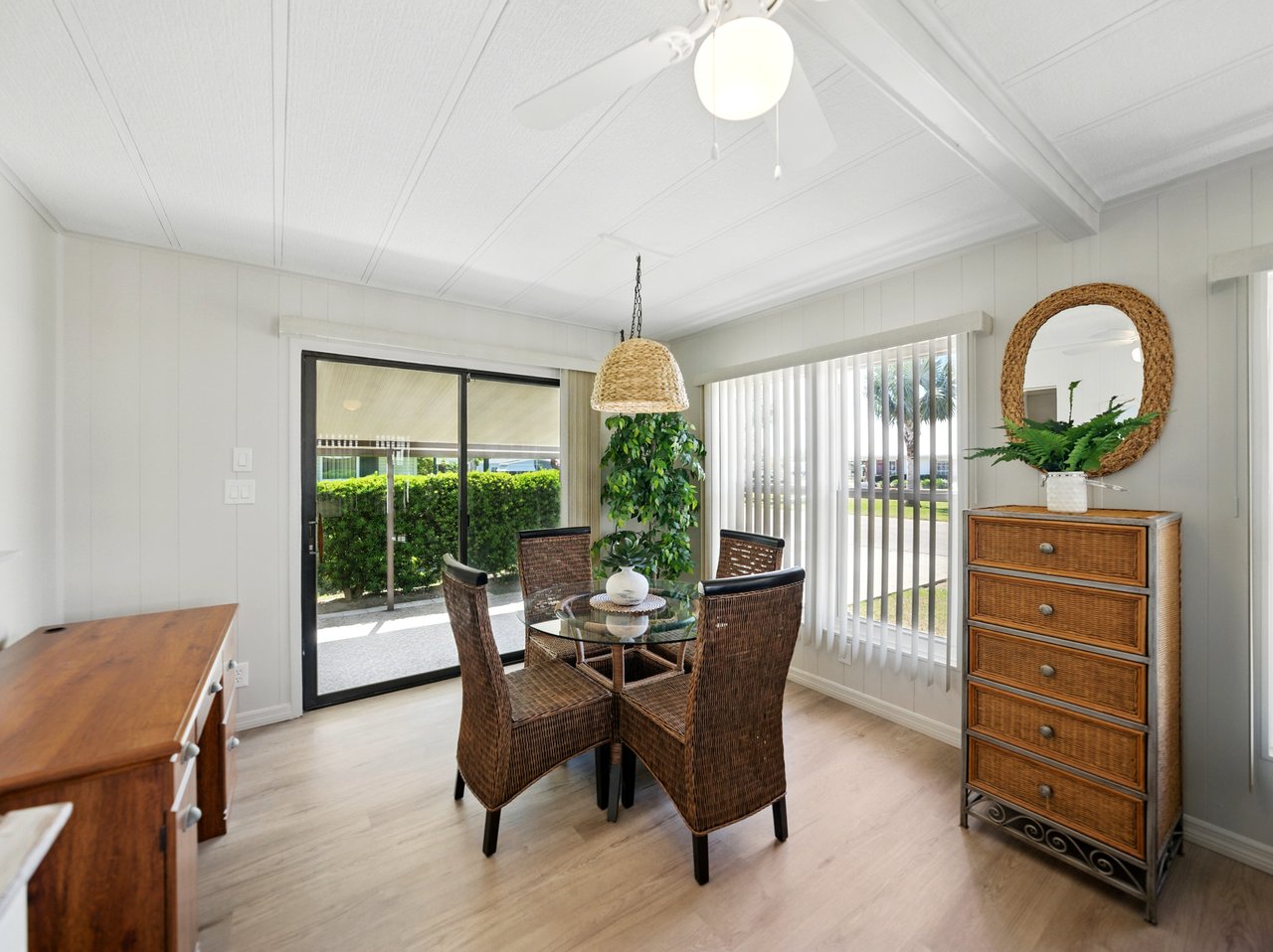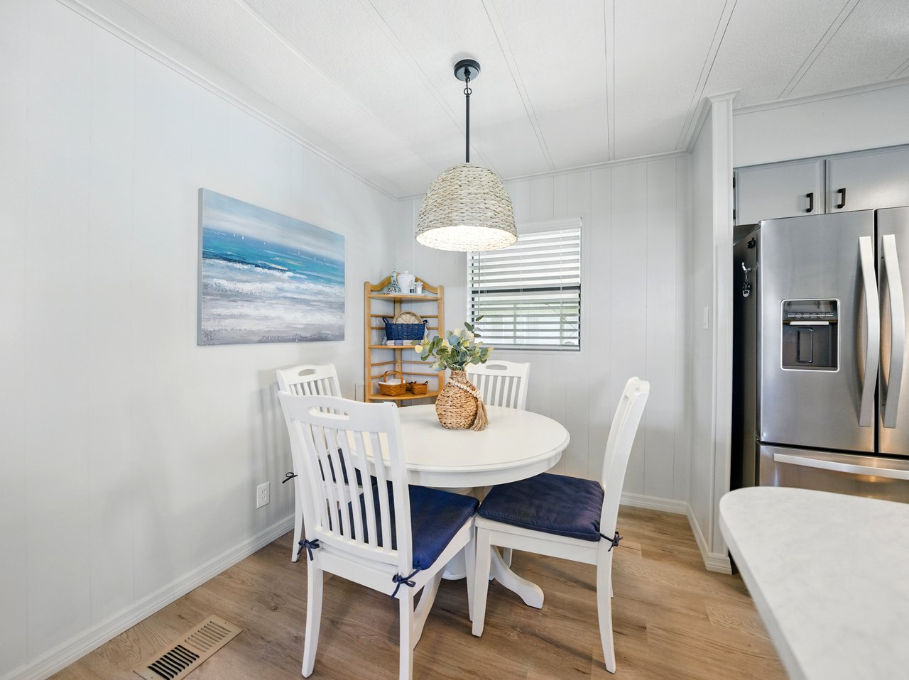 Perfectly positioned right across from the amenities, this light and cheerful 2 bedroom, 2 bath manufactured home offers an updated aesthetic filled with character in an unbeatable location- the 55+ community of Colony Hills, where you own your land! A covered front entryway and carport set a warm first impression, and inside, the family room serves as the heart of the home, offering views of the kitchen, casual dinette, and formal living and dining areas- ideal for everyday living and gathering with friends. Luxury vinyl plank flooring and fresh interior paint create a seamless flow from room to room. The charming kitchen has stainless steel appliances, painted wood cabinetry, updated hardware, and breakfast bar seating for easy meals. Both bedrooms are generously sized, with the primary suite featuring a walk-in closet and a refreshed ensuite bathroom with a newer vanity, updated lighting, and a walk-in shower. The second bedroom also includes a large walk-in closet and has quick access to the guest bathroom, which mirrors the same tasteful updates as the primary bath. Enjoy easy outdoor living with a screened side porch for breezy afternoons, and covered access to the laundry/storage room adds everyday practicality. Right across the street, you will find the community's clubhouse, pool and spa, tennis courts, and shuffleboard, everything you need for an active lifestyle. Tucked in the heart of Zephyrhills, this move-in-ready home is a wonderful opportunity to enjoy all that Colony Hills has to offer. Schedule your showing and see why this community is Zephyrhills' hidden gem.