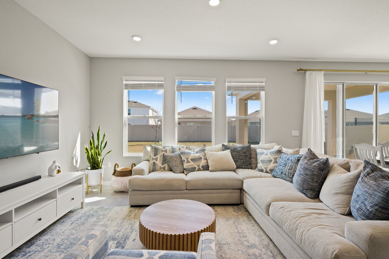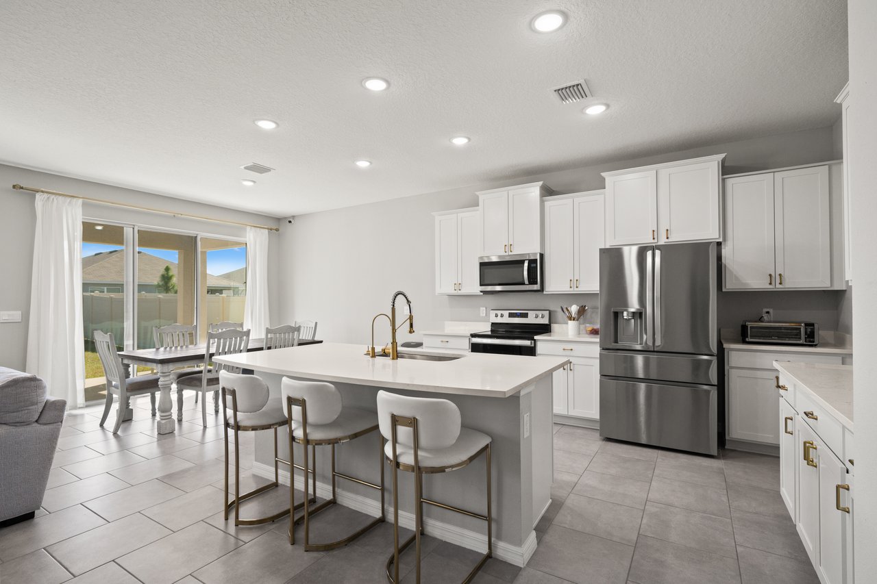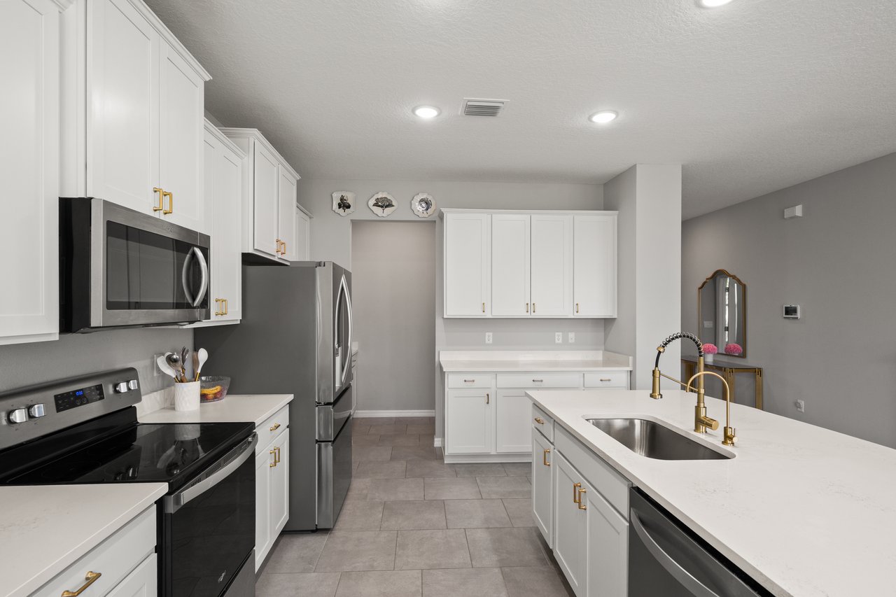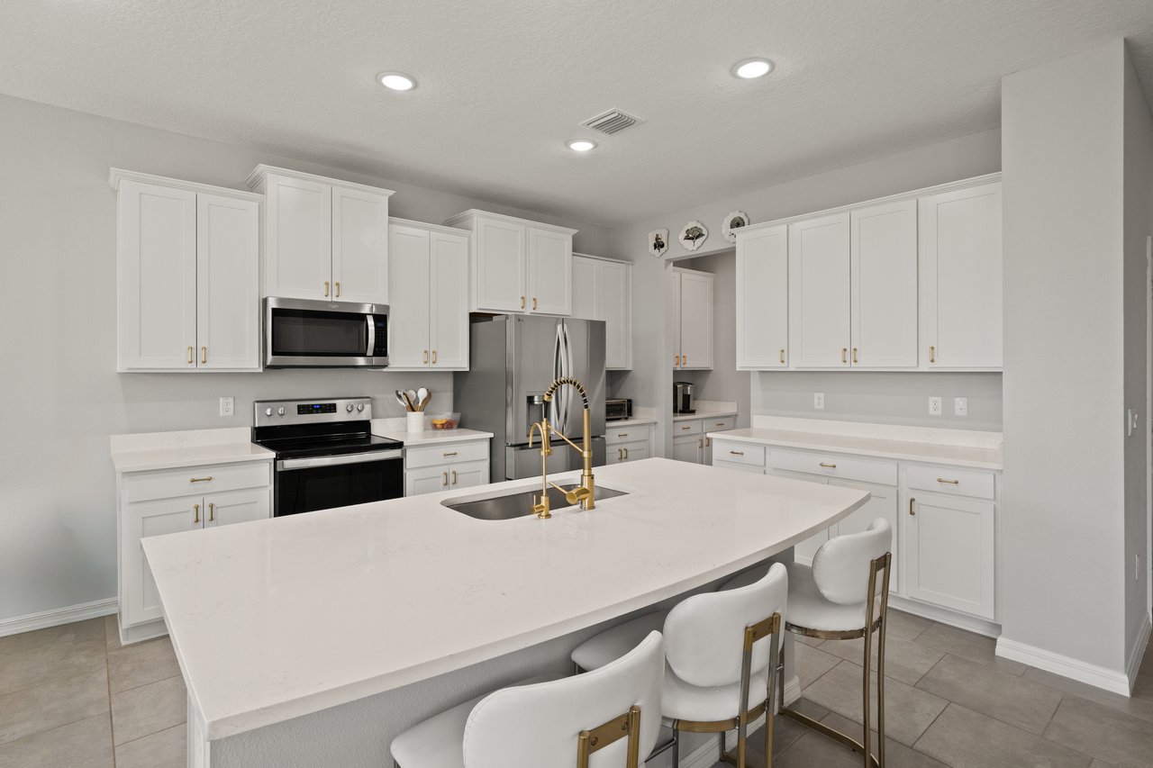 Sunset walks to community events, mornings on the porch with coffee in hand, afternoons at the resort-style pool, and evenings gathered in a home designed to bring everyone together. Life in Avalon Park is vibrant, connected, and effortlessly elevated and this beautifully appointed two story residence places you right at the center of it all. Set within one of Wesley Chapel's most dynamic master planned communities spanning 1,600 thoughtfully designed acres, this 5 bedroom + office, 3 bath, 2 car garage home offers a refined yet flexible layout ideal for growing households, multi generational living, or those who simply value generous, well designed space. The approach leaves a lasting impression with sidewalk lined streets, attractive stone accents, modern neutral exterior tones, mature landscaping, and a charming front porch that invites relaxed evenings and friendly conversation. Inside, natural light pours into the open concept living area where tile flooring, abundant windows, and recessed lighting create a bright yet sophisticated atmosphere with a seamless flow for entertaining. At the center of the home, the chef's kitchen offers a generous island with breakfast bar seating, stainless steel appliances, vibrant brushed brass fixtures including a touchless faucet and updated cabinetry hardware, a reverse osmosis system at the sink, stone countertops, a butler's pantry/coffee bar, and a roomy walk-in pantry. It all overlooks the dining area with triple sliding doors that open to the covered back porch and yard, creating an effortless indoor to outdoor connection. Near the front of the home, a private office with double door entry provides a quiet space to work or study, while a first floor guest bedroom and full bathroom, also on the first floor, offer comfort and convenience for visitors. Upstairs, a plush carpeted staircase leads to an expansive and versatile loft that can easily serve as a second living room, playroom, or additional office space. Even better, it includes a huge walk-in closet for added storage. The primary suite is thoughtfully secluded from the secondary bedrooms and features a generous walk-in closet and a tranquil ensuite bath with dual sinks, a glass enclosed walk-in shower, and a separate soaking tub. Three additional spacious bedrooms, a third full bath with a tub/shower combo, and a convenient second floor laundry room complete the upper level. Added bonuses such as a whole house water softener, window blinds throughout, a security system with cameras, and thoughtful design choices provide added value and peace of mind. Authentic Florida living awaits outdoors, whether you are relaxing on your covered back porch or enjoying the incredible resort style amenities Avalon Park is known for. Residents gather at the pool, heated spa, splash pad, and playground, and look forward to community events like the Absolutely Avalon Fourth of July firework show. With top rated schools, shopping, and dining woven throughout the community, living in this stunning home is more than just a change of location- its a change of lifestyle. Call today to see if it is the right choice for you!